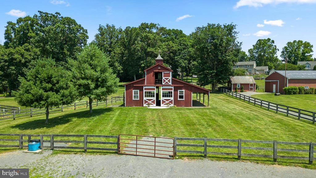 This is the ONE. The entire package. Welcome to Compass Hill Farm, an exceptional equestrian estate located in the heart of Howard County. This 5-bed, 3.5 bath, 4224 sq ft home sits on 10.3 acres of lush pastures, landscaped grounds, and natural beauty. A true turn-key equestrian facility that reflects thoughtful design, care, and maintenance. The property is zoned for blue ribbon schools and within easy access of dining, shopping, and entertainment. All this within 45 min to DC, 30-minutes to Baltimore and 15-minutes to Columbia. The expansive, gorgeous farmhouse reflects rustic authenticity in an atmosphere of refined living. The home is an entertainer's delight, with a large open-concept kitchen and floor plan that centers around the home's showpiece mid-19th century log cabin "heart." Multiple French doors, custom millwork, and over 40 large windows fill the home with light and allow 360-degree views of the property. Take in the seasons from the expansive front porch and watch your horses graze, backlit by stunning sunrises and sunsets. Set back from the road, and buffered by an idyllic meandering stream and riparian habitat, the home and farm offer a refuge of beauty and peace for both horse and human. The discerning equestrian enthusiast will enjoy a 2013 Mennonite-built 5-stall center-aisle carriage barn with heated, custom-built tack room, hot/cold wash rack, large hay loft, rubber bone-paver aisle, and farm-grade, ceiling-mounted fans in each stall. Three-board fenced pastures are optimized for all-season sustainability with upgraded heavy-use areas and heated automatic waterers. A state-of-the-art, all-weather, 100’ x 150' laser-graded riding arena with a bluestone base topped by premium rubber/sand arena footing and a bridle path allows for versatile and year-round schooling. A 40' x 60" pole barn with water and electric offers versatile options for leisure or business. Surrounded by renowned competition venues, world-class clinicians and trainers, and thriving local US Pony Clubs, this estate offers it all. Experience the beauty and serenity of this special estate today.