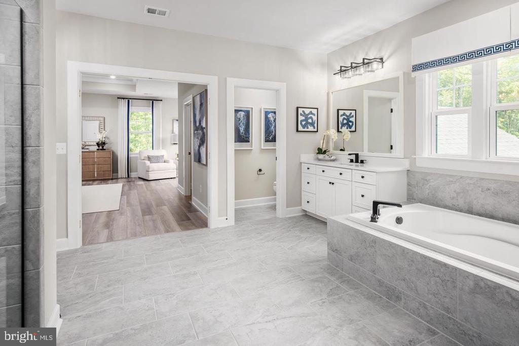 NVHomes at Westmount is Ellicott City's most sought-after, luxury new home community. The elegant Santorini features a light-filled 2 story foyer, where an adjoining flex room offers versatility. The nearby formal dining room is ideal for any gathering. Tucked away study makes working from home easy, followed by a two-story family room and NVHomes signature high end finishes located near Glenelg High School Photos for viewing only - taken at a finished model, Please contact the sales representative for more information. Model GPS Address: 3700 Three Graces Road EC, 21042.