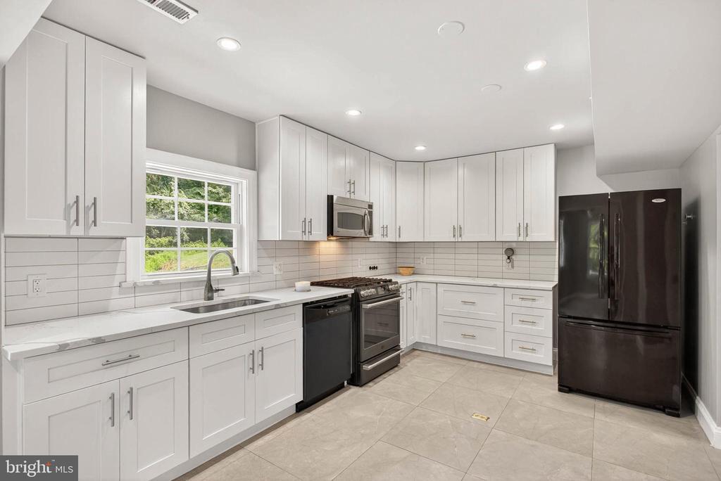 NEW REDUCED PRICE!! Sellers are offering 5k in assistance! Don’t miss out on this beauty! Fully rebuilt in 2022, this bungalow offers 3 bedrooms, 2 full baths, and 1,498 sq. ft. of finished living space. Enjoy wraparound decks, a fenced backyard, and serene views backing to trees and ponds. This home features all-new public utilities—water, electricity, gas—as well as a newer water heater, HVAC system, roof, walls, windows, and doors. The modern kitchen stands out with top-quality quartz countertops, 42” shaker cabinets with soft-close drawers and doors, upgraded appliances, gas cooking, and a built-in microwave. You’ll find recessed lighting throughout, built-in bookcases in a bright study area with window walls, and a luxury main-level bathroom with a large shower. A French patio door from the kitchen opens onto a spacious deck overlooking the pond and lush trees. Upstairs includes 3 bedrooms and a generous hall bathroom with a double-sink vanity and oversized frameless glass shower. Beautiful hardwood floors run through the bedrooms, hallways, and stairways. The attic offers a large bonus room perfect for storage or play. This move-in-ready home sits in Howard County’s top school district, with no HOA. Conveniently located near Route 40, Turf Valley shopping, schools, and major routes including 32, 29, and 70.