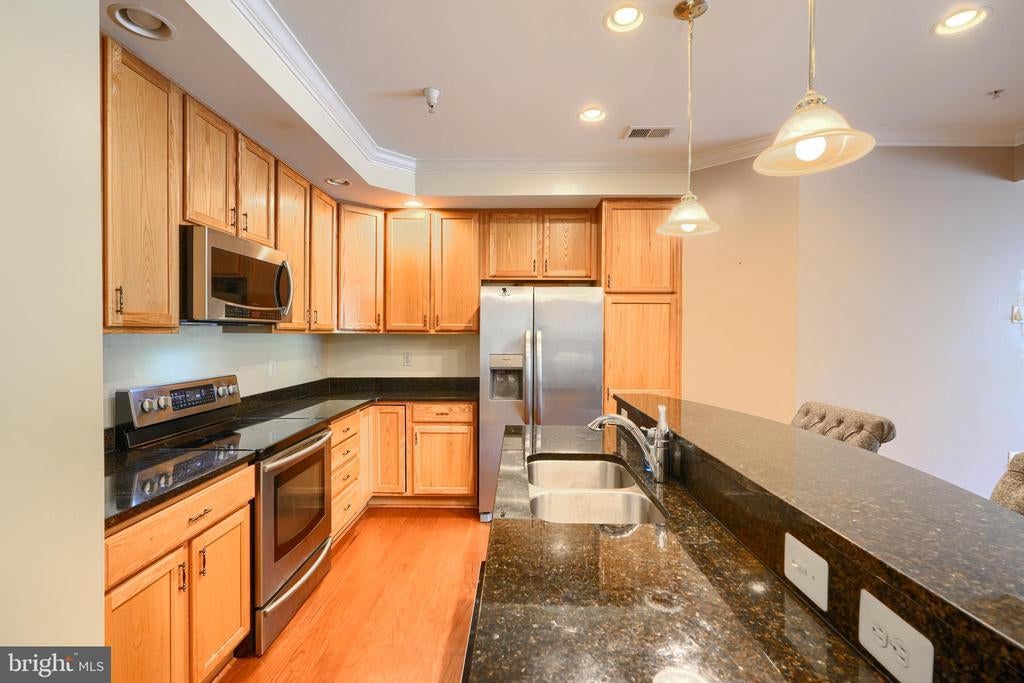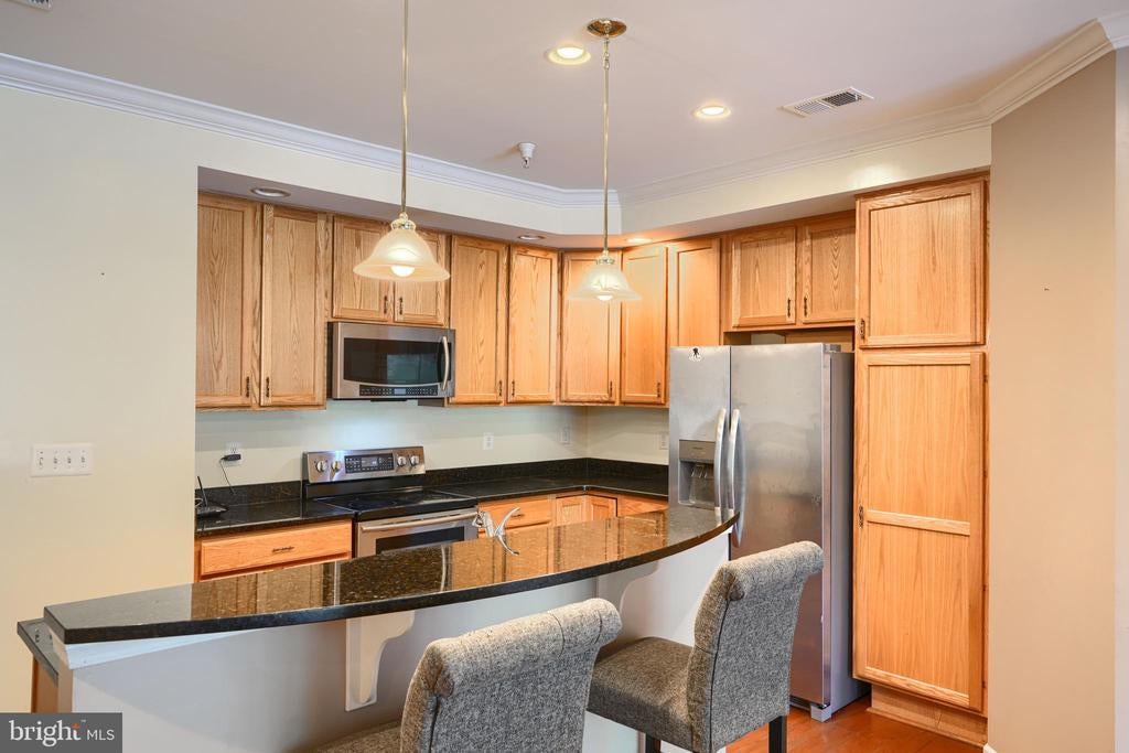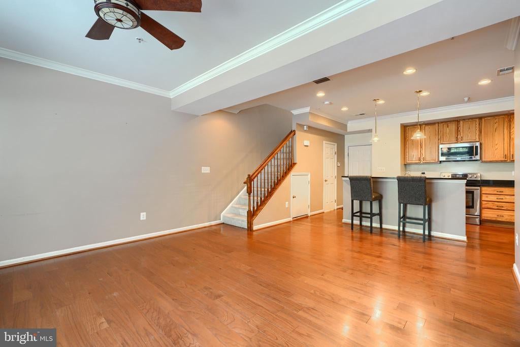 Welcome Home to this inviting 2 story 1600 sq ft townhouse/condo featuring your very own 1 car private garage with driveway for extra parking! No stairs to climb with groceries or luggage! Many of the upgrades that are offered are: gleaming wood laminate flooring throughout the main level, 9 ft ceilings on the main & upper levels, impressive kitchen w/granite counters, stainless steel appliances, main level open concept floor plan with an abundance of natural light, unforgettable owners suite with the bay window center staged in the room , two walk-in closets along with an substantial ensuite that highlights a dual vanity and a two person stand-up shower! There are two additional spacious bedrooms, a full bathroom and a sizable laundry/utility room. New carpet on stairs and upper level! This property is located in the highly desired community of Elkridge Crossing. Location, location, location! Close to Interstates, BWI airport, Marc Train, along with plenty of shopping and restaurants! Hurry this gem won't last long, move-in ready!