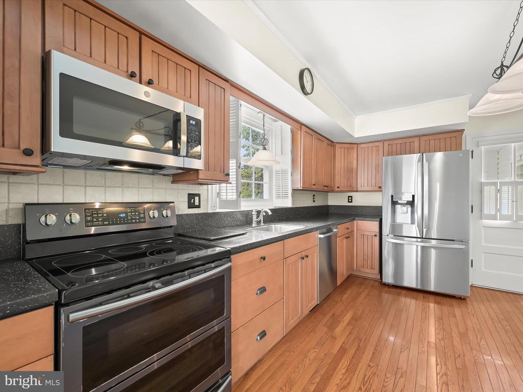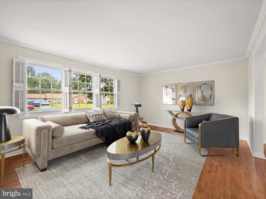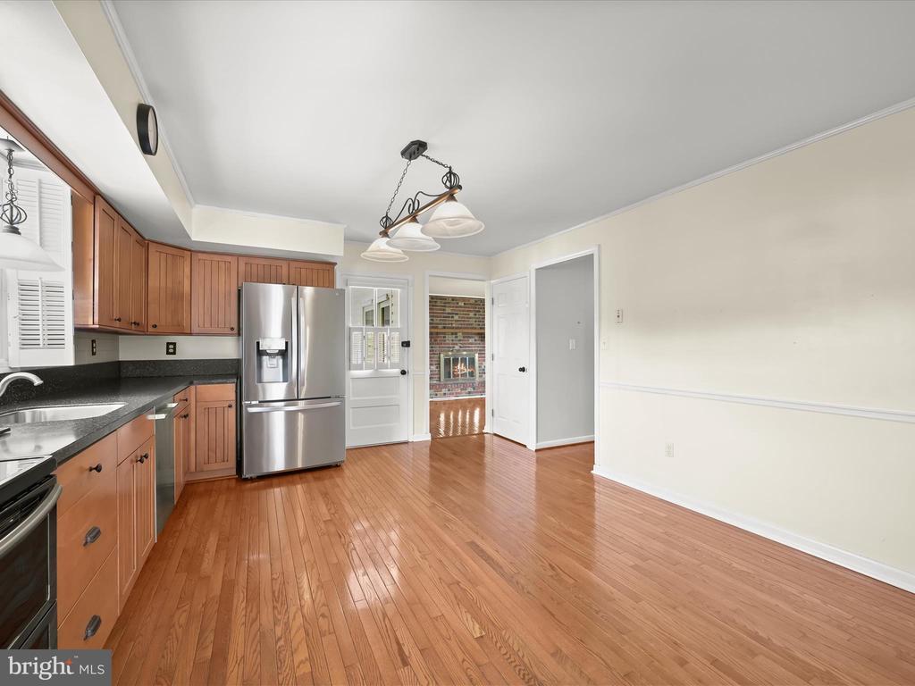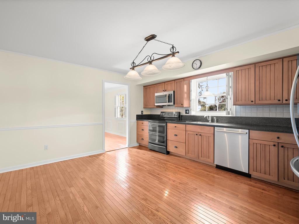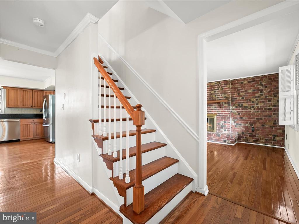 Set on a spacious half-acre lot in Ellicott City's sought after Valley Mede community, this lovingly maintained home offers over 2500 sq. ft. of comfort and space, and recent updates including a 4-year-old roof, updated appliances, and ductwork. A covered front porch welcomes you and inside, you'll find beautiful hardwood floors on the main and upper levels, a formal living and dining room with accent moldings, and a large eat-in kitchen with wood cabinetry, Corian countertops, and stainless steel appliances. The kitchen leads to a cozy family room with a brick accent wall surrounding the wood-burning fireplace and offers sliding door access to the enclosed porch that leads to an expansive open deck. Upstairs features four bedrooms, all with hardwood flooring, and two full baths. The finished lower level offers a recreation room, laundry/workshop area, and ample storage. Enjoy outdoor living on the expansive deck overlooking the fantastic yard that includes a storage shed, plus this home has a one-car garage with extra storage. Conveniently located near shopping, dining, and major commuter routes, this is the perfect place to call home!