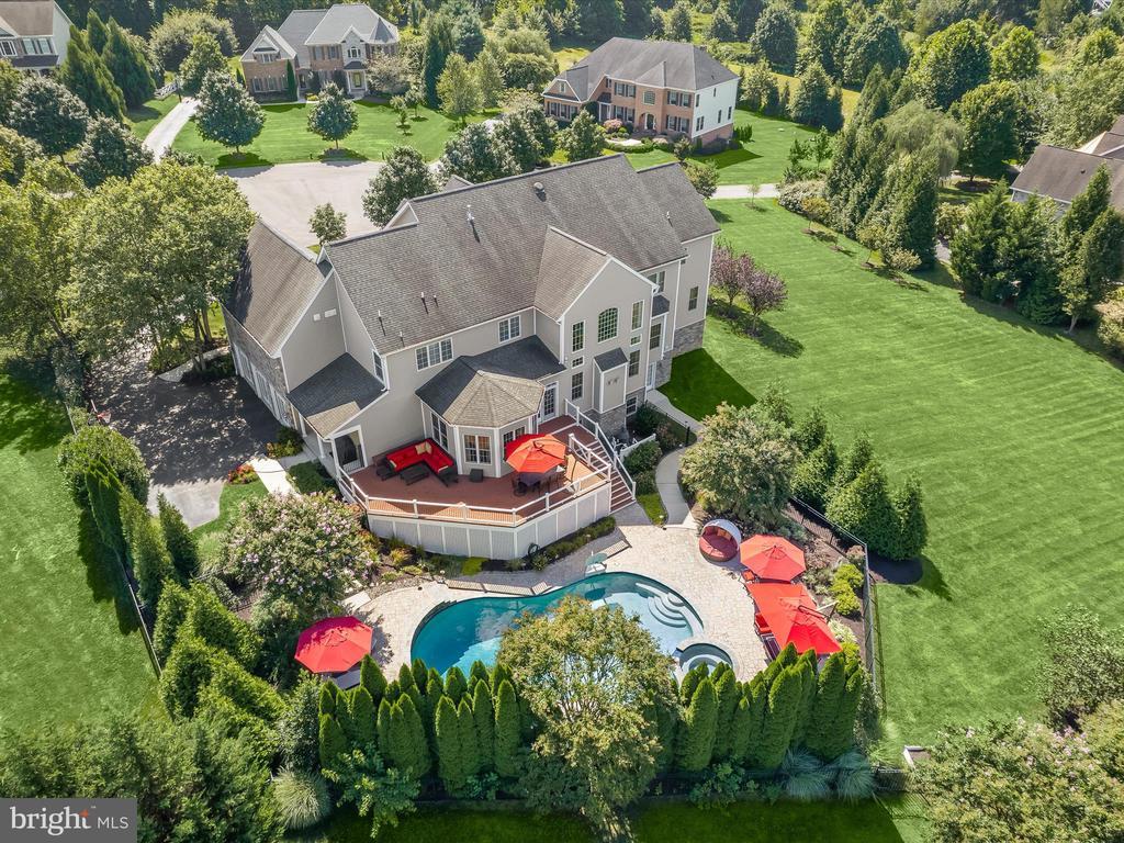 Welcome to 3918 Clarks Meadow Drive, a custom-built Douglas Home in the prestigious Clarks Meadow community. This thoughtfully designed estate is richly appointed with exceptional details including lit tray ceilings, elegant millwork, stately columns, custom closet organizers, and a gracious open floor plan. A highlight of this home is the spectacular outdoor living space, set on a lush 1.13-acre featuring an inground pool, expansive custom patios, a deck, and professionally landscaped grounds with sweeping views of the countryside. The grand two-story foyer, with dual curved staircases, is flanked by formal living and dining rooms accented with classic moldings. The living room opens to a light-filled sunroom, while the gourmet kitchen is a chef’s dream, complete with an induction cooktop, double convection wall oven, microwave drawer, Sub-Zero refrigerator, granite countertops, decorative backsplash, soft-close and display cabinetry, a center island with breakfast bar, butler’s pantry with wine fridge, walk-in pantry, and a sunlit breakfast room. A stunning conservatory with rounded walls and access to the deck further enhances the entertaining flow. The two-story great room, anchored by a stacked-stone fireplace, creates a warm and inviting gathering space. A private office with French doors, a full bath, laundry room, and access to the three-car garage complete the main level. Upstairs, the luxurious primary suite features a sitting room, two walk-in closets, one with attic storage and a spa-inspired bath with dual vanities, a glass-enclosed shower, and a soaking tub. Three additional ensuite bedrooms and a spacious bonus room complete the upper level. The fully finished lower level is designed for leisure and entertainment with a game room and wet bar with wine nook, a media room, exercise room, additional ensuite bedroom with walk-in closet, and abundant storage. This extraordinary home seamlessly blends elegance and comfort, offering luxurious interiors and resort-style outdoor living in one of the area’s most sought-after communities.
