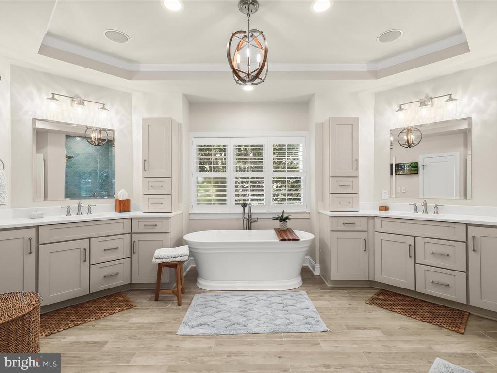 An exquisite brick residence set in one of Western Howard County's most sought-after communities, Cattail Creek, this home presents nearly 6,000 square feet of refined living space across four finished levels. Perfectly positioned across from the prestigious Cattail Creek Country Club, it combines timeless architecture, a premier golf course setting, and sophisticated updates throughout. Among its many standout features are 6 spacious bedrooms, 5.5 bathrooms, a gourmet kitchen, a breathtaking primary suite, and an incredible two-story outdoor living area. The luxurious outdoor spaces include a screened porch on the main level, a covered patio off the lower level, additional stone patios, water feature, fireplaces on both levels, and beautifully designed landscaping with exterior lighting, perfect for relaxing or entertaining in style. A tree-lined driveway and winding walkway framed by mature landscaping lead to the welcoming front portico. The three-story foyer makes a striking first impression with it's incredible architecture design, flanked by a private office and a formal living room. Crown molding adds polish here and in the dining room, which also features wainscoting. French doors in both rooms open to a bright and airy conservatory crowned with a cathedral ceiling, creating a sun-filled retreat. From the dining room, the home flows into the gourmet kitchen, a chef’s dream anchored by high-end white cabinetry with under-cabinet lighting, an island with contrasting black cabinetry, and Quartzite natural stone counters. Professional-grade appliances include a six-burner Viking range, a second wall oven, and a built-in microwave both in the island. The panel-ready Subzero refrigerator blends seamlessly with the cabinetry for a cohesive look. An apron-front sink, wet bar with beverage coolers, and casual eat-in dining area further elevate the space. Just beyond, the family room showcases a stone fireplace flanked by tall windows topped with Palladian and transoms, while French doors lead to a remarkable screened porch, complete with a wood-planked ceiling and outdoor fireplace. To complete the main level, a spacious laundry and mudroom with custom built-ins off of the garage add convenience. The first upper level begins with the exceptional primary suite, where a tray ceiling and wet bar with beverage fridge set the tone for everyday luxury. A generous dressing room with bespoke closet storage, two additional walk-in closets, and a spa-like bathroom complete the retreat. Here, separate vanities, a freestanding soaking tub, and a shower with variegated aqua tile and frameless glass create a serene experience. Two additional bedrooms, each with a renovated en-suite bath, complete this level. The top floor offers two additional bedrooms and a full bathroom with frameless tiled shower. The expansive lower level provides space for entertainment and leisure, featuring a recreation room with wet bar and beverage refrigerators, a theater room with projector and screen, a sixth bedroom or additional office space, full bath, and a bonus space ideal as a home gym. Outdoor living off the lower level is just as impressive. A custom stone patio includes a covered section with a dual-sided fireplace and exterior lighting, all overlooking the fenced backyard and a property that extends well beyond. With an oversized side-loading three-car garage and too many improvements and newer systems throughout to list, this home balances elegance with peace of mind. This one is truly a turn key home. Adding to its appeal, the property enjoys no HomeOwners Association and sits directly across from Cattail Creek Country Club. Membership is optional yet appealing, with award-winning golf, tennis, pickleball, pool, and a renovated clubhouse with dining and social amenities. With its blend of luxury finishes, thoughtful design, and an enviable setting, this home presents an extraordinary opportunity for refined living and effortless entertaining.