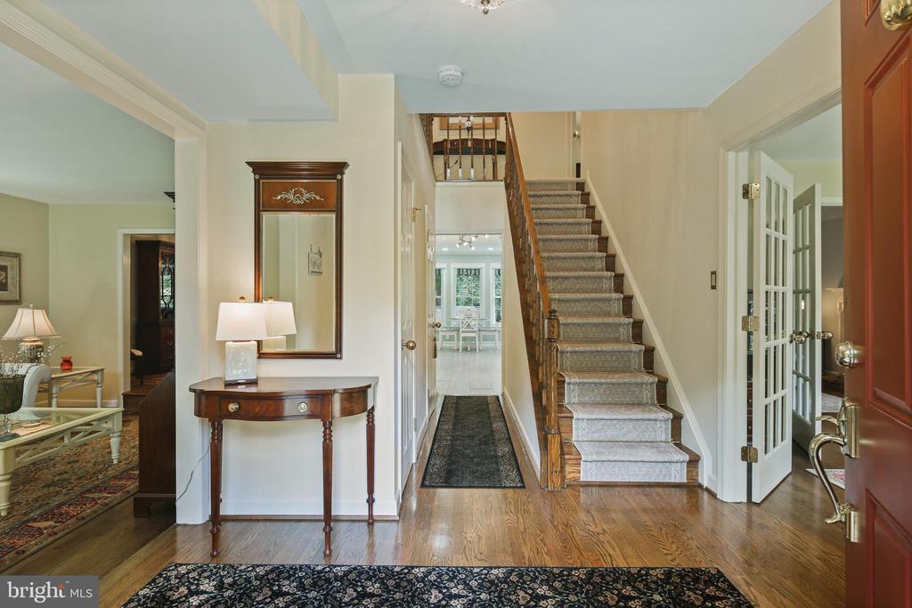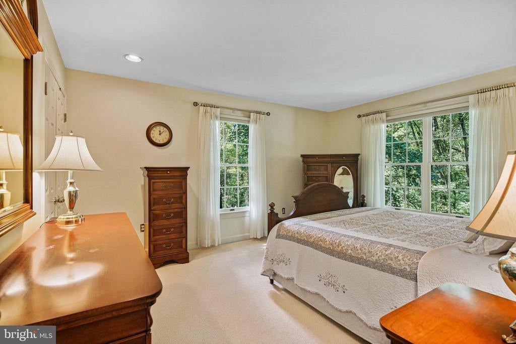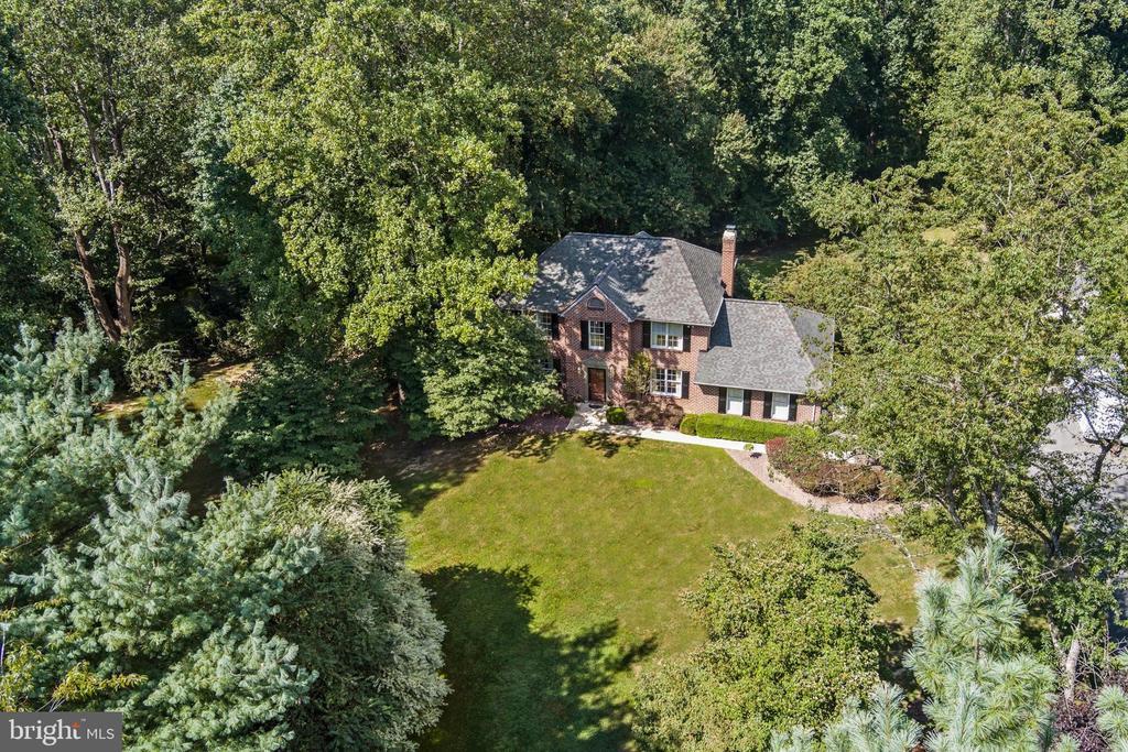Welcome to this immaculately maintained, custom-built, all-brick Colonial home, beautifully set on three acres. The professionally landscaped property offers open space surrounded by stately trees, backing onto a wooded lot. Enjoy serene privacy while being mere minutes from commuter routes, downtown Sykesville & more! A sixteen-foot-wide driveway, illuminated by pole lighting, leads to an oversized, two-car garage. This finished garage is insulated and comes with steel storage cabinets and a side entry door. Guests are welcomed into the home through a steel front entry door which opens into a 10 x 9 entrance hall. This hall features red oak hardwood floors with a dark walnut stain displayed throughout the home. The office/library can be accessed through glass panel French doors from either the entryway or the family room. This spacious office boasts large double front windows, hardwood floors, and recessed lights. After a long day, relax in the family room, featuring a brick fireplace with a hearth, mantle, and a heatolator, ensuring warmth on winter nights. Or unwind on the rear composite Trex deck under the retractable awning enjoying the peace and tranquility. Step into the heart of this home: a beautifully renovated kitchen (completed in 2023) featuring impeccable details. You'll find Schuler white icing cabinetry with soft close drawers & doors, glass cabinet doors, quartz countertops (white with grey veining for a marble-like appearance), and an Arabesque white tile backsplash. The kitchen is equipped with stainless steel appliances, including a counter-depth refrigerator and a sink with an automatic touchless faucet. Every detail was considered, from the tile floor extending underneath the cabinets to a custom pocket door from the entryway. The charming breakfast nook features a marble-top table set (conveys), complementing the kitchen's aesthetic. A bay window with five panes offers delightful views of the backyard wildlife. Adjacent to the kitchen, both the formal dining room & living room are generously sized and boast hardwood floors, an abundance of windows, custom curtains & rods, and Hunter Douglas "honeycomb" window shades. This dining room is perfectly suited for hosting large dinner parties. Doing laundry becomes a pleasure in the expanded mudroom, which features white wall panels with hooks, tile flooring, a coat closet, a pantry/supply closet, and a large stainless steel laundry sink with a cabinet. The mudroom conveniently leads to the garage. A renovated half bath completes this level. The upper level features 100% wool carpet in all four sizable bedrooms, including the spacious primary suite. This suite boasts double rear windows and a large walk-in closet. The owner's suite also includes French doors that lead to a secondary bedroom, currently configured as a sitting room but ideal for a nursery or office. The owner's bathroom features an oversized tiled shower, enhanced by Carrara marble tile, a rainfall shower head, and frameless sliding shower doors. Relax in the vast Jacuzzi whirlpool tub flooded with natural light from the five rear windows with Roman shades. A marble vanity countertop, updated vanity mirror & light fixture complete this bathroom. The walk-out basement, spanning approx. 1,370 sq ft, is ready for new owners to customize to their liking & offers rough-in plumbing, abundant storage, & an exit to a 10x10 cement pad. Other notable features include: Aug 2025-a new pressure tank, driveway seal-coated & repaved in 2017, & a hot water heater (2023) with Bluetooth Wi-Fi capability. The property also presents a 30-year arch. shingle roof (2006) with a transferable warranty, Anderson windows, and 400 AMP electric service with underground utilities. A portable backup generator & a 10x18 storage shed complete the package. This ideal location is minutes to downtown Sykesville offering shopping, restaurants, concerts & festivals. Piney Run Park a few miles away & top schools!