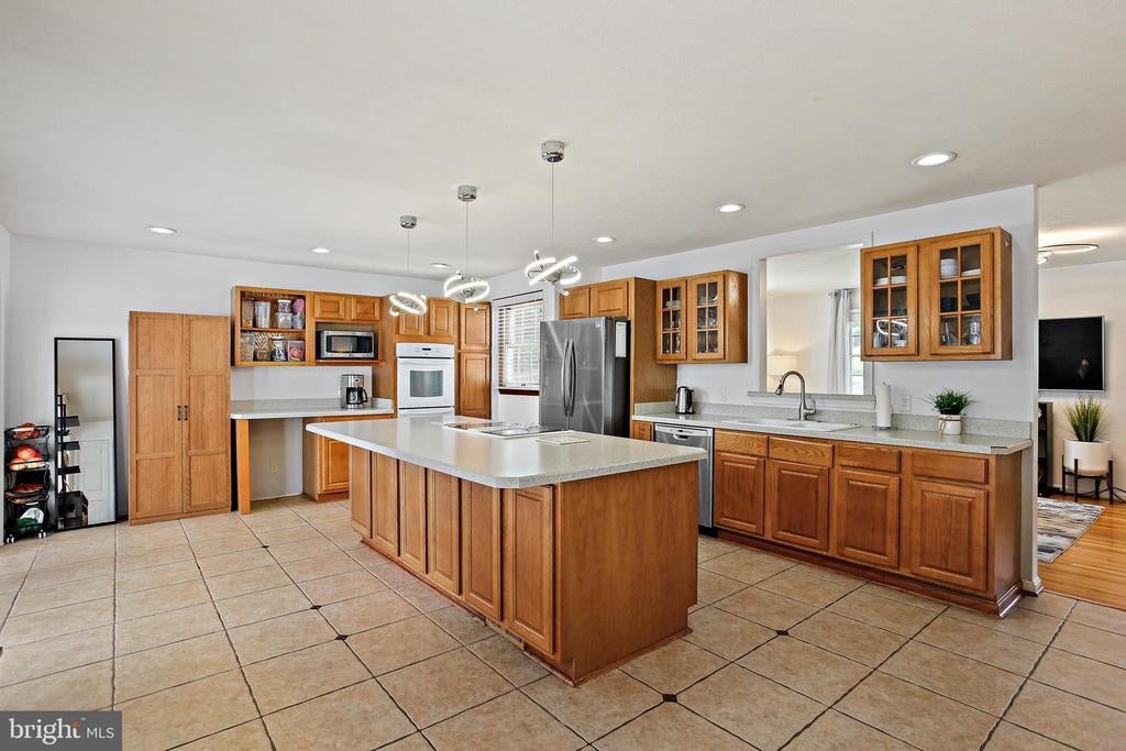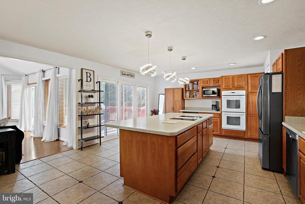 Discover your dream home at 6043 Old Washington Rd. This charming residence offers a perfect blend of comfort and convenience. Boasting spacious interiors, this property provides a serene retreat while being just moments away from local amenities, major highways and top-rated schools. The heart of this home is the large eat-in kitchen, featuring updated pendant lighting over a large island with seating, a double oven, stainless steel refrigerator, dishwasher, and a large double sink, all complemented by tile flooring. A three-panel sliding glass door in the kitchen leads to the large rear deck and lets in an abundance of natural light. This bright and spacious kitchen enjoys an open layout, flowing seamlessly into the living room boasting hardwood flooring and a bright and airy sunroom. The main level also includes two bedrooms with beautiful hardwood flooring both offering large walk-in closets with custom built-in closet organizers, two full bathrooms, and a laundry area. Updated light fixtures and ceiling fans throughout the home add to the ambiance and comfort. Beyond the main living areas, you'll find a spacious finished lower level complete with a family room, third bedroom, a half bath, and a convenient walkout to the rear yard. Parking is ample with a two-car garage plus plenty of additional parking space on the large driveway. The driveway can accommodate larger business vehicles and has direct access to the finished lower level. The rear yard is fully fenced with a 6’ vinyl privacy fence. Nestled in the vibrant community of Elkridge, you'll enjoy easy access to a wealth of shopping, dining, and recreational opportunities. The neighborhood itself is known for its friendly atmosphere and well-kept properties. Commuting is a breeze with quick access to major transportation routes including US-1, I-95, and MD-100, making travel to Baltimore, Washington D.C., and surrounding areas highly convenient. Public transportation options are also readily available. Don't miss the chance to make this delightful house your new home, combining suburban tranquility with urban accessibility. View the 360 Photo Tour!