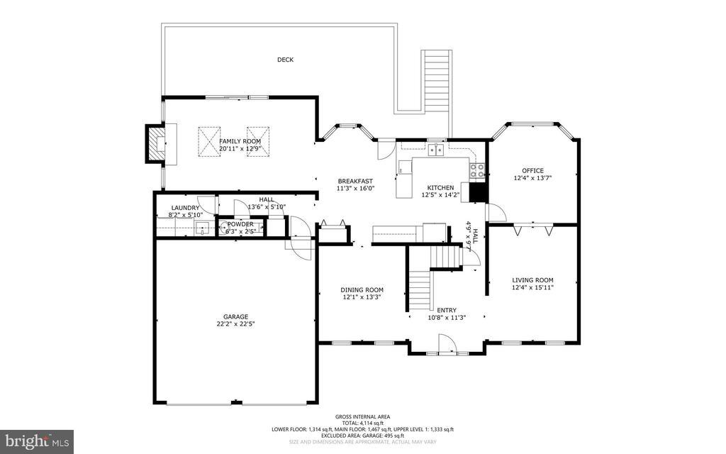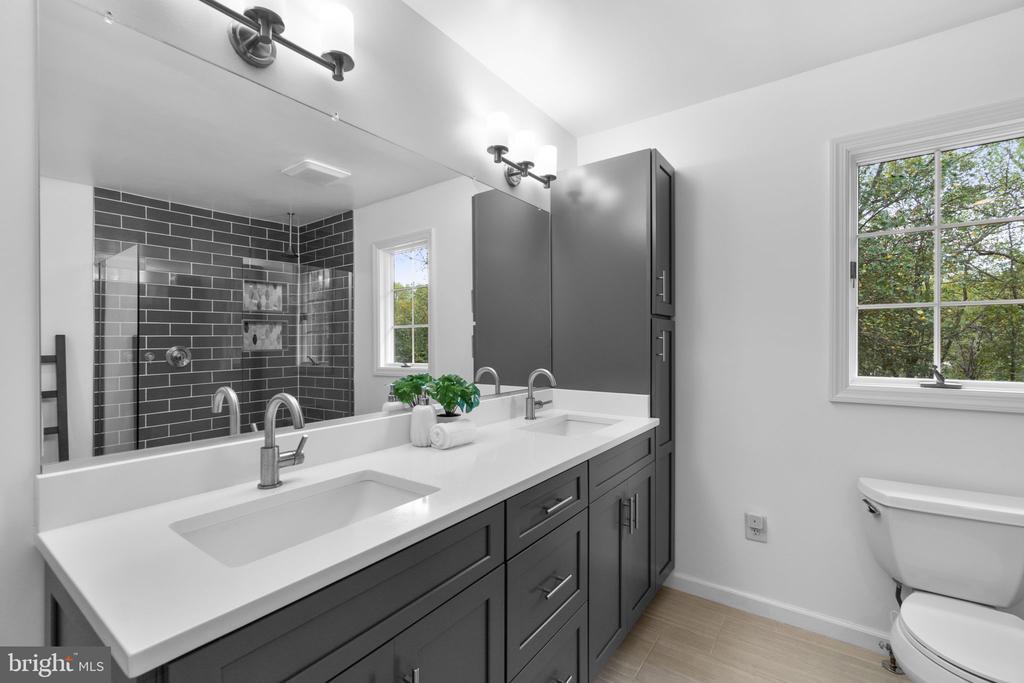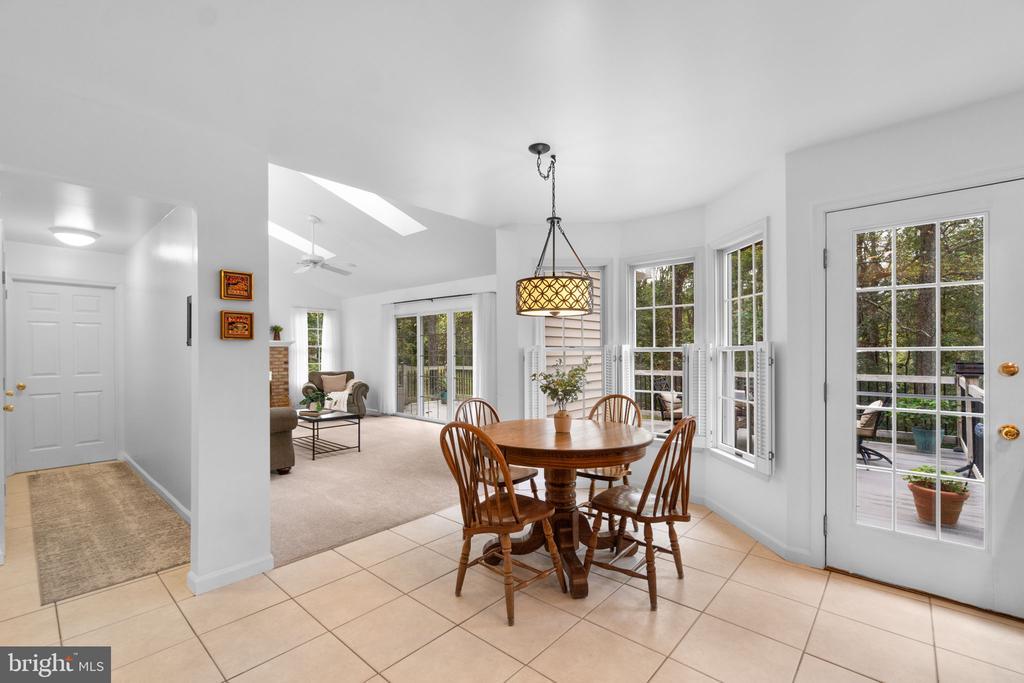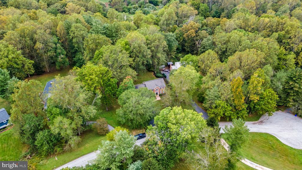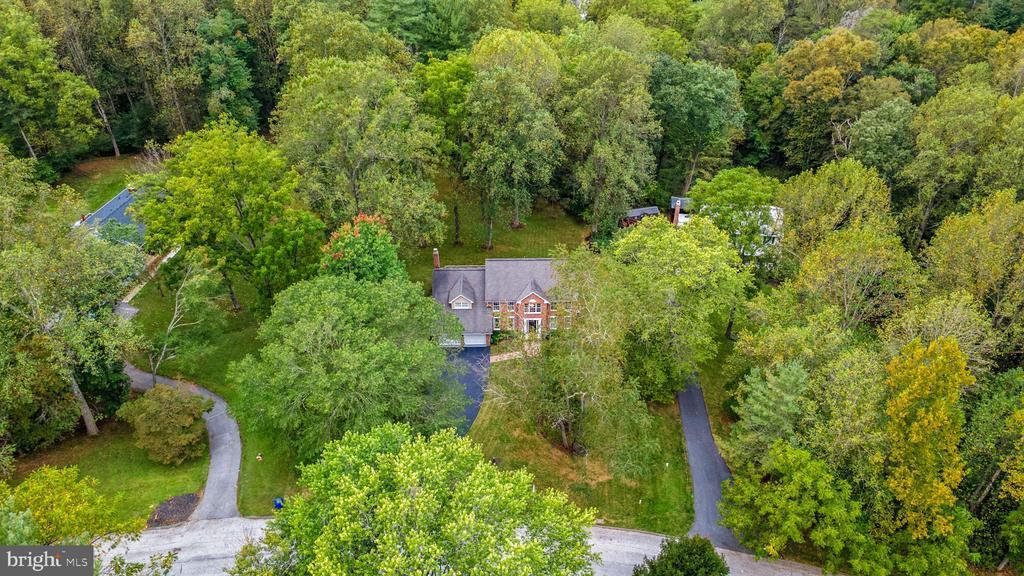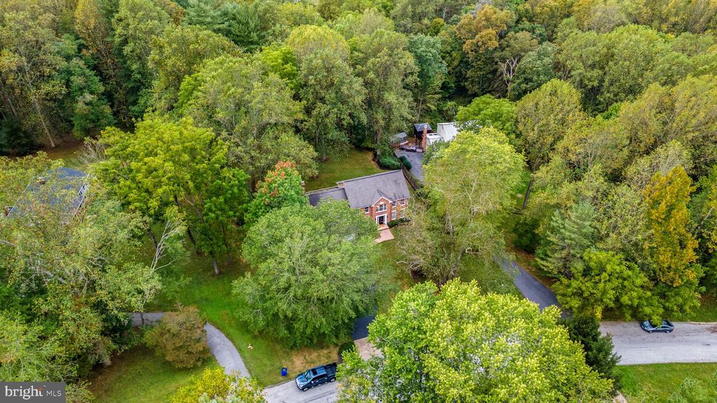 Stately brick Colonial set on 1.5 serene acres in the desirable Breezewood Farms community, offering a gorgeous lot and timeless curb appeal. Inside, hardwood floors flow throughout the traditional main level. The foyer opens into the formal living room, which connects through French doors to a bright study with bay windows. Opposite the foyer, the formal dining room sets the stage for gatherings with its elegant chandelier. The updated eat-in kitchen is a chef’s delight, featuring stainless steel appliances, granite countertops, a subway tile backsplash, a beverage refrigerator, and a breakfast room with bow windows and access to the deck. Open to the breakfast room, the spacious family room is highlighted by a brick-accented wood-burning fireplace, vaulted ceilings, skylights, and oversized sliding glass doors that fill the space with natural light. A well-appointed laundry room and a convenient powder room complete the main level. Upstairs, the carpeted upper level hosts four bedrooms and a full hallway bath. The primary suite boasts vaulted ceilings, a sitting room, a walk-in closet, and a private bath with a Roman tub and dual-sink vanity. The fully finished walk-up lower level expands the living space with a recreation room featuring a built-in bookcase, along with a fifth bedroom suite with an attached full bath—perfect for multi-generational living. Two storage and utility areas add convenience. Outdoors, a large composite deck with updated railings and steps down to a lower fenced brick patio spans the length of the home with hardscaping and an expansive backyard with a small side fence. The premium 1.5-acre lot backs to woods, creating private and serene retreat ideal for entertaining or relaxing.