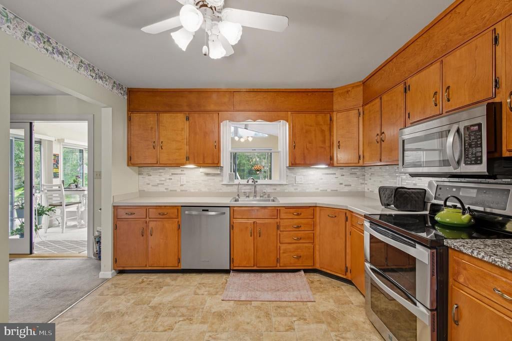 A piece of Heaven. One of Howard County's finest locations tucked amongst the idyllic farm land of western Howard County, just a few minutes drive to 70 and 32. Serenity, peace and quiet abound on 1 full acre backing to forest conservation. Welcome to 13750 Barberry Way, a beautifully maintained 3-bedroom, 2-bath custom home on a peaceful cul-de-sac in Sykesville of Howard County. Step inside to a ceramic tile foyer with a new entry door and sidelights. The main level features a formal living room with a large picture window, a dining room with French doors to the solarium, and an eat-in kitchen with Corian counters, tile backsplash, and updated stainless appliances, including a Kenmore Elite double oven and Samsung 3-door refrigerator. The spacious solarium offers transom windows, six sliders with screens, and access to a Trex deck overlooking the backyard. Spend nights star gazing being just beyond city lights. Yet only less than 10 minutes from 40 W in Ellicott City, for fine dining, shopping and more. This beautiful home offers over 2,600 square feet of inviting living space designed for comfort and functionality. The kitchen flows seamlessly into formal living and dining rooms, making entertaining a breeze. A bright sunroom provides year-round enjoyment with serene backyard views. The primary suite includes a fully renovated bath (2022), while two additional bedrooms share a full hall bath. The walk-out lower level boasts a large family room with built-in shelves, a brick wood-burning fireplace with mantle and heatilator, and a workshop/utility room. The lower level expands the possibilities plus rough-ins for a fourth bedroom and full bath—perfect for guests, hobbies, or a growing family. The side-load two-car garage and ample driveway add convenience, while thoughtful updates ensure move-in readiness. Recent updates include roof (2018), new well pump and tank (2019), water filtration system (2024), Reverse Osmosis (RO filter) for drinking water, and more. Extras like Anderson windows, storage shed, solar WiFi cameras, and dedicated power for a hot tub make this truly a place to call home. Set in one of Howard County’s most desirable school districts, Glenelg HS, Glenwood MS, Bushy Park ES, this home combines privacy and charm with easy access to shopping, dining, commuter routes. Whether hosting friends, relaxing by the fire, or enjoying the expansive backyard, 13750 Barberry Way offers the lifestyle you’ve been looking for. Don’t miss the opportunity to make this special property your forever home!