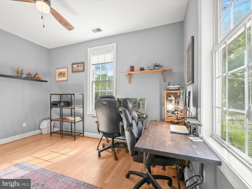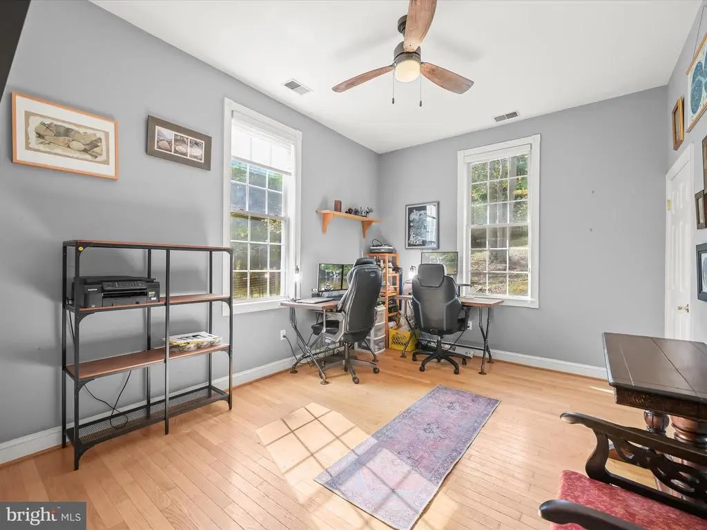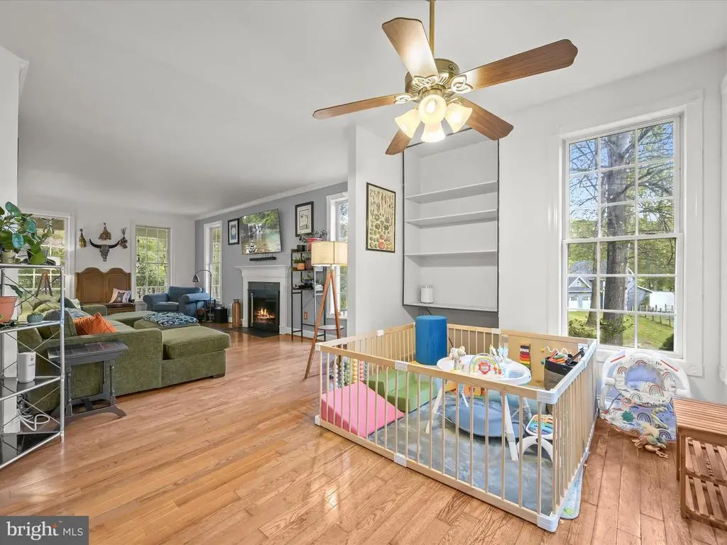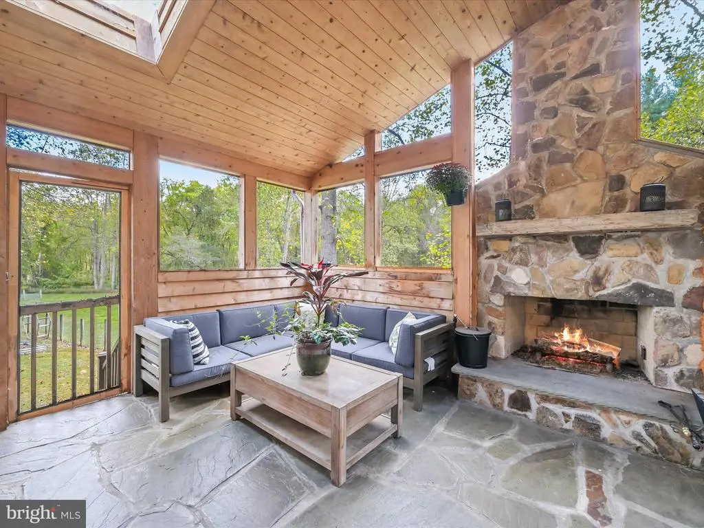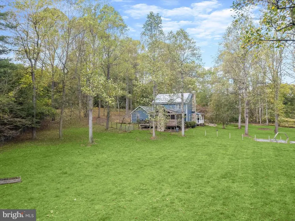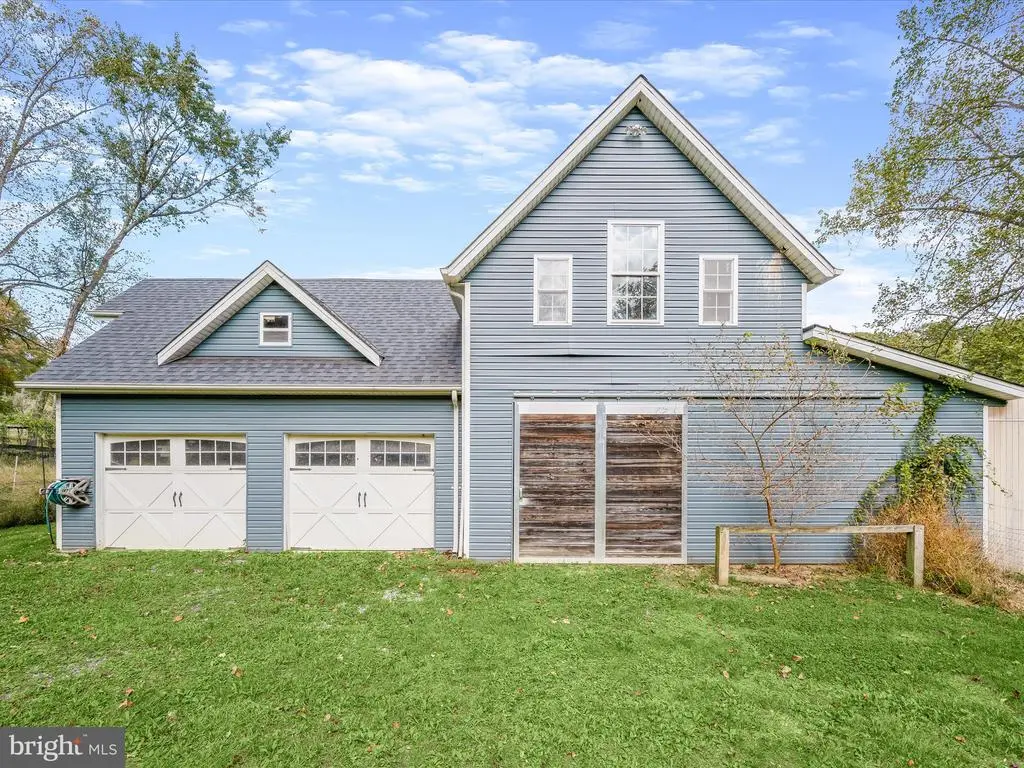 Beautiful colonial on over 7 Acres with an entry level guest suite, and a detached garage with stables! This beautifully updated colonial is nestled on over 7 private acres and offers the perfect blend of classic charm, modern updates, and versatile living space, including a detached garage with stables which have power and water, and a young orchard of apples, pears, peaches, and berries. Step inside to a bright and airy open floor plan featuring hardwood floors, offering spacious living and dining areas highlighting a wood burning fireplace and accent molding, a cozy sitting room, and a stunning sunroom with a soaring cathedral wood ceiling, skylights and a rustic stone fireplace. The updated kitchen boasts dual-tone cabinetry, granite countertops, stainless steel appliances, and a sunny breakfast area. A powder room and laundry area are conveniently located on the main level and lead to a private guest suite with a generous living area, bedroom, full bath, and direct access to the yard, ideal for multigenerational living or long-term guests. Upstairs, the spacious primary suite offers a luxurious en suite bath with dual vanities, soaking tub, and separate shower. Two additional bedrooms and a full bathroom complete the upper level. The finished lower level includes a recreation room and abundant storage space, and additional amenities include leased solar panels, and an electric car charger. Recent updates include most major appliances, water system, tankless water heater, and more. Enjoy serene country living with the convenience of nearby shopping, dining, entertainment, and easy access to major commuter routes.
