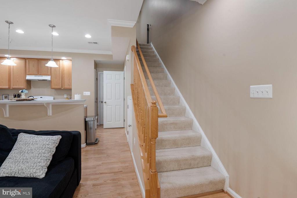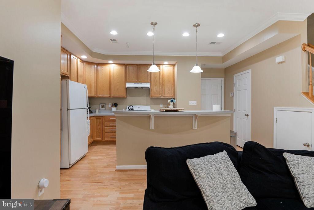 This exceptional 3-bedroom, 2.5-bath townhome-style condominium offers a rare opportunity to enjoy spacious, contemporary living in the highly desirable Elkridge Crossing community. Thoughtfully designed, this residence features tall ceilings, rich hardwood flooring, and abundant natural light that makes for a lovely ambiance. The open-concept kitchen is a true centerpiece, boasting generous counter space, sleek cabinetry, recessed and pendant lighting, and a seamless flow into the main living and dining areas—ideal for both everyday living and entertaining. A private balcony at the rear of the home provides a tranquil outdoor retreat. Upstairs, the expansive primary suite offers an oversized walk-in closet and a luxurious en-suite bath, while the upper-level laundry adds everyday convenience. Additional highlights include an attached garage and well-appointed secondary bedrooms. Perfectly positioned near premier shopping, dining, and recreational amenities, this home offers effortless access to major commuter routes—just minutes to Fort Meade, Annapolis, Washington D.C., and Baltimore. A perfect blend of comfort, style, and location—this is refined suburban living at its best.