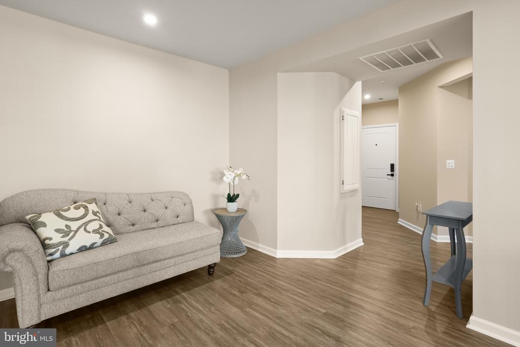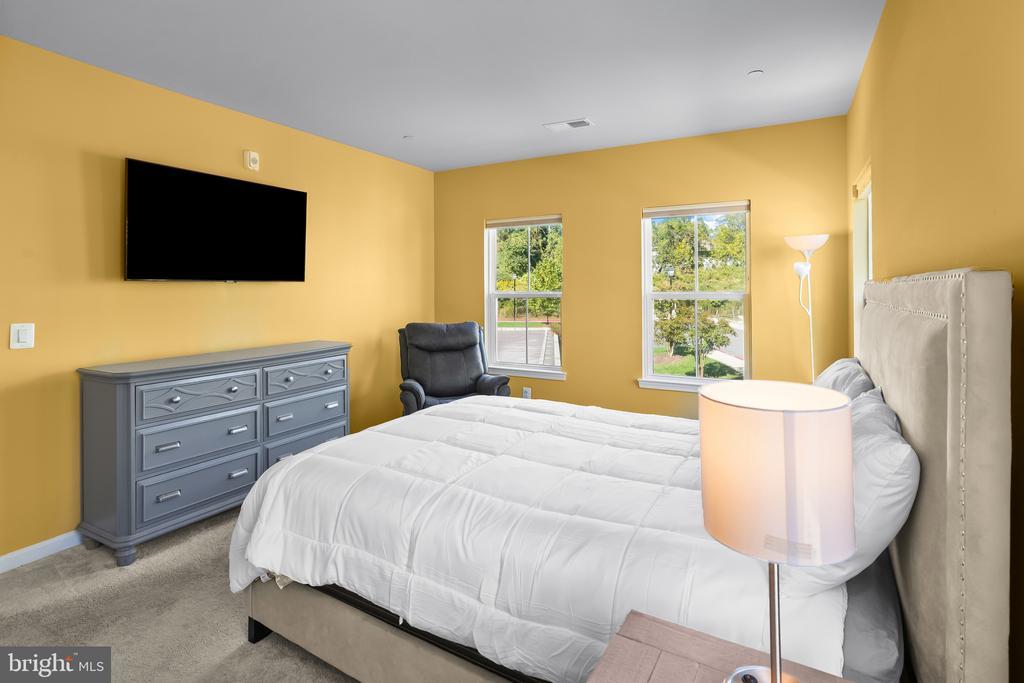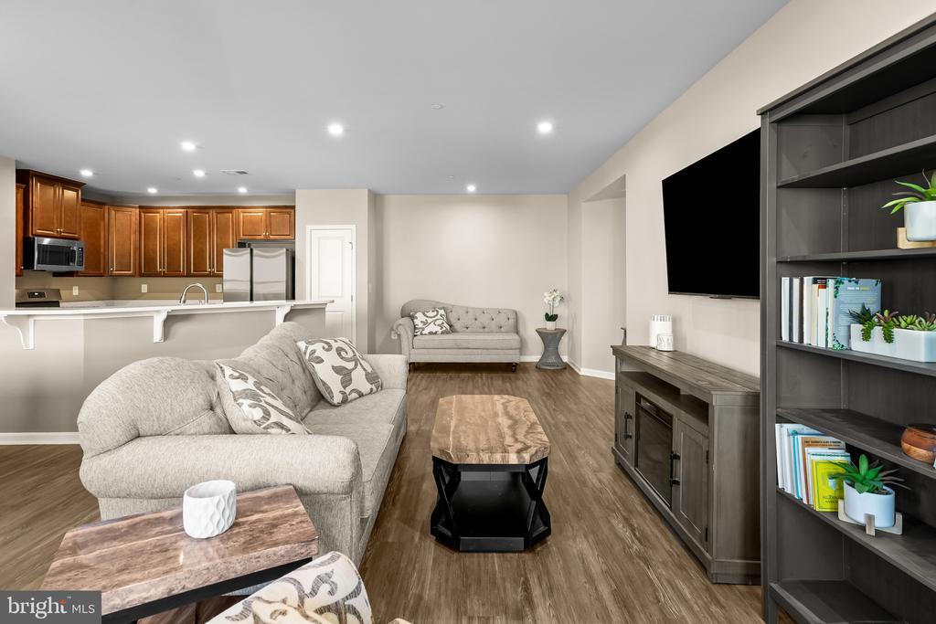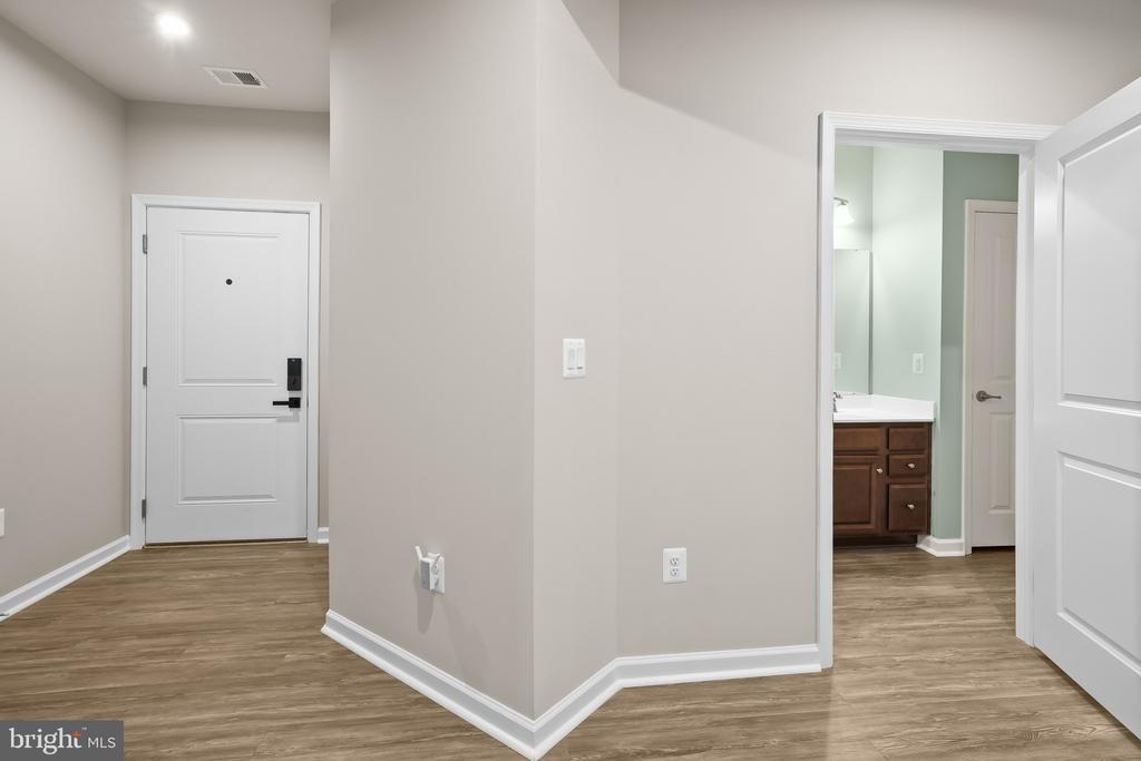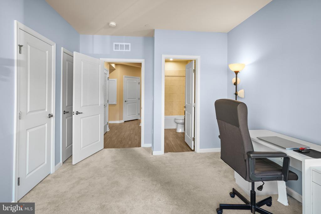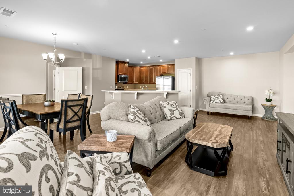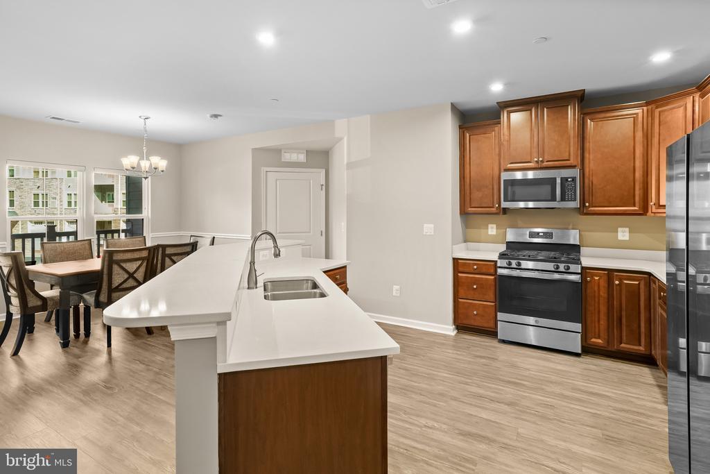 Beautifully appointed condominium built in 2022, offering 1,502 square feet with 2 bedrooms, 2 full baths in the desirable 55+ community of Ellicott’s Retreat. This nearly new residence showcases expansive open-concept living with gleaming floors throughout. The foyer opens to a welcoming sitting area that flows seamlessly into the great room, featuring a bright and spacious living room with balcony access, a dining area accented by a chandelier and chair railing, and an eat-in kitchen. The kitchen is equipped with a large island with breakfast bar seating, stainless steel appliances, a pantry, and abundant cabinetry and counter space for both storage and meal preparation. The home offers double owner’s suites, both carpeted with private attached baths. The secondary suite includes a versatile alcove—ideal as a home office, reading nook, large closet, or storage space—as well as a dual-access bath that also connects to the hallway. The main primary suite features two closets, including a generous walk-in, and a spa-inspired bath complete with a dual-sink vanity. Residents of Ellicott’s Retreat enjoy access to a clubhouse with a versatile multipurpose room, along with beautifully maintained natural spaces with scenic paths and benches to relax.