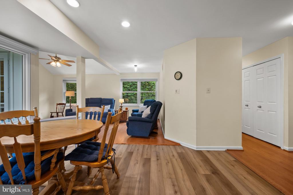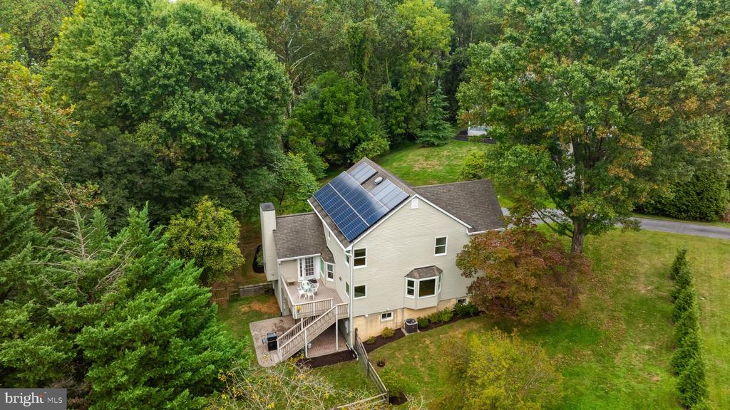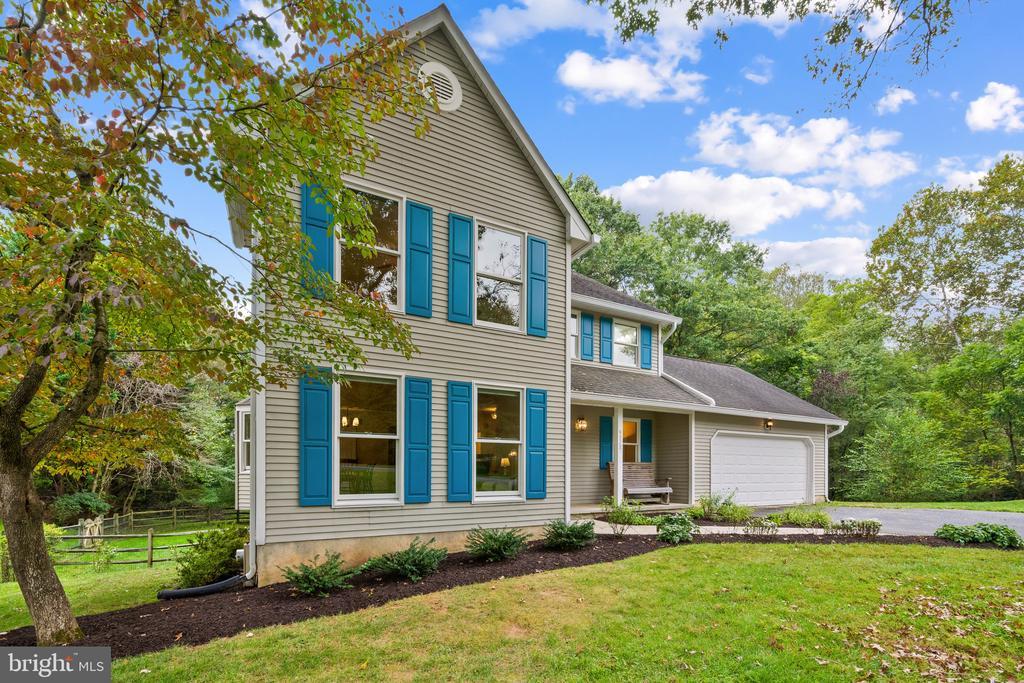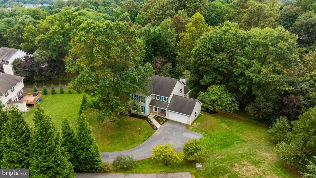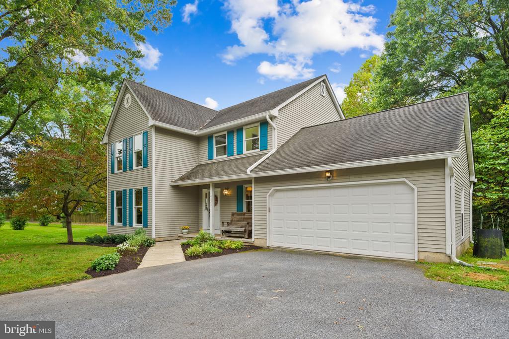 Elegant Colonial residence offering 3,666 square feet with 4 bedrooms, 3 full baths, 1 half bath, and a 2-car garage, set on more than half an acre of private land in sought-after The Willows. A welcoming front porch and lush landscaping lead into the beautifully maintained interior, where hardwood floors flow throughout the main-level foyer. The formal living room seamlessly opens into the dining room, accented by a sparkling chandelier and a large bay window. The eat-in kitchen, updated in 2021, showcases luxury vinyl plank flooring, quartz countertops that extend into the backsplash, crisp white appliances, and a spacious breakfast area. Just beyond, the spacious family room impresses with soaring vaulted ceilings, a cozy gas fireplace, and direct access to the deck. A well-appointed office (or potential guest bedroom), a laundry closet with a washer (2025) and dryer (2021), and a stylishly updated powder room (2024) add everyday convenience. Upstairs, four bedrooms and two refreshed full baths (2022) include the primary suite with hardwood floors, a private attached bath, and a separate vanity area. The three secondary bedrooms all feature durable laminate flooring. The fully finished walk-out lower level expands the living space with a large recreation room, a versatile bonus room, and a workshop area. Outdoors, enjoy the Trex deck, a lower covered brick patio, and a fenced backyard that backs to mature trees and a peaceful creek—an ideal setting for entertaining or quiet relaxation. Notable updates include the HVAC system (2025), solar panels, and more—providing comfort, efficiency, and energy savings.