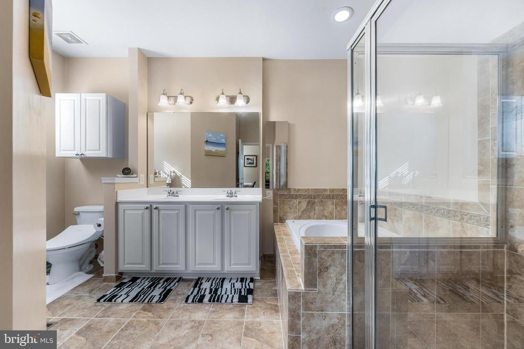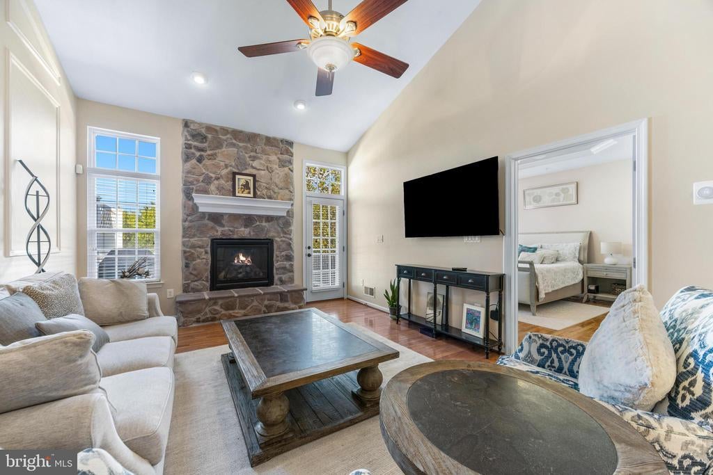 Welcome to this spacious and light-filled end-unit villa located in a vibrant 55+ adult community offering fantastic amenities including a pool, tennis courts, walking paths, clubhouse, and more. Nestled in a serene, park-like setting with mature trees and open green space, this home offers privacy and natural beauty. Enjoy peaceful mornings on the deck overlooking open space or admire the views from the kitchen’s large bay windows. Inside, the open floor plan features soaring ceilings and a welcoming two-story foyer. The large kitchen includes a center island and breakfast nook, flowing into the dining and living areas where a stunning stone gas fireplace creates a warm and inviting space — perfect for gatherings or quiet evenings. The lower level is designed for entertaining and versatility, with a theater-style setup, bar area, full bathroom, and a private office space. Enjoy a spacious main level primary that is perfectly appointed with a large closet and open spa-like bathroom. Upstairs, you'll find two spacious bedrooms, a full bathroom, a large loft, and a charming bonus room — ideal for hobbies, reading, or additional workspace. Additional features include a 2-car garage, driveway parking, and available street parking. This home offers comfort, style, and a low-maintenance lifestyle in an amenity-rich community.