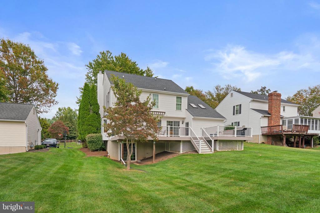 Beautiful Colonial residence offering 2,660 finished square feet, 4 bedrooms, 2.5 bathrooms, and a 1-car garage, set on a gorgeous lot in desirable Market Square. Step inside to a traditional floor plan beginning in the foyer, which provides convenient access to a powder room and the garage. To the right, the spacious formal living room features elegant crown molding and plush carpeting that flows seamlessly into the formal dining room, also adorned with crown molding and highlighted by a charming bay window that fills the space with natural light. The stunning eat-in kitchen, newly updated in 2025, showcases bright white cabinetry, quartz countertops, and stainless steel appliances. A cozy breakfast area with access to the deck overlooks the expansive family room, where vaulted ceilings and skylights create an airy, open atmosphere. Upstairs, discover three generous bedrooms and two full bathrooms. The primary suite includes a walk-in closet, a private ensuite bath, and private access to a versatile loft — ideal for a home office, den, or fourth bedroom — with views overlooking the family room below. The fully finished walk-out lower level is perfect for entertaining, offering a recreation room with a brick-accented gas fireplace, a built-in wet bar, and a game area, along with a laundry and storage room. Enjoy outdoor living on the spacious deck overlooking the flat, landscaped backyard with a storage shed—an inviting space for relaxation or gatherings. Take in gorgeous sunset views from the deck, adding a serene backdrop to evening entertaining. Major updates include the replacement of the HVAC system in 2023 for added peace of mind.