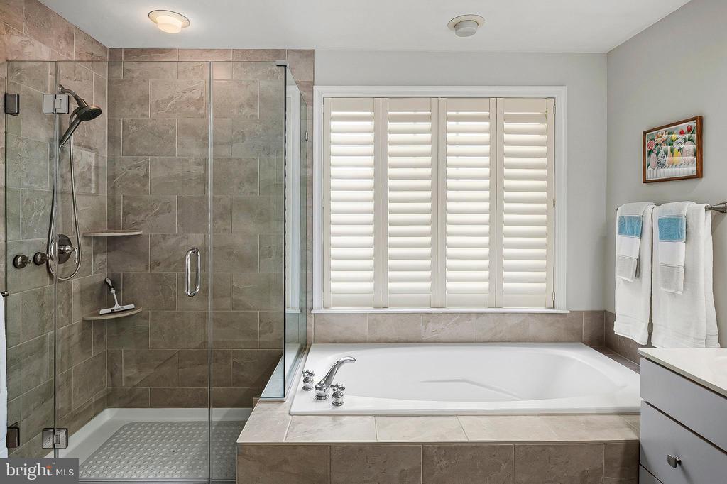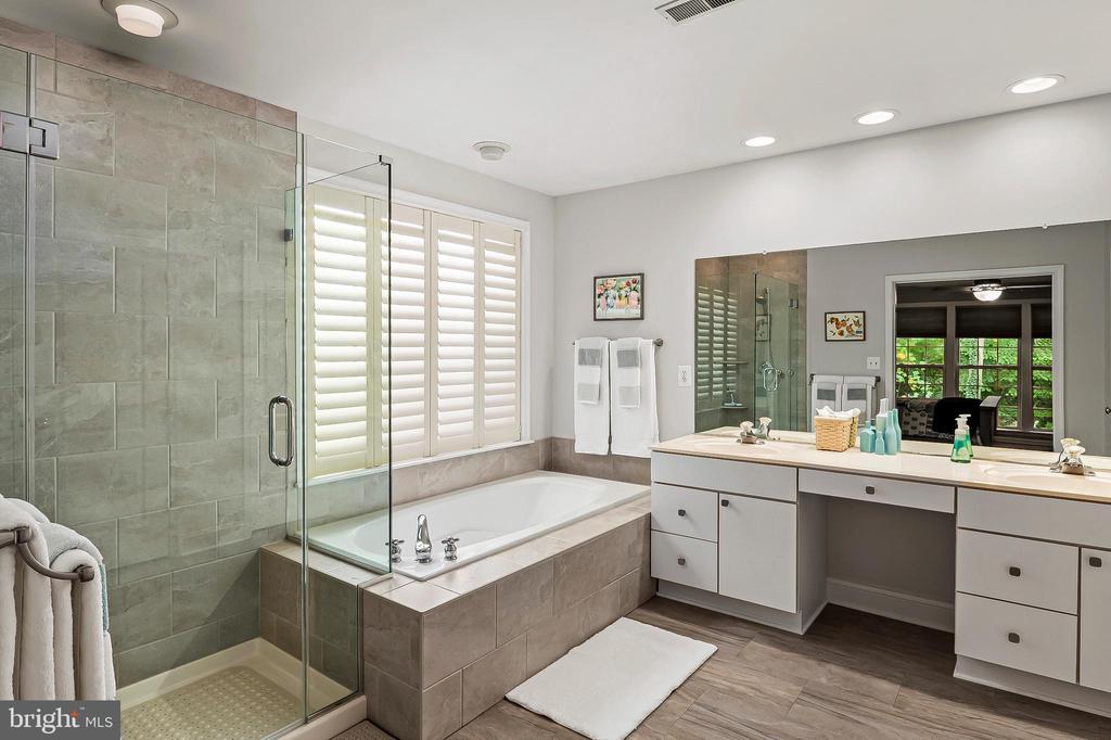 Soaking Tub, Bathroom - Walk-In Shower, CeilngFan(s), Chair Railing, Crown Molding, Master Bath(s), Recessed Lighting, Upgraded Countertops, Wood Floors