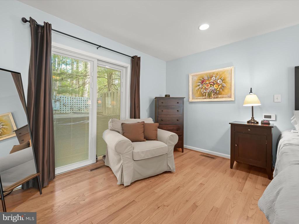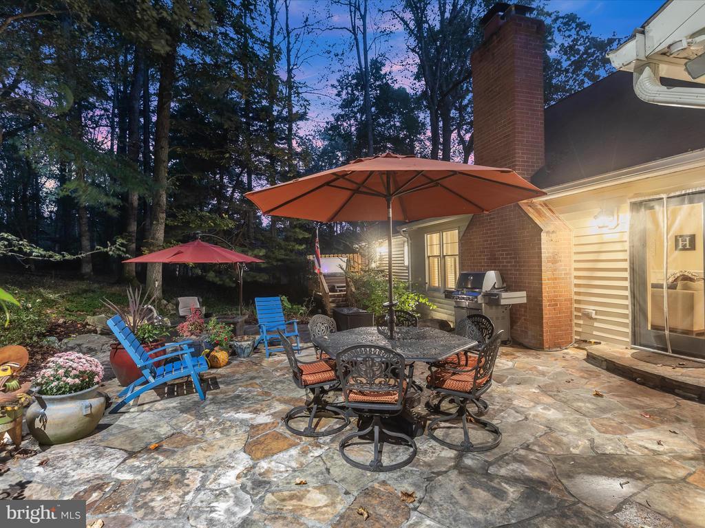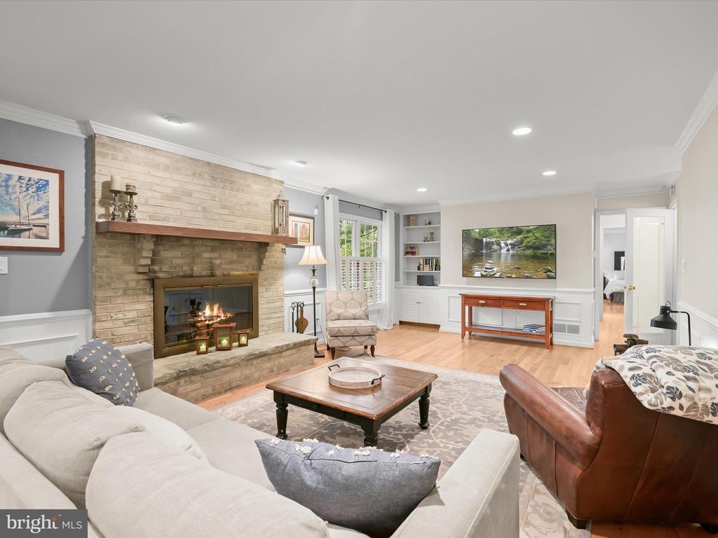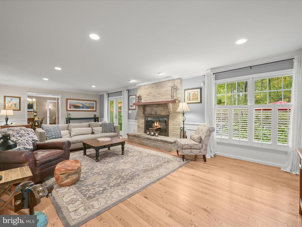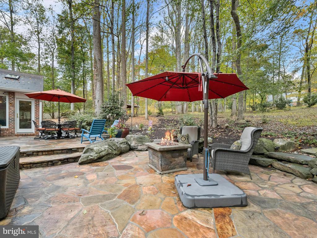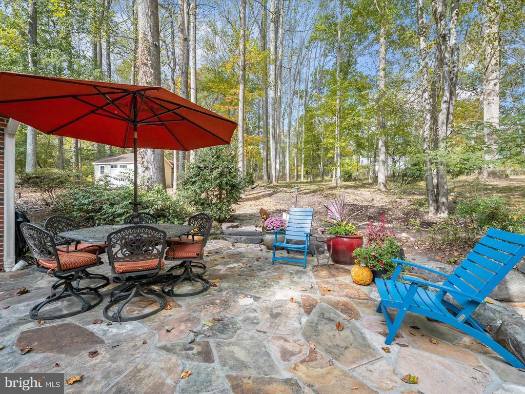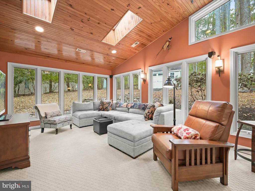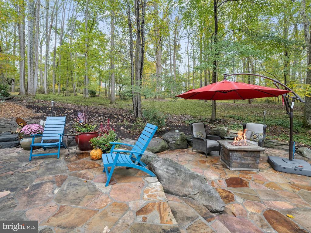 Introducing this extraordinary one-of-a-kind home tucked away in the sought-after Woodmark neighborhood in Ellicott City, offering a peaceful retreat on nearly an acre surrounded by mature trees. Featuring three bedrooms with four and a half bathrooms, this home has been thoughtfully updated inside and out, with meticulous attention to detail and timeless design. Beautifully manicured landscaping and a charming covered front porch create a warm welcome as you arrive. Inside, a soft color palette, sun-filled windows, and rich hardwood floors establish an inviting ambiance. Prepare your favorite meals in the gourmet eat-in kitchen that boasts granite countertops, a tile backsplash, lighted cabinetry, and a breakfast nook with a built-in desk station. Stainless steel appliances include a five-burner gas cooktop with telescopic downdraft, double wall ovens, and a Sub-Zero refrigerator replaced in 2024. A cozy wood-burning fireplace with brick surround anchors the elegant living room, enhanced by wainscoting, crown molding, and built-in shelving. French doors from the formal dining room open to an expansive family room with a soaring wood-beamed cathedral ceiling, skylights, and a stunning stacked-stone feature wall. Floor-to-ceiling windows frame peaceful views of the lush surroundings, creating an inspiring space for gathering or unwinding. This side of the home also includes a half bathroom and a laundry room with more storage and garage access. The main level hosts the primary bedroom suite with dual closets and sliding doors to a deck with a relaxing hot tub. The luxurious ensuite bathroom showcases a frameless glass shower with a rainfall showerhead and built-in bench. A second bedroom and a second full bathroom with a tub shower complete the main level. Upstairs, the top level is a private third bedroom suite with a walk-in closet and a spacious walk-in shower in the bathroom. Downstairs, the finished walk-out lower level extends the living area with a large recreation room featuring a gas fireplace and a wet bar, ideal for entertaining. A home office provides a quiet workspace and could serve as a fourth bedroom with an adjacent full bathroom that has a walk-in shower. A versatile bonus room with a walk-in closet offers space for a gym, playroom, another office, or creative studio. Ample storage abounds, including an expansive utility room and separate storage room. Outdoor living shines with a Tennessee flagstone patio perfect for barbecues or starlit evenings. Other recent updates include a new HVAC system (2025) and water heater (2024). Additional features such as outdoor lighting, a storage shed, and a two-car garage ideal for auto enthusiasts, complete this home. Nestled across from 28 acres of conserved woodlands and a scenic neighborhood pond down the street, this tranquil setting offers both natural beauty and a true sense of retreat.