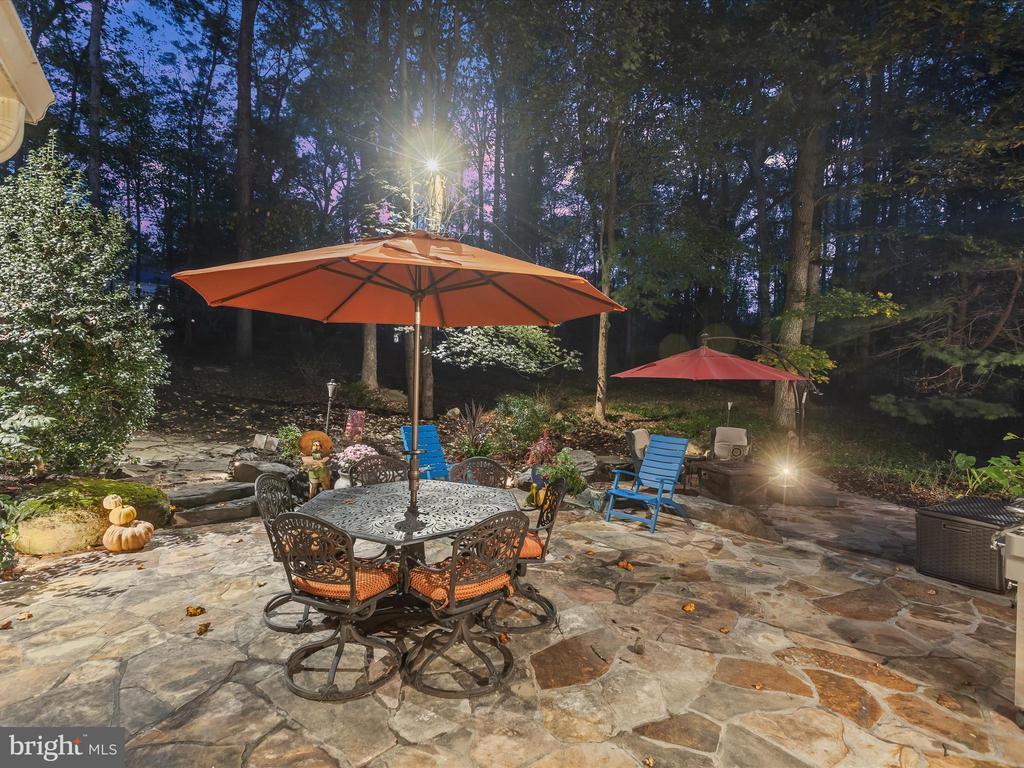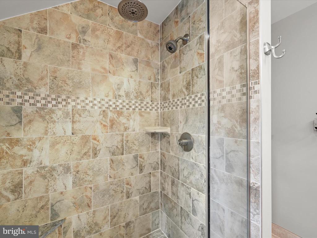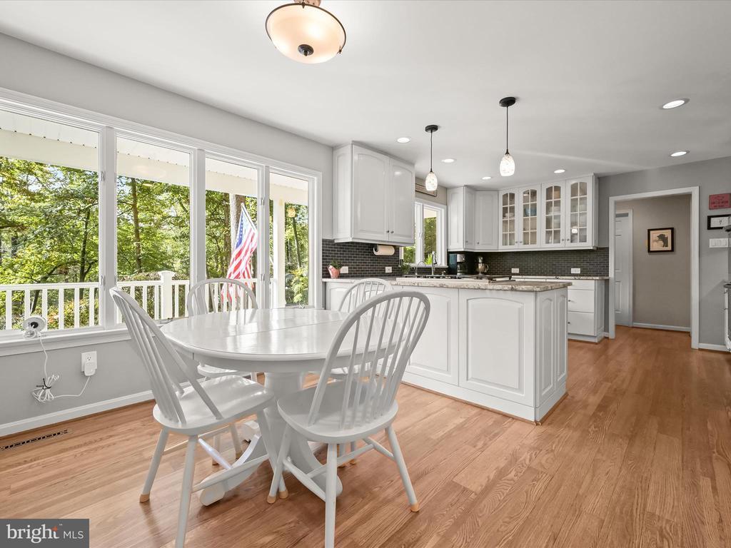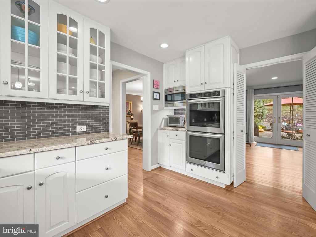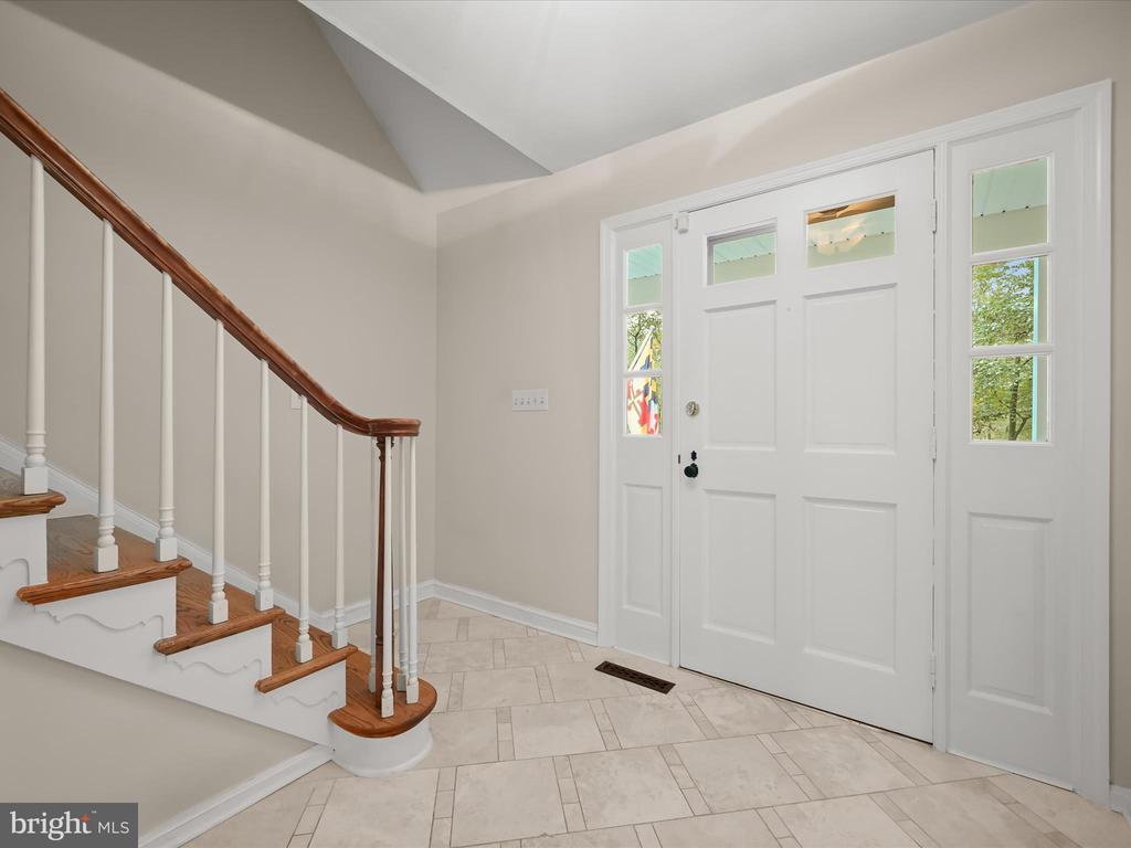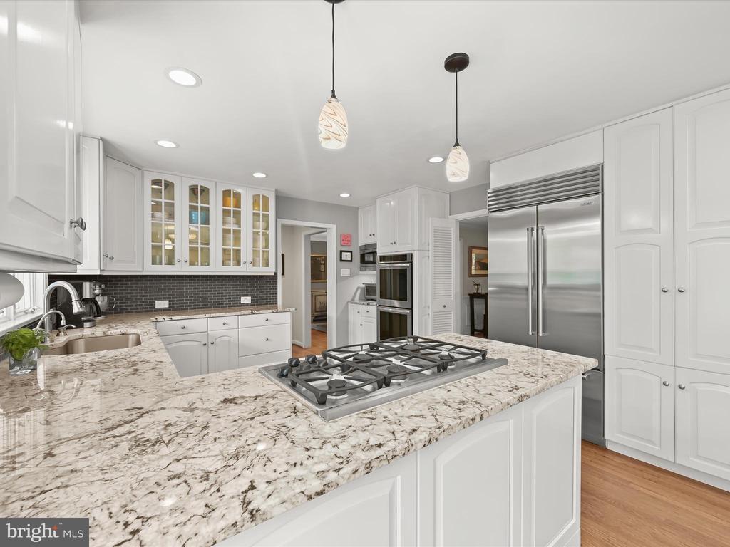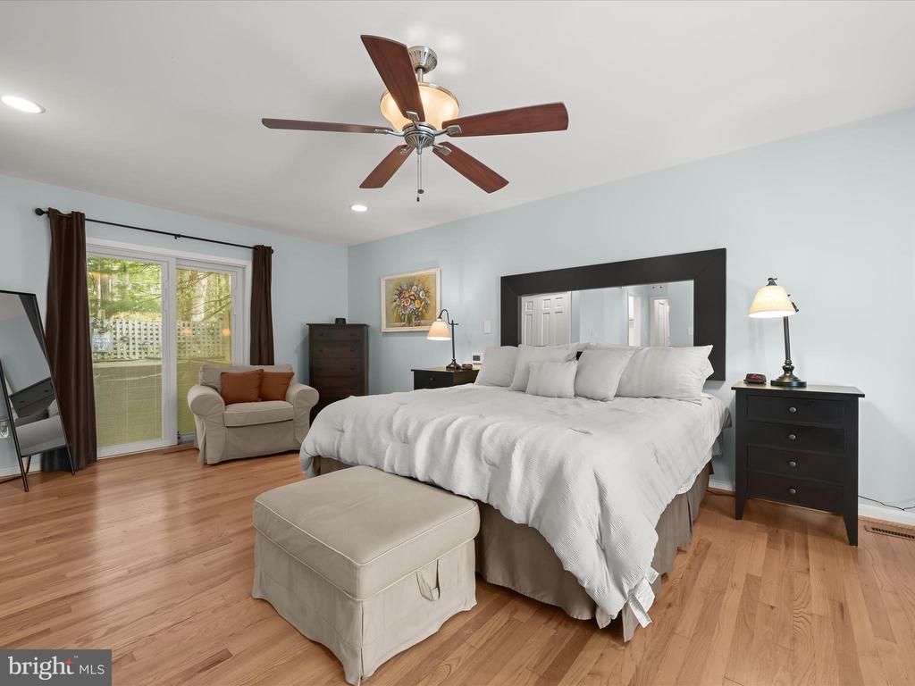 Introducing this extraordinary one-of-a-kind home tucked away in the sought-after Woodmark neighborhood in Ellicott City, offering a peaceful retreat on nearly an acre surrounded by mature trees. Featuring three bedrooms with four and a half bathrooms, this home has been thoughtfully updated inside and out, with meticulous attention to detail and timeless design. Beautifully manicured landscaping and a charming covered front porch create a warm welcome as you arrive. Inside, a soft color palette, sun-filled windows, and rich hardwood floors establish an inviting ambiance. Prepare your favorite meals in the gourmet eat-in kitchen that boasts granite countertops, a tile backsplash, lighted cabinetry, and a breakfast nook with a built-in desk station. Stainless steel appliances include a five-burner gas cooktop with telescopic downdraft, double wall ovens, and a Sub-Zero refrigerator replaced in 2024. A cozy wood-burning fireplace with brick surround anchors the elegant living room, enhanced by wainscoting, crown molding, and built-in shelving. French doors from the formal dining room open to an expansive family room with a soaring wood-beamed cathedral ceiling, skylights, and a stunning stacked-stone feature wall. Floor-to-ceiling windows frame peaceful views of the lush surroundings, creating an inspiring space for gathering or unwinding. This side of the home also includes a half bathroom and a laundry room with more storage and garage access. The main level hosts the primary bedroom suite with dual closets and sliding doors to a deck with a relaxing hot tub. The luxurious ensuite bathroom showcases a frameless glass shower with a rainfall showerhead and built-in bench. A second bedroom and a second full bathroom with a tub shower complete the main level. Upstairs, the top level is a private third bedroom suite with a walk-in closet and a spacious walk-in shower in the bathroom. Downstairs, the finished walk-out lower level extends the living area with a large recreation room featuring a gas fireplace and a wet bar, ideal for entertaining. A home office provides a quiet workspace and could serve as a fourth bedroom with an adjacent full bathroom that has a walk-in shower. A versatile bonus room with a walk-in closet offers space for a gym, playroom, another office, or creative studio. Ample storage abounds, including an expansive utility room and separate storage room. Outdoor living shines with a Tennessee flagstone patio perfect for barbecues or starlit evenings. Other recent updates include a new HVAC system (2025) and water heater (2024). Additional features such as outdoor lighting, a storage shed, and a two-car garage ideal for auto enthusiasts, complete this home. Nestled across from 28 acres of conserved woodlands and a scenic neighborhood pond down the street, this tranquil setting offers both natural beauty and a true sense of retreat.