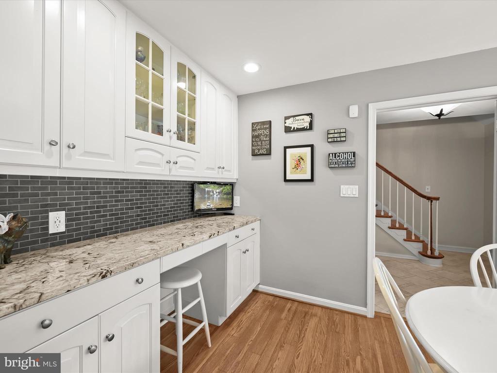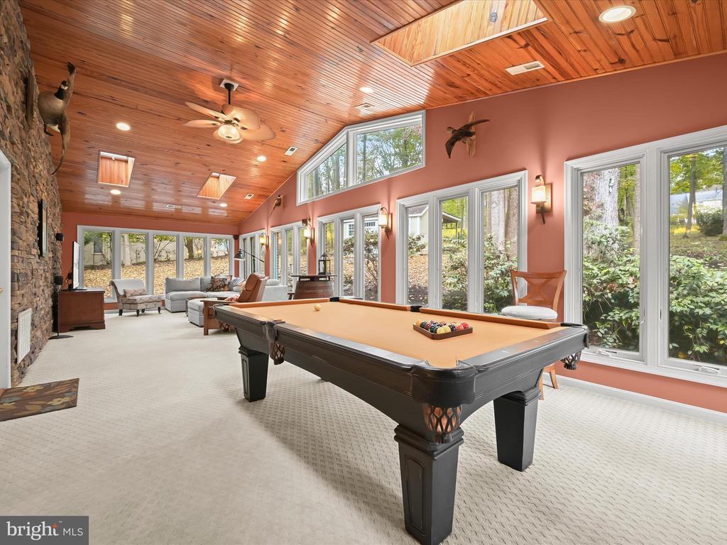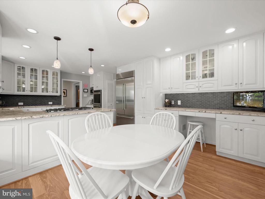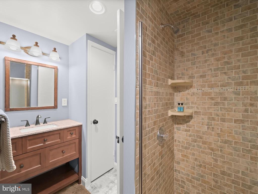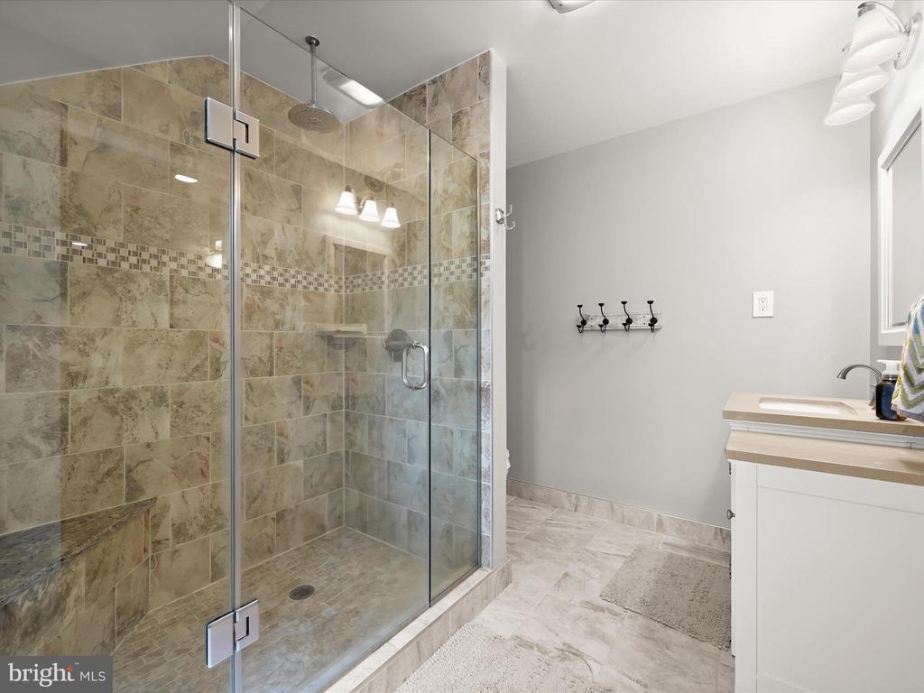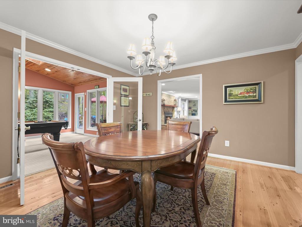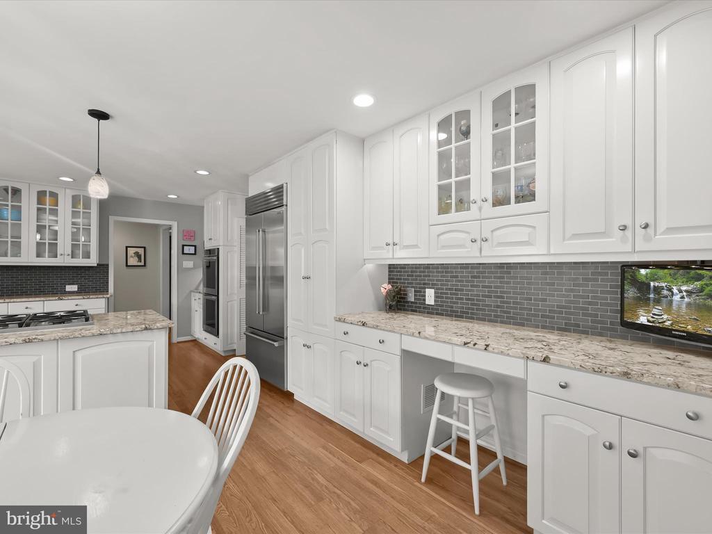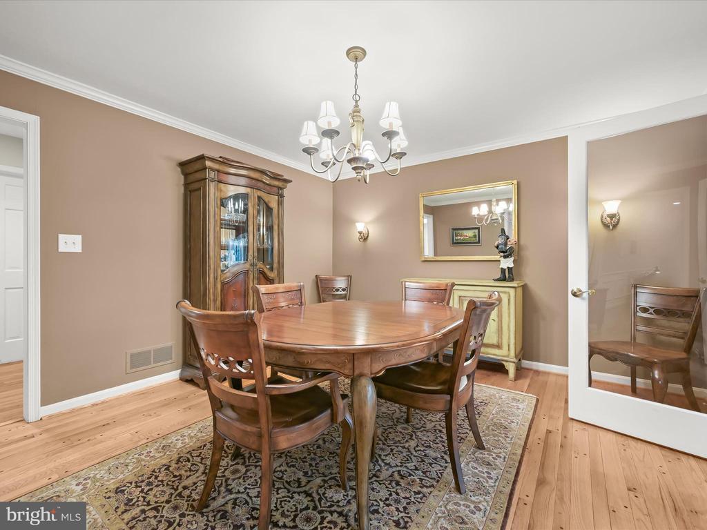 Introducing this extraordinary one-of-a-kind home tucked away in the sought-after Woodmark neighborhood in Ellicott City, offering a peaceful retreat on nearly an acre surrounded by mature trees. Featuring three bedrooms with four and a half bathrooms, this home has been thoughtfully updated inside and out, with meticulous attention to detail and timeless design. Beautifully manicured landscaping and a charming covered front porch create a warm welcome as you arrive. Inside, a soft color palette, sun-filled windows, and rich hardwood floors establish an inviting ambiance. Prepare your favorite meals in the gourmet eat-in kitchen that boasts granite countertops, a tile backsplash, lighted cabinetry, and a breakfast nook with a built-in desk station. Stainless steel appliances include a five-burner gas cooktop with telescopic downdraft, double wall ovens, and a Sub-Zero refrigerator replaced in 2024. A cozy wood-burning fireplace with brick surround anchors the elegant living room, enhanced by wainscoting, crown molding, and built-in shelving. French doors from the formal dining room open to an expansive family room with a soaring wood-beamed cathedral ceiling, skylights, and a stunning stacked-stone feature wall. Floor-to-ceiling windows frame peaceful views of the lush surroundings, creating an inspiring space for gathering or unwinding. This side of the home also includes a half bathroom and a laundry room with more storage and garage access. The main level hosts the primary bedroom suite with dual closets and sliding doors to a deck with a relaxing hot tub. The luxurious ensuite bathroom showcases a frameless glass shower with a rainfall showerhead and built-in bench. A second bedroom and a second full bathroom with a tub shower complete the main level. Upstairs, the top level is a private third bedroom suite with a walk-in closet and a spacious walk-in shower in the bathroom. Downstairs, the finished walk-out lower level extends the living area with a large recreation room featuring a gas fireplace and a wet bar, ideal for entertaining. A home office provides a quiet workspace and could serve as a fourth bedroom with an adjacent full bathroom that has a walk-in shower. A versatile bonus room with a walk-in closet offers space for a gym, playroom, another office, or creative studio. Ample storage abounds, including an expansive utility room and separate storage room. Outdoor living shines with a Tennessee flagstone patio perfect for barbecues or starlit evenings. Other recent updates include a new HVAC system (2025) and water heater (2024). Additional features such as outdoor lighting, a storage shed, and a two-car garage ideal for auto enthusiasts, complete this home. Nestled across from 28 acres of conserved woodlands and a scenic neighborhood pond down the street, this tranquil setting offers both natural beauty and a true sense of retreat.