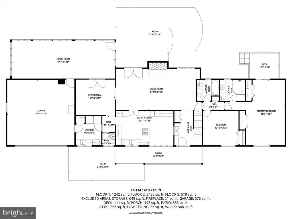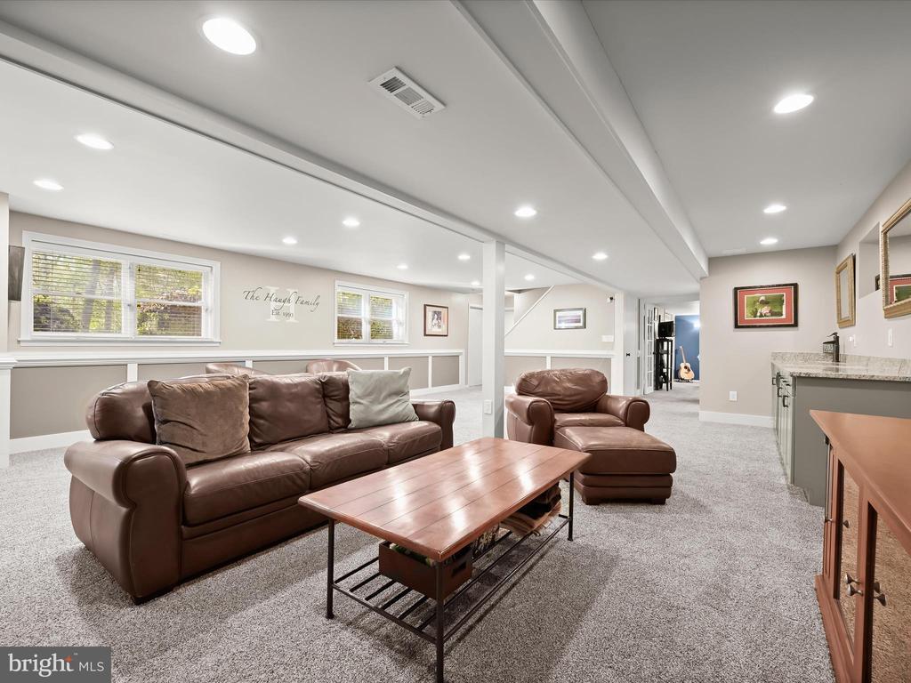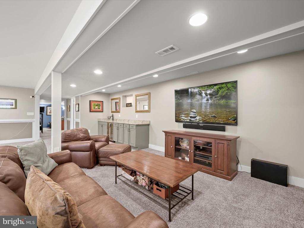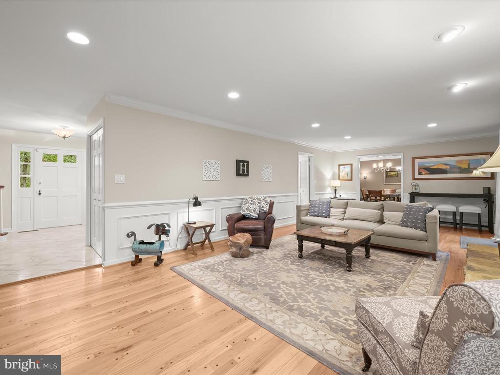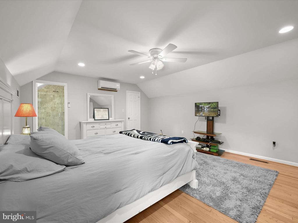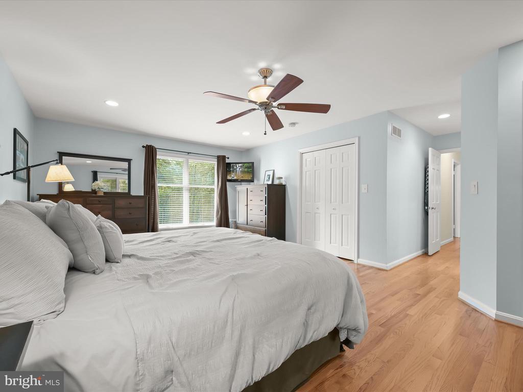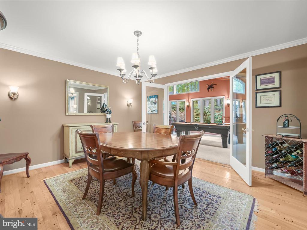 Introducing this extraordinary one-of-a-kind home tucked away in the sought-after Woodmark neighborhood in Ellicott City, offering a peaceful retreat on nearly an acre surrounded by mature trees. Featuring three bedrooms with four and a half bathrooms, this home has been thoughtfully updated inside and out, with meticulous attention to detail and timeless design. Beautifully manicured landscaping and a charming covered front porch create a warm welcome as you arrive. Inside, a soft color palette, sun-filled windows, and rich hardwood floors establish an inviting ambiance. Prepare your favorite meals in the gourmet eat-in kitchen that boasts granite countertops, a tile backsplash, lighted cabinetry, and a breakfast nook with a built-in desk station. Stainless steel appliances include a five-burner gas cooktop with telescopic downdraft, double wall ovens, and a Sub-Zero refrigerator replaced in 2024. A cozy wood-burning fireplace with brick surround anchors the elegant living room, enhanced by wainscoting, crown molding, and built-in shelving. French doors from the formal dining room open to an expansive family room with a soaring wood-beamed cathedral ceiling, skylights, and a stunning stacked-stone feature wall. Floor-to-ceiling windows frame peaceful views of the lush surroundings, creating an inspiring space for gathering or unwinding. This side of the home also includes a half bathroom and a laundry room with more storage and garage access. The main level hosts the primary bedroom suite with dual closets and sliding doors to a deck with a relaxing hot tub. The luxurious ensuite bathroom showcases a frameless glass shower with a rainfall showerhead and built-in bench. A second bedroom and a second full bathroom with a tub shower complete the main level. Upstairs, the top level is a private third bedroom suite with a walk-in closet and a spacious walk-in shower in the bathroom. Downstairs, the finished walk-out lower level extends the living area with a large recreation room featuring a gas fireplace and a wet bar, ideal for entertaining. A home office provides a quiet workspace and could serve as a fourth bedroom with an adjacent full bathroom that has a walk-in shower. A versatile bonus room with a walk-in closet offers space for a gym, playroom, another office, or creative studio. Ample storage abounds, including an expansive utility room and separate storage room. Outdoor living shines with a Tennessee flagstone patio perfect for barbecues or starlit evenings. Other recent updates include a new HVAC system (2025) and water heater (2024). Additional features such as outdoor lighting, a storage shed, and a two-car garage ideal for auto enthusiasts, complete this home. Nestled across from 28 acres of conserved woodlands and a scenic neighborhood pond down the street, this tranquil setting offers both natural beauty and a true sense of retreat.