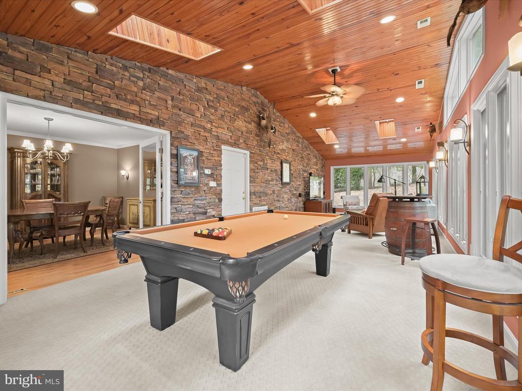 Attic, Bar, Tub Shower, Bathroom - Walk-In Shower, Built-Ins, Carpet, Cedar Closet(s), CeilngFan(s), Chair Railing, Crown Molding, Entry Lvl BR, Formal/Separate Dining Room, Pantry, Master Bath(s), Recessed Lighting, Skylight(s), Upgraded Countertops, Wainscotting, Water Treat System, Wet Bar/Bar, Shades/Blinds, Wood Floors