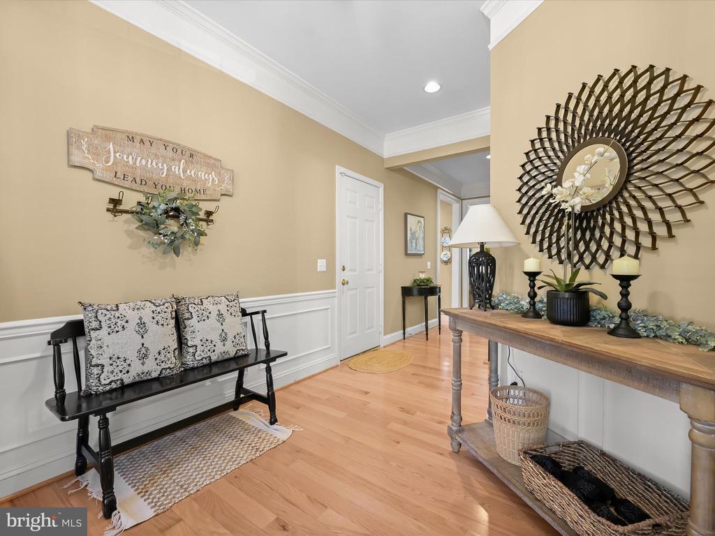 This beautifully appointed three-level brick-front townhome combines timeless design with a sought-after Ellicott City location. Set against a peaceful backdrop of mature trees, this residence offers the perfect balance of comfort, functionality, and convenience. A welcoming foyer opens to a spacious living room filled with natural light from the atrium door and transom window above. Elegant details such as crown molding, box wainscoting, and gleaming hardwood flooring flow throughout the main level, creating a cohesive and polished look. The separate dining room connects seamlessly to both the living area and kitchen, an ideal setup for entertaining or everyday living. The kitchen blends style and practicality with white cabinetry featuring roll-out shelves, granite countertops, stainless steel appliances including a gas range, and a pantry for additional storage. From casual breakfasts to evening gatherings, this space effortlessly adapts to any occasion. Upstairs, three inviting bedrooms each boast vaulted ceilings that enhance their open, airy feel. The primary suite offers a walk-in closet complete with a built-in organization system and a private bath with a skylight, double sink vanity, soaking tub, and separate shower. Two additional bedrooms share a full hall bath, while the conveniently located upper-level laundry room adds everyday ease. The lower level expands the living space with a sprawling family room featuring a cozy fireplace and wet bar, perfect for movie nights or hosting guests. A half bath and a utility room with storage complete this versatile level. Step outside to enjoy a serene backyard area that backs to trees, offering a peaceful retreat for outdoor relaxation. Additional highlights include a one-car garage with a driveway and nearby guest parking. The prime location places you just minutes from shopping, dining, and entertainment, as well as major commuter routes including US-29, I-70, I-95, and MD-100. Howard County schools, the Meadowbrook Athletic Complex, and the scenic trails of Patapsco Valley State Park are all nearby. Explore the charm of Old Ellicott City with its boutique shops, inviting restaurants, and year-round community events, all just a short drive away. Blending thoughtful updates with an unbeatable setting, this townhome offers the lifestyle and location you’ve been looking for.