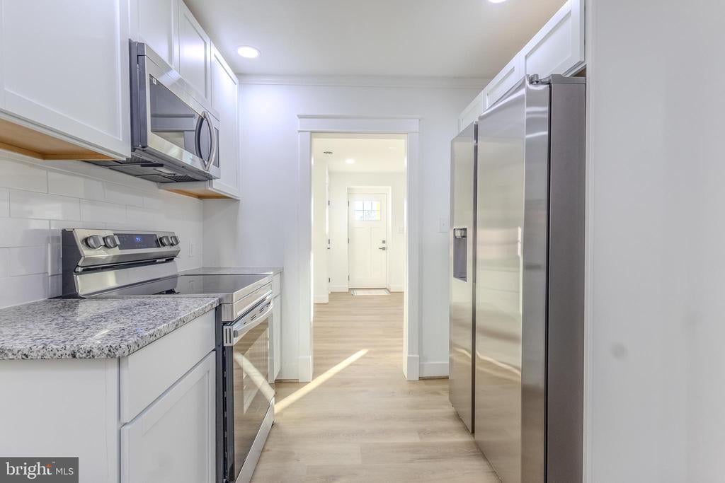 Welcome Home to 6109 Downs Avenue! This beautifully and newly renovated home combines modern comfort with unbeatable convenience. Step inside to discover a brand-new, light filled kitchen featuring granite countertops, stainless steel appliances, and fresh new cabinetry that make cooking and entertaining a delight. The home’s open and efficient layout is enhanced by all new flooring throughout, creating a seamless flow from room to room. The newly updated bathroom showcases elegant ceramic tile and stylish finishes. Don't worry about exterior maintenance as it has a NEW roof which will provide you peace of mind for years to come. Storage is plentiful in the fully walkable and conditioned attic space, as well as the separate laundry room/pantry area/mudroom, with a conveniently located front load washer and dryer! Just in time to enjoy the fall with some warm cider on your private and spacious back porch. This home truly lives large with its bright natural light, thoughtful renovations, and move-in-ready condition — perfect for first-time buyers, downsizers, or anyone seeking low-maintenance living. Located in the sought-after Elkridge community, you’ll love being close to major commuter routes (I-95, Route 1, and 100), DC, Baltimore, Arundel Mills, BWI Airport, Fort Meade, Annapolis, Howard County schools, and a variety of shops, parks, and dining options. Enjoy the charm of a well-established neighborhood with the convenience of basically everything you'd need or want just minutes away. Don’t miss this turnkey opportunity — modern updates, luxury touches and renovations, prime location, and incredible value all in one! (fireplace and shed sold as-is)