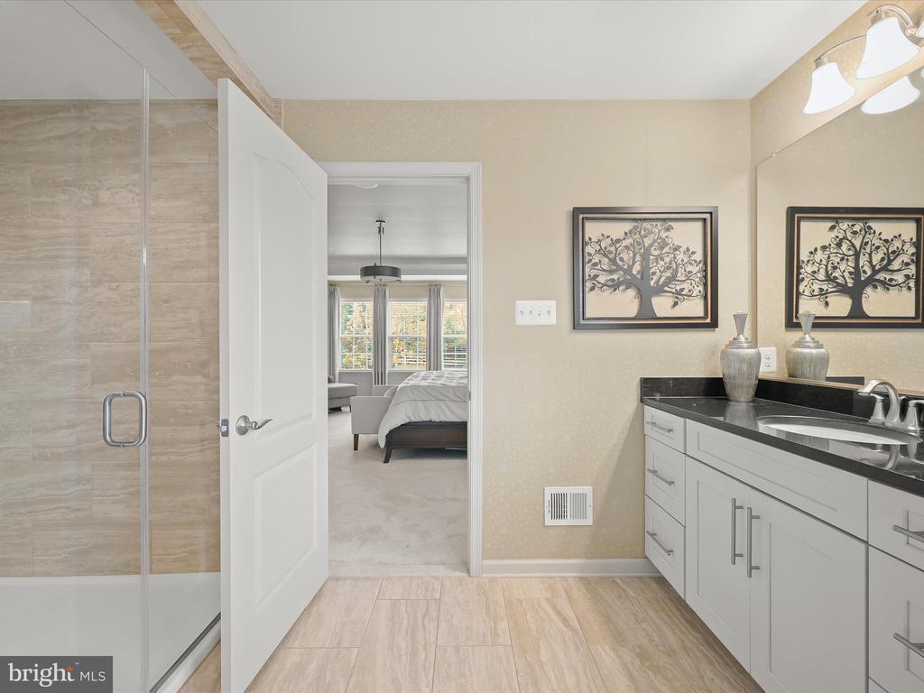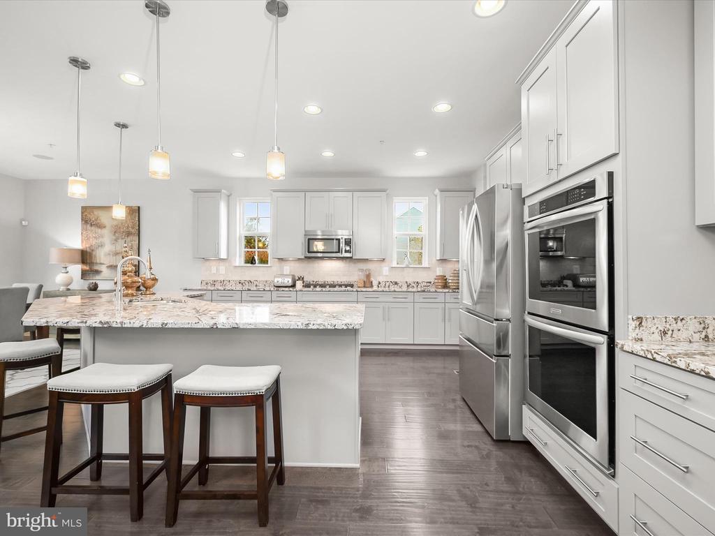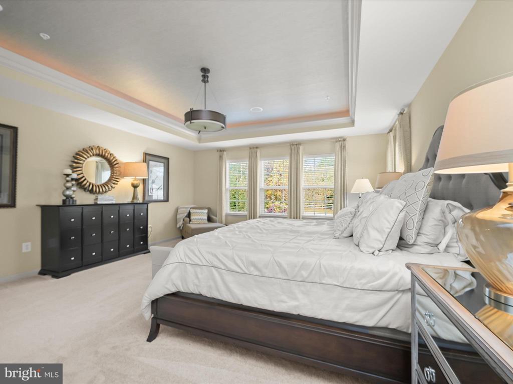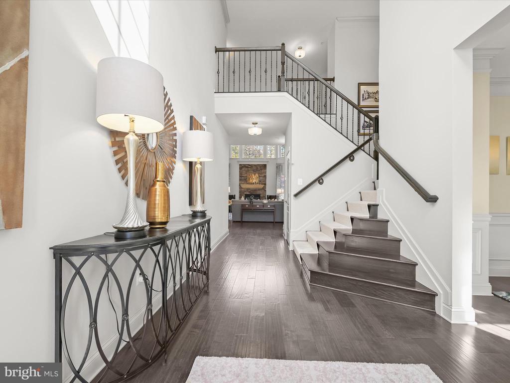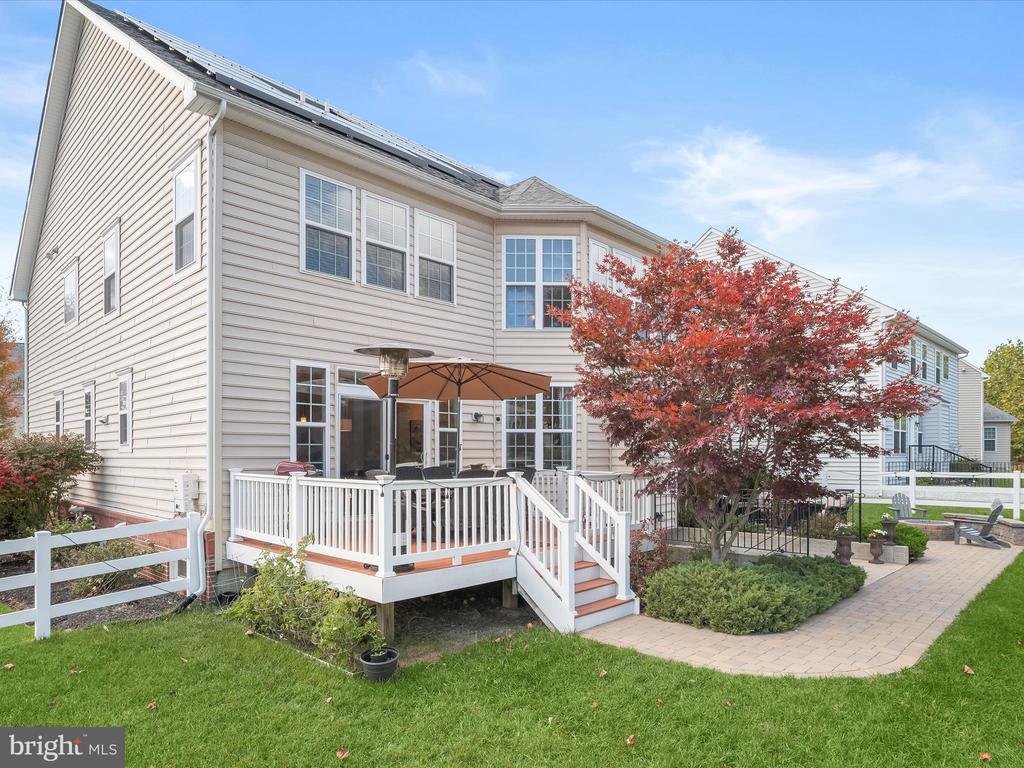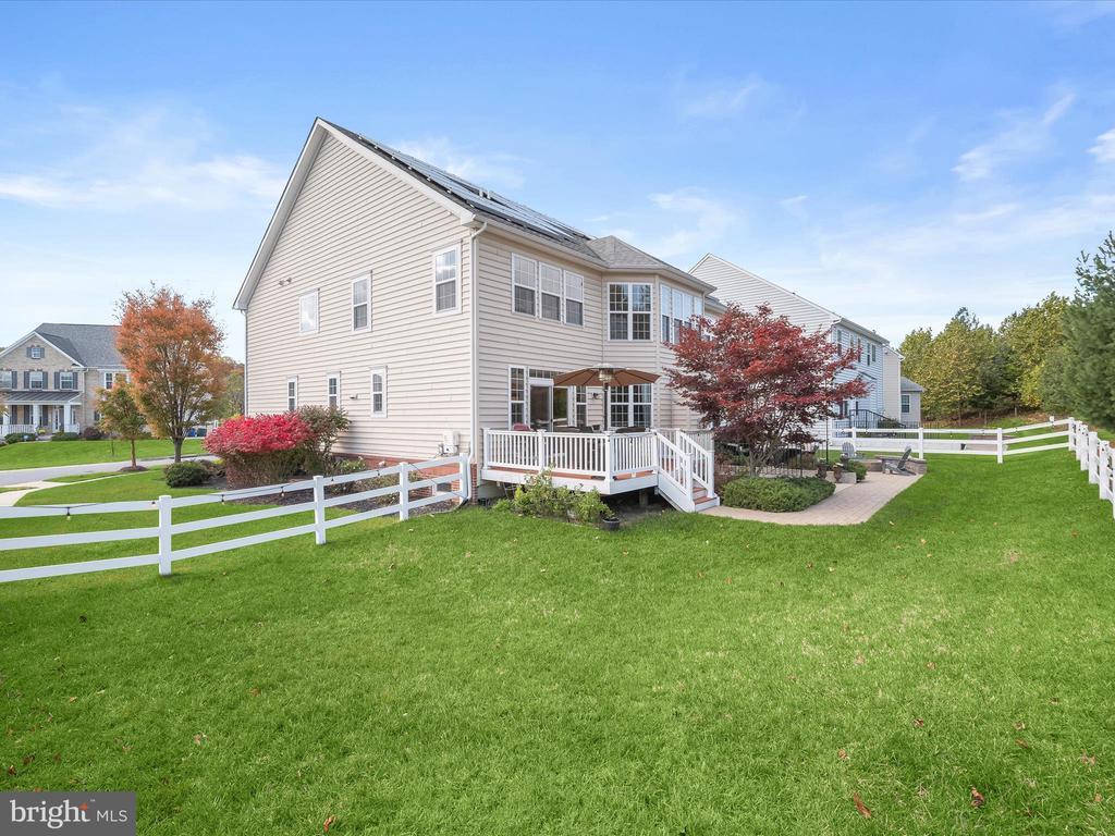 Former Beazer Federalsburg Model—the flagship home of Centennial Lake Overlook—this stunning LEED Silver Certified residence combines luxury, sustainability, and comfort in one exceptional package. Enjoy a transferrable contract with low cost of electricity with solar panels from SunRun, and receive a rebate from BGE when the panels generate more electricity than you use. Energy-efficient low-emissivity windows, insulated doors, and a Nest thermostat enhance year-round comfort. Enjoy a low cost of electricity with solar panels from SunRun, and receive a rebate from BGE when the panels generate more electricity than you use. The elegant two-story foyer and open staircase set the tone for a home rich in architectural detail—9-foot ceilings, crown molding, upgraded designer lighting, and engineered wood floors flow throughout the main level. The gourmet kitchen boasts stainless steel appliances, upgraded granite countertops, a walk-in and butler’s pantry, and a family room bump-out anchored by a gas fireplace with a striking stone surround and clerestory windows. Offering six ensuite bedrooms and five full baths, including a main-level ensuite and a lower level ensuite, this home accommodates every lifestyle. The luxurious primary suite features cove lighting, a tray ceiling, and a spa-inspired bath with six body spray heads. The fully finished lower level includes a bonus exercise room and extra-wide walk-up stairs for easy access to the professionally landscaped backyard oasis—complete with a paver patio, fire pit, paver walks, and garden walls. Low maintenance features include a composite deck and vinyl clad board fences rear yard. Additional amenities include EV-ready garage wiring with ceiling storage racks, upgraded plush carpet (2025), dual staircases, prewiring for speakers and ethernet. Ideally sited on a cul-de-sac corner lot with community sidewalks, this former model home blends efficiency, elegance, and everyday luxury.