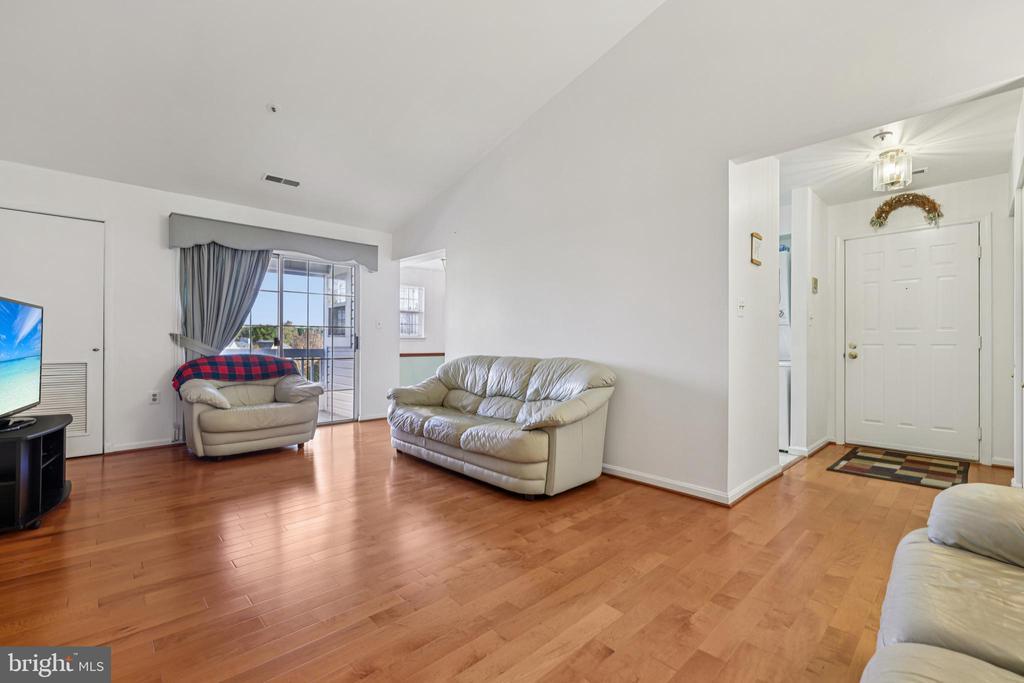 Come see this great 3 bedroom, 2 full bathroom condo in highly sought after Montgomery Run! This unit is on the TOP floor with vaulted ceilings, so it's quiet, since no one is above you! There is plenty of room with 1,157 square feet of living space, PLUS a great balcony to sit and enjoy your morning coffee. Other features include: hardwood floors throughout, except the kitchen has ceramic tiles, new refrigerator, stove and stackable washer/dryer. The guest bath has been remodeled too. The kitchen is complete with white cabinets, built-in microwave, and granite countertops. The dining room is a nice size and houses a 2nd refrigerator that will convey to the new owner. This leads you to the main living area/family room, which is very generously sized and has vaulted ceilings, which makes it feel even larger. Then down the hallway is where you will find the 3 bedrooms and two full bathrooms, one being the primary bathroom attached to the primary bedroom with vaulted ceilings as well. The condo fee covers the many amenities listed below, plus the WATER bill, and 1- assigned parking space and there are also plenty of open spots for guests. Montgomery Run is full of community amenities, including an in-ground pool, a community center, hiking trails, and tot lot. There are also two parks close by: Blandair Regional Park and Rockburn Branch Park. Easy access to MD-100, US-29, I-70, I-95, BWI, NSA, Ft. Meade, DC and Baltimore. The seller prefers to sell "As Is". Check out the virtual tour!