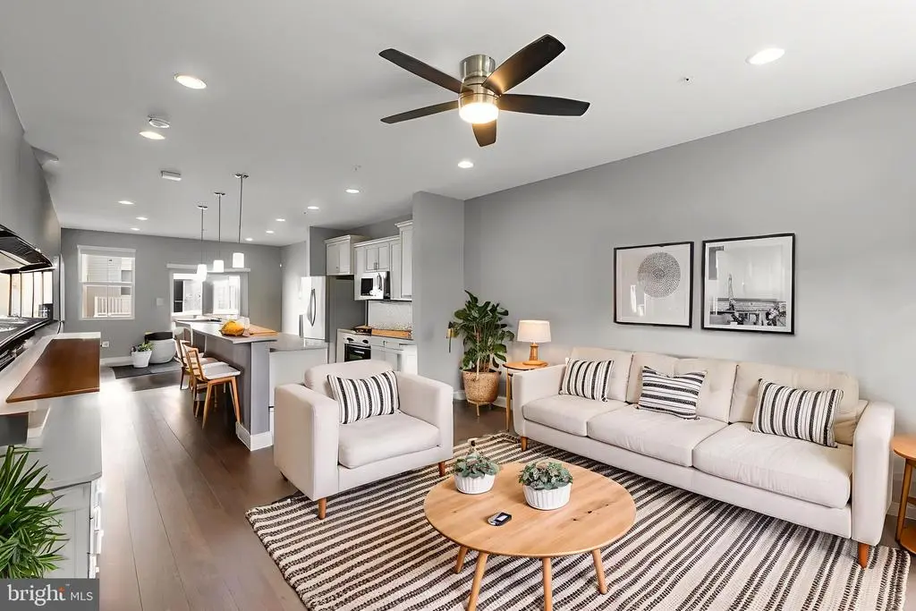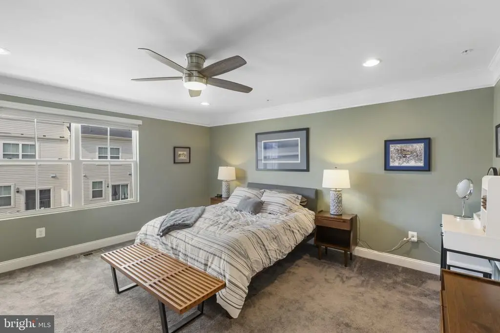 Welcome home to this stunning LEED-certified 4-bedroom, 4.5-bath townhouse offering four levels of beautifully designed living space in a quiet corner of the highly sought-after Oxford Square community—a neighborhood built for active lifestyles, with open green spaces and exceptional amenities including a swimming pool, fitness center, and more. Perfectly located for commuters, you’re just minutes from Ft. Meade, I-95, I-295, the Dorsey MARC station, and BWI Airport. Step inside to the welcoming entry level from either the scenic wooded front walkway or through the personal door to the one-car garage—featuring extra square footage, and custom-installed overhead storage. Here you’ll find a private bedroom with its own custom closet and en-suite bath that also includes a hallway door, making it ideal for guests, in-laws, or a home office. A well-organized laundry/mudroom with built-in custom storage (2022) completes this level. On the open-concept main floor, enjoy a chef’s kitchen with stainless steel appliances (including a new dishwasher – 2024), gas range, granite countertops, light cabinetry, a large island with seating, and a custom-organized pantry. The spacious dining area flows seamlessly to a maintenance-free deck—perfect for relaxing or entertaining. The third level offers a luxurious primary suite with two custom closets and a spa-like en-suite bath, along with an additional bedroom that also features its own en-suite bath and custom closet. On the top floor, you’ll find a sunny and versatile loft level with a full bedroom—including a walk-in closet—an additional full bath, and a flex room that works beautifully as a den, playroom, home gym, or second living area. This level also opens to a private rooftop deck—your own quiet retreat above it all. Additional updates include new carpet (2022), ceiling fans (2022), custom closet systems (2022) in three bedrooms, pantry, and laundry, updated blinds (2019), and fresh interior paint throughout the home (2022). This home is within walking distance of Hanover Hills Elementary School and Thomas Viaduct Middle School. With its thoughtful design, modern upgrades, and access to amazing community amenities, this home is the perfect combination of comfort, convenience, and lifestyle. Don’t miss your chance to make it yours!