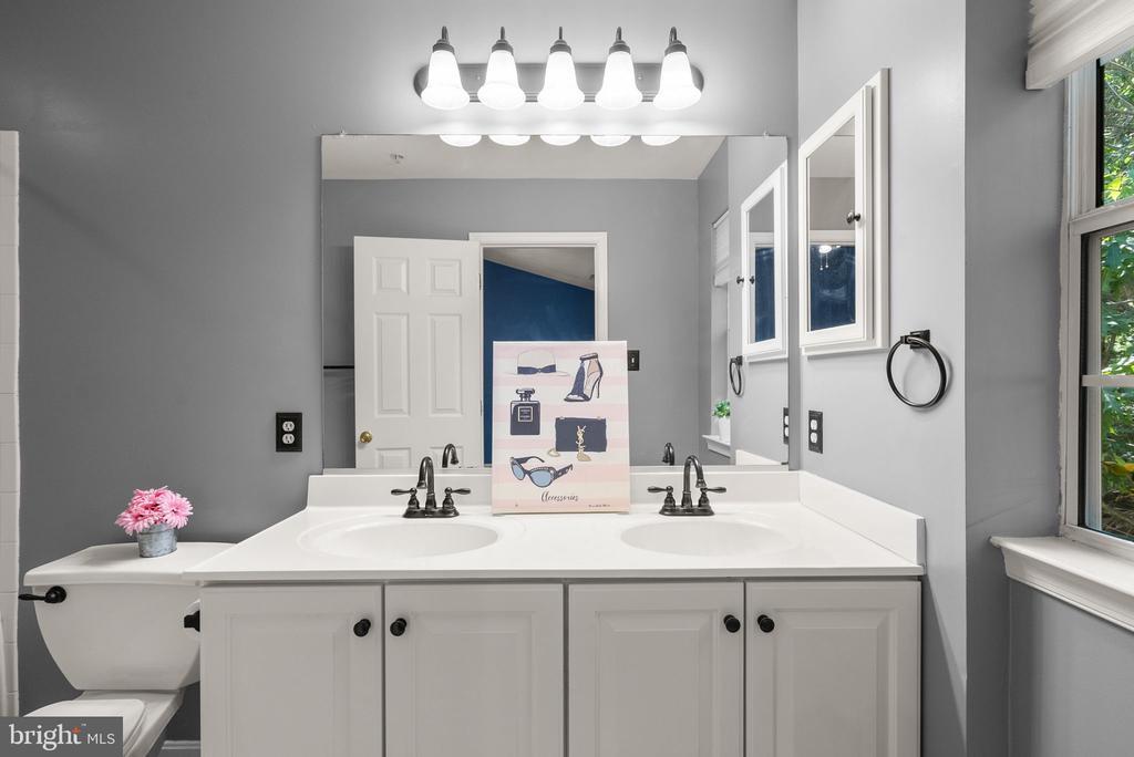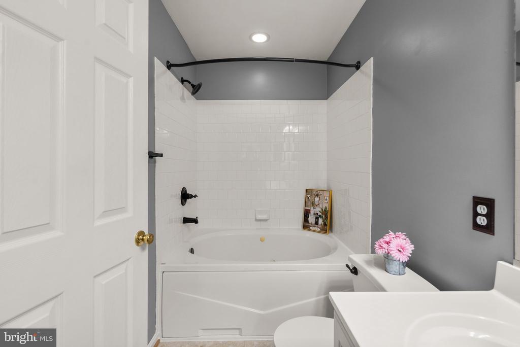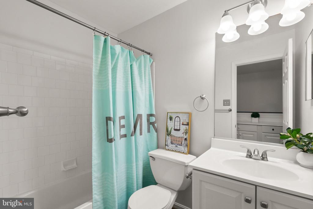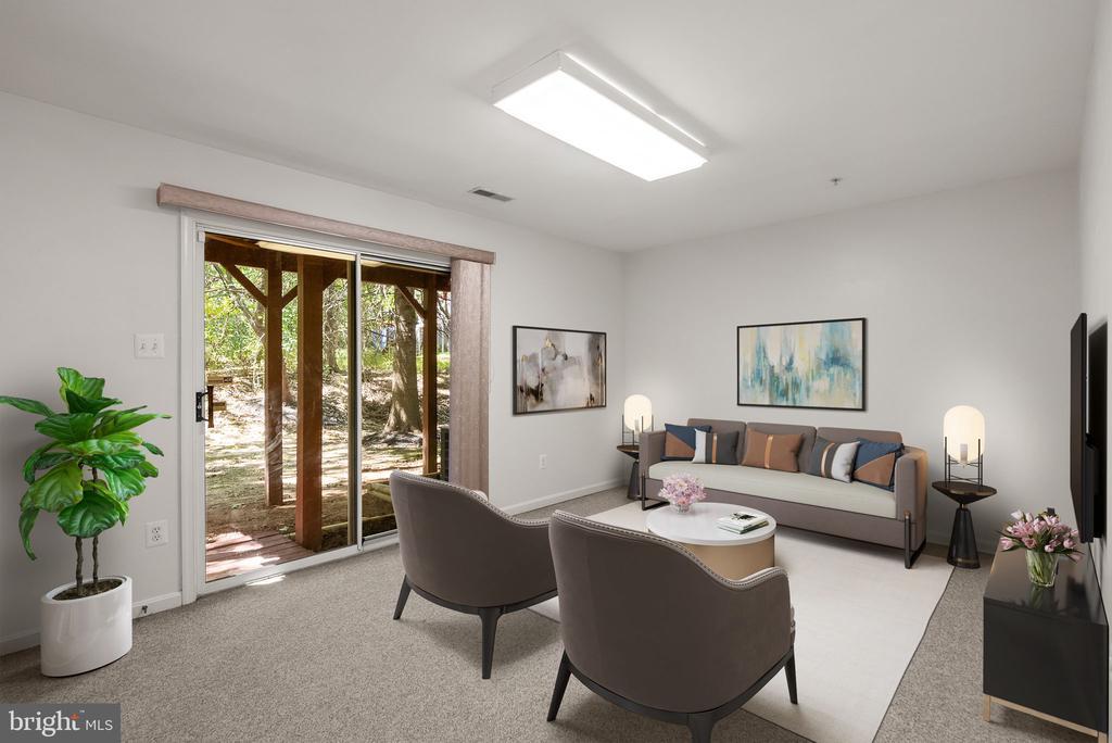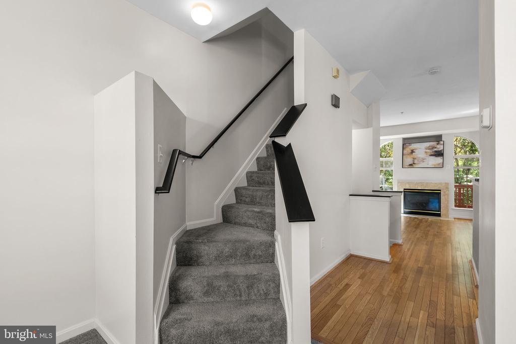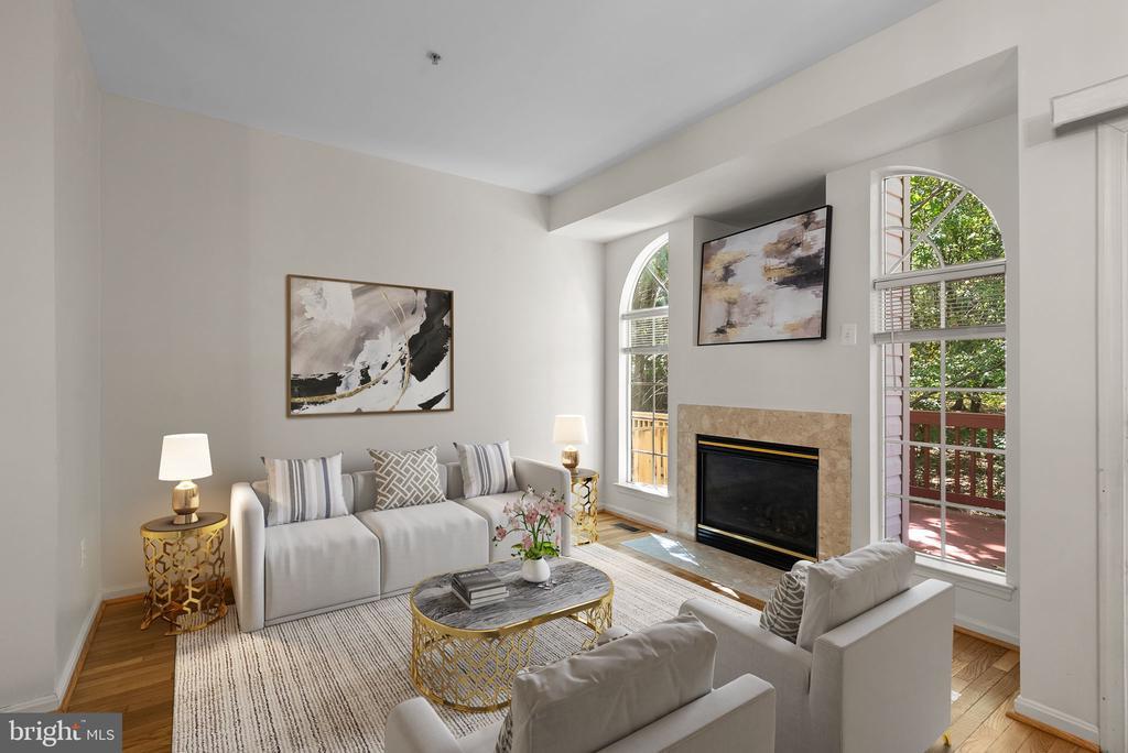 This charming townhouse residence offers 1,772 square feet, 3 bedrooms, 2 full baths, 1 half bath, and a 1-car garage in the sought-after community of The Sanctuary. The fully finished walkout entry level welcomes you with a foyer, providing garage access and a powder room. A spacious recreation room on this level is ideal for an additional lounge or media space and includes access to the backyard, laundry facilities, and extra storage. The open-concept main level is designed for both comfort and entertaining, featuring gleaming floors throughout. The family room is anchored by a cozy fireplace, while the dining area is enhanced by a chandelier and sliding glass doors that open to the deck. The kitchen is stylish and functional, offering a breakfast bar, stainless steel appliances, crisp white cabinetry, generous counter-space, and a pass-through window with views of the bright and spacious living room. Here, plush carpet and sunlit bay windows create a warm and inviting atmosphere. Upstairs, carpet continues throughout the hallway and bedrooms. A convenient hallway cabinet and counter provide additional storage. The upper level hosts three bedrooms, including the expansive primary suite with a soaring vaulted ceiling, a walk-in closet, and a private bath featuring a dual-sink vanity. A second full bathroom is conveniently located in the hallway to serve the other bedrooms. Outdoor living is equally enjoyable, with a deck perfect for dining al fresco. The backyard backs to a peaceful, tree-lined area, creating a tranquil setting.