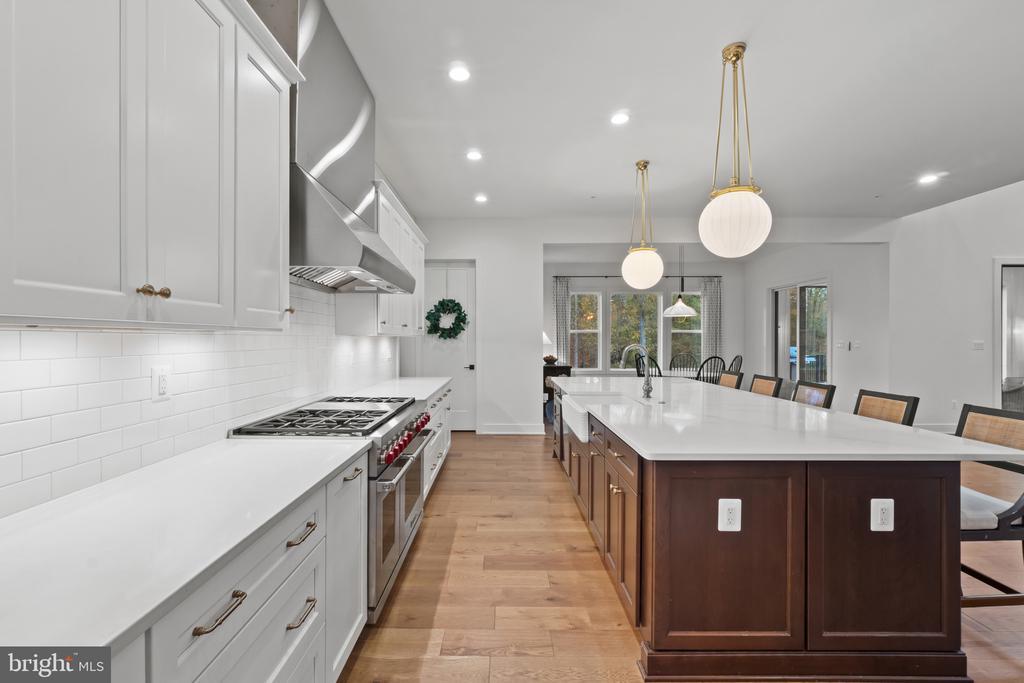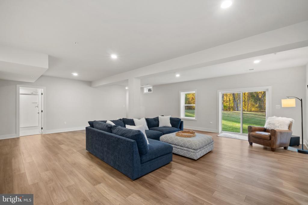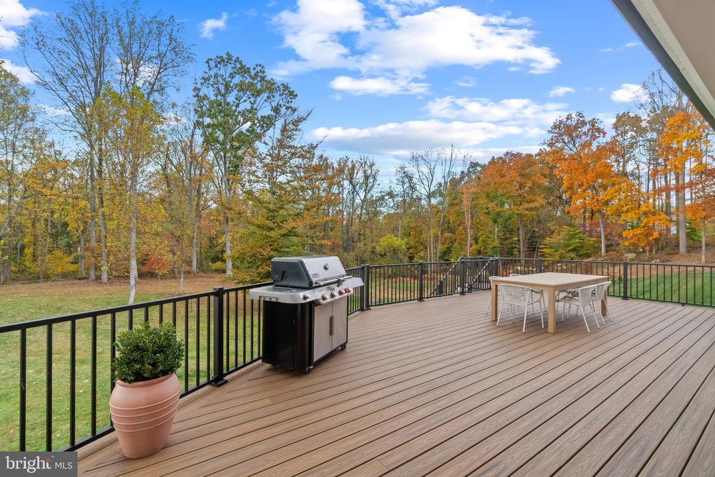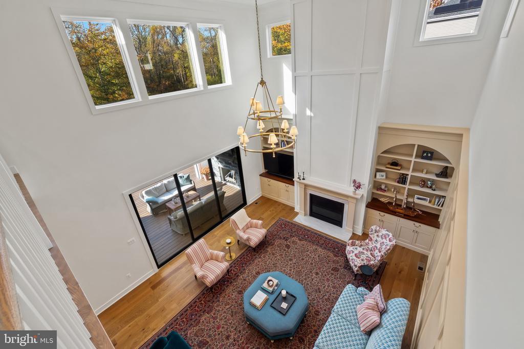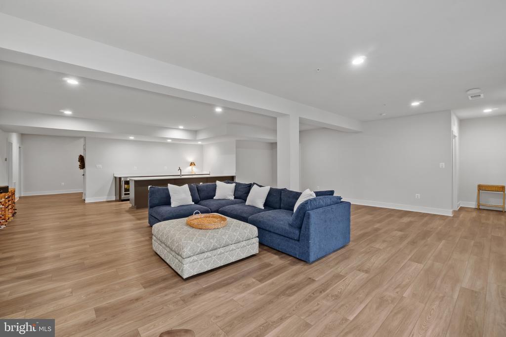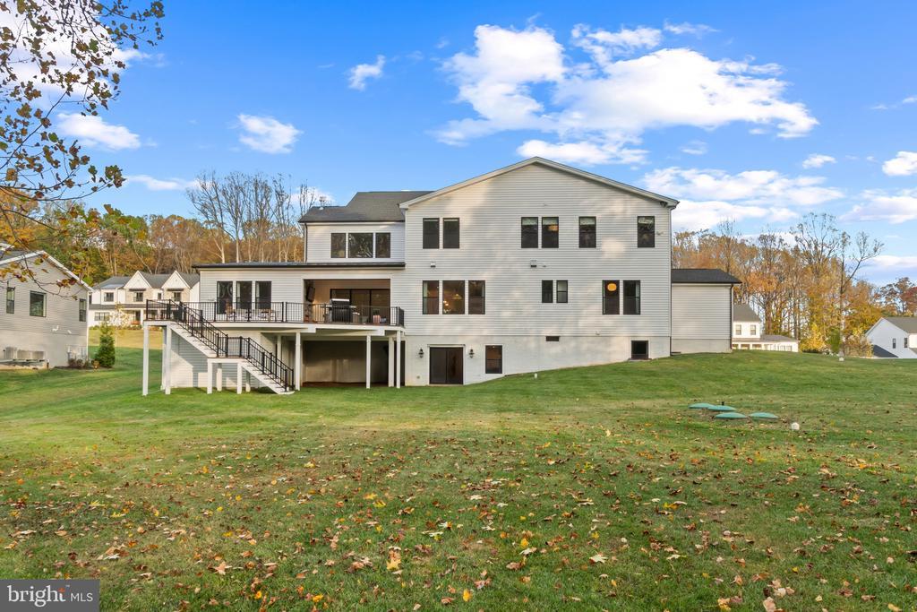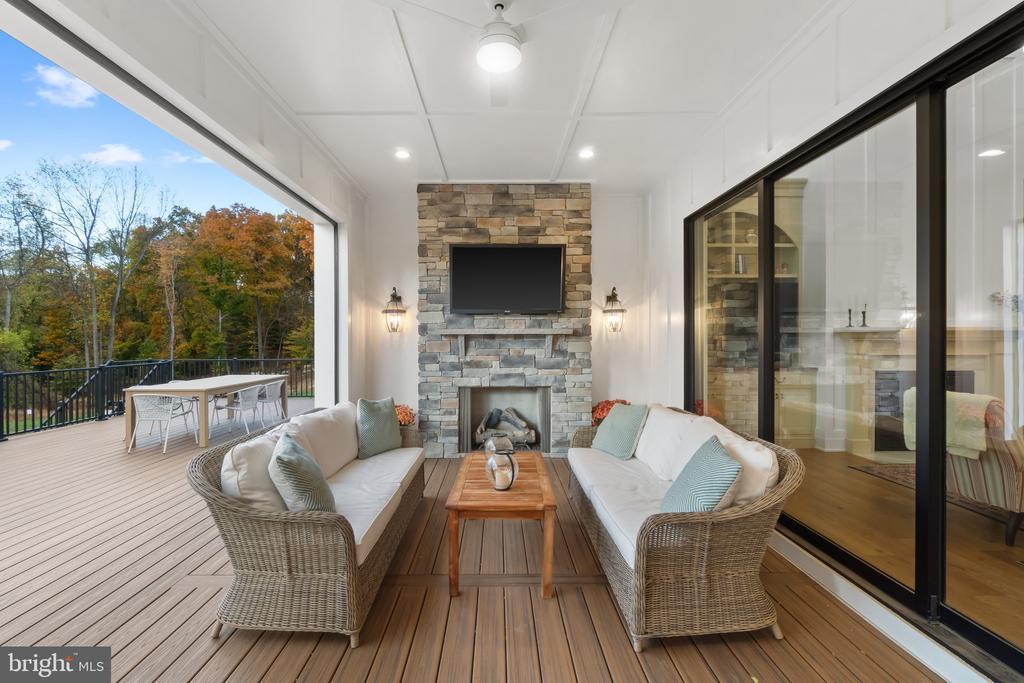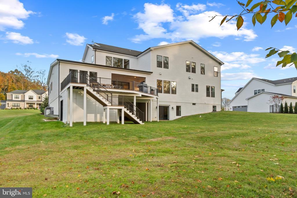 This magnificent residence spans over 8,316 finished square feet, showcasing exceptional craftsmanship, sophisticated design, and luxurious finishes throughout. Every room exudes elegance, with engineered hardwood floors, custom millwork, and expansive windows that fill the home with natural light. The open layout blends function and beauty, creating a seamless flow for both everyday living and grand entertaining. Extensively upgraded for comfort and convenience, the home includes a whole-house water filtration system, acid neutralizer, iron handler softener, and wireless access points throughout. Additional enhancements include designer lighting, premium vanities, custom tile, and high-end plumbing fixtures, elevating the home’s refined aesthetic. The grand foyer opens to a formal dining room with wall sconces and a sparkling chandelier, while French doors across the hall reveal a private study. The great room impresses with two-story ceilings, multi-panel stacking doors, and a gas fireplace with a wood mantel and marble surround, framed by custom built-ins. This space connects effortlessly to the screened porch and deck, ideal for indoor-outdoor entertaining. The gourmet kitchen is a chef’s dream, featuring stainless steel appliances, including a Wolf six-burner cooktop, dual-fuel range with touch-screen controls and an infrared griddle, and a 48” Sub-Zero refrigerator. A walk-in pantry and butler’s pantry provide generous storage, while Silestone quartz countertops, floor-to-ceiling subway tile, and a central oversized island with pendant lighting and breakfast bar seating anchor the space. White perimeter cabinetry with under-cabinet lighting contrasts beautifully with the warm walnut-colored island, and a sunlit breakfast area completes the kitchen. A multi-generational suite with a private front entrance offers a living room, bedroom with a walk-in closet, and a spa-like full bath with dual vanities, a freestanding soaking tub, and a glass shower, plus a laundry room with hookups. A main-level bedroom or bonus room provides additional flexibility, complete with a dual vanity en suite bath and walk-in closet. The level also features a powder room with a Toto bidet. Finally, a spacious with mudroom with adjoining walk-in closet provides access to the Wi-Fi-enabled garage. Upstairs, a loft with built-in bookcases serves as a cozy lounge or library. The primary suite offers plush carpeting, custom blackout shades, and a large walk-in closet. The spa-inspired bathroom includes a glass steam shower with rain and handheld shower heads, herringbone tile floors, dual Calacatta marble vanities, a freestanding soaking tub, a bidet, and dual towel warmer. Each of the three secondary bedrooms on this level has an en suite bathroom and walk-in closet. The uppermost level provides flexible finished space with luxury vinyl plank flooring, a half bath, and a storage room, perfect for an additional bedroom, office, playroom, or recreation area. The finished walk-out lower level offers a large open space with a wet bar, a beverage refrigerator, dishwasher, a full bathroom, and a bedroom with a walk-in closet, ideal for a gym, guest suite, or hobby room. Two utility rooms and a storage area complete this remarkable home, where every detail has been designed with style, comfort, and sophistication in mind. Outdoor living is elevated with a covered deck that seamlessly converts to a screened-in porch using a retractable remote-controlled screen, complete with a stone gas fireplace and ceiling fan for year-round comfort. A custom Trex deck extension expands the entertaining space, and a shed beneath the deck adds practical storage without compromising style.