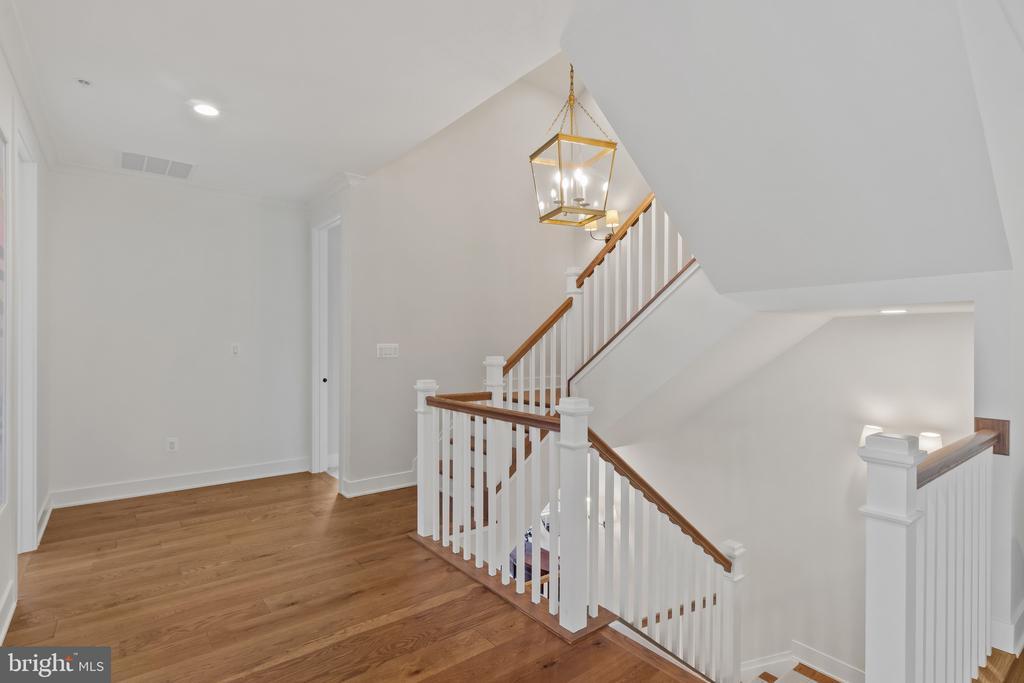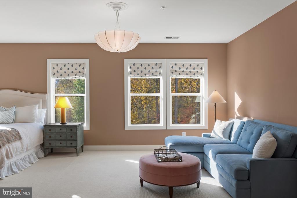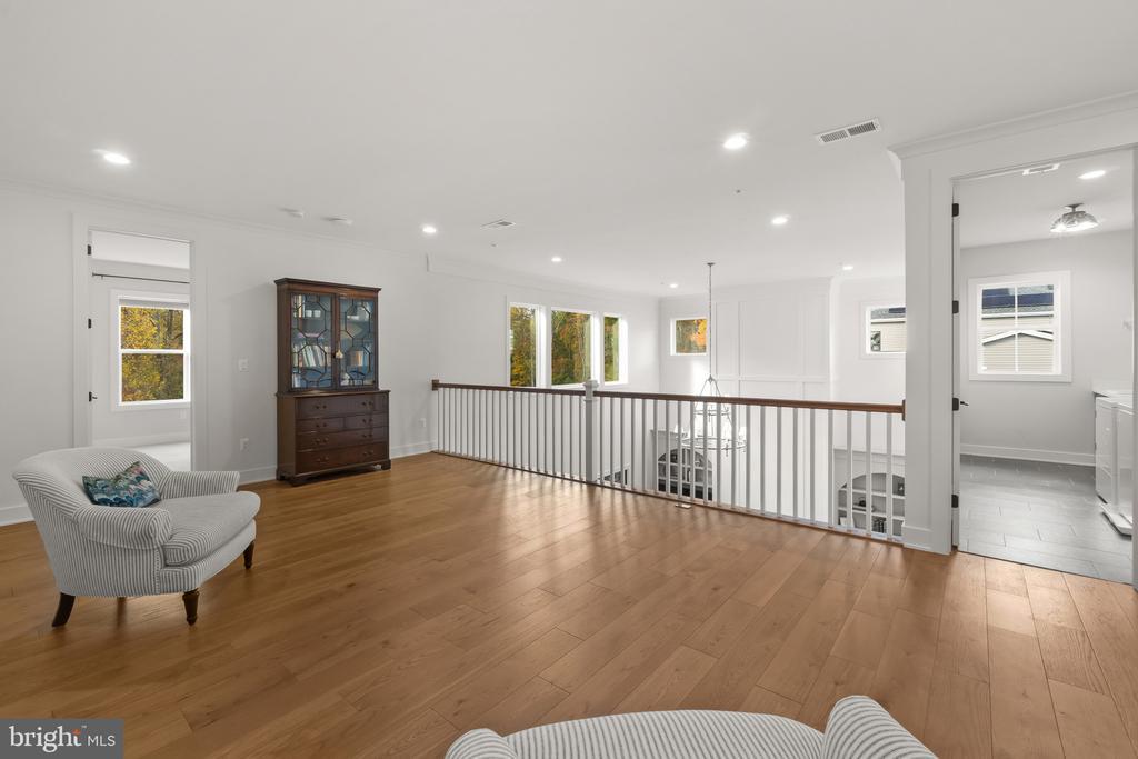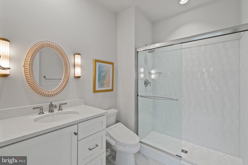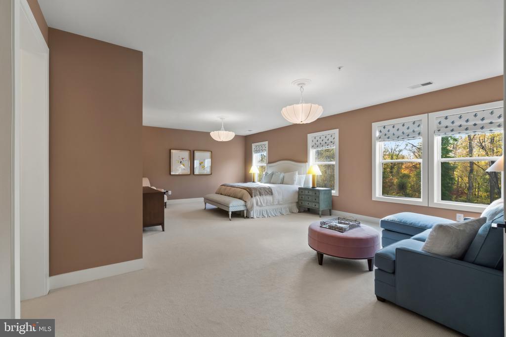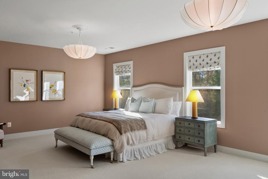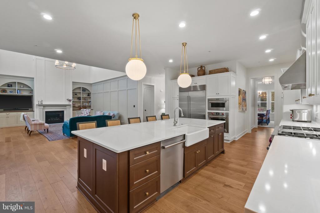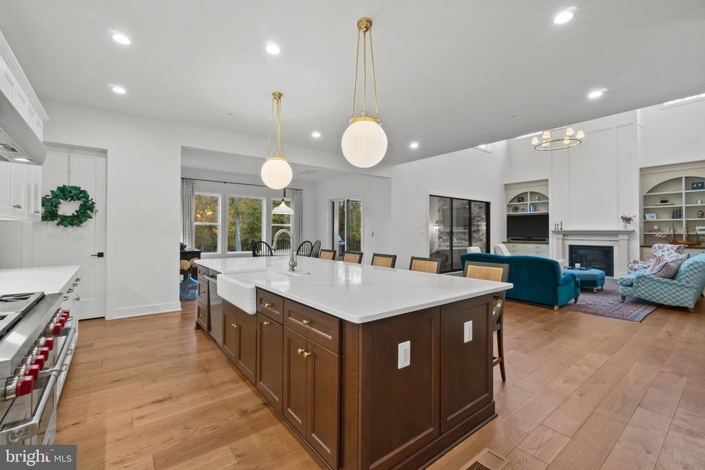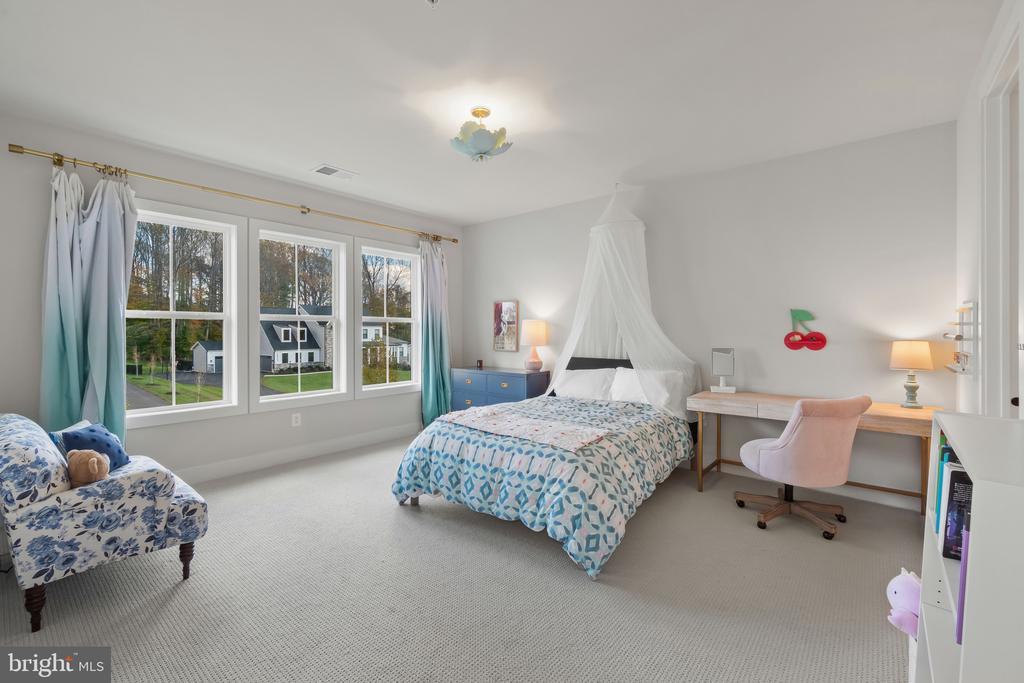This magnificent residence spans over 8,316 finished square feet, showcasing exceptional craftsmanship, sophisticated design, and luxurious finishes throughout. Every room exudes elegance, with engineered hardwood floors, custom millwork, and expansive windows that fill the home with natural light. The open layout blends function and beauty, creating a seamless flow for both everyday living and grand entertaining. Extensively upgraded for comfort and convenience, the home includes a whole-house water filtration system, acid neutralizer, iron handler softener, and wireless access points throughout. Additional enhancements include designer lighting, premium vanities, custom tile, and high-end plumbing fixtures, elevating the home’s refined aesthetic. The grand foyer opens to a formal dining room with wall sconces and a sparkling chandelier, while French doors across the hall reveal a private study. The great room impresses with two-story ceilings, multi-panel stacking doors, and a gas fireplace with a wood mantel and marble surround, framed by custom built-ins. This space connects effortlessly to the screened porch and deck, ideal for indoor-outdoor entertaining. The gourmet kitchen is a chef’s dream, featuring stainless steel appliances, including a Wolf six-burner cooktop, dual-fuel range with touch-screen controls and an infrared griddle, and a 48” Sub-Zero refrigerator. A walk-in pantry and butler’s pantry provide generous storage, while Silestone quartz countertops, floor-to-ceiling subway tile, and a central oversized island with pendant lighting and breakfast bar seating anchor the space. White perimeter cabinetry with under-cabinet lighting contrasts beautifully with the warm walnut-colored island, and a sunlit breakfast area completes the kitchen. A multi-generational suite with a private front entrance offers a living room, bedroom with a walk-in closet, and a spa-like full bath with dual vanities, a freestanding soaking tub, and a glass shower, plus a laundry room with hookups. A main-level bedroom or bonus room provides additional flexibility, complete with a dual vanity en suite bath and walk-in closet. The level also features a powder room with a Toto bidet. Finally, a spacious with mudroom with adjoining walk-in closet provides access to the Wi-Fi-enabled garage. Upstairs, a loft with built-in bookcases serves as a cozy lounge or library. The primary suite offers plush carpeting, custom blackout shades, and a large walk-in closet. The spa-inspired bathroom includes a glass steam shower with rain and handheld shower heads, herringbone tile floors, dual Calacatta marble vanities, a freestanding soaking tub, a bidet, and dual towel warmer. Each of the three secondary bedrooms on this level has an en suite bathroom and walk-in closet. The uppermost level provides flexible finished space with luxury vinyl plank flooring, a half bath, and a storage room, perfect for an additional bedroom, office, playroom, or recreation area. The finished walk-out lower level offers a large open space with a wet bar, a beverage refrigerator, dishwasher, a full bathroom, and a bedroom with a walk-in closet, ideal for a gym, guest suite, or hobby room. Two utility rooms and a storage area complete this remarkable home, where every detail has been designed with style, comfort, and sophistication in mind. Outdoor living is elevated with a covered deck that seamlessly converts to a screened-in porch using a retractable remote-controlled screen, complete with a stone gas fireplace and ceiling fan for year-round comfort. A custom Trex deck extension expands the entertaining space, and a shed beneath the deck adds practical storage without compromising style.