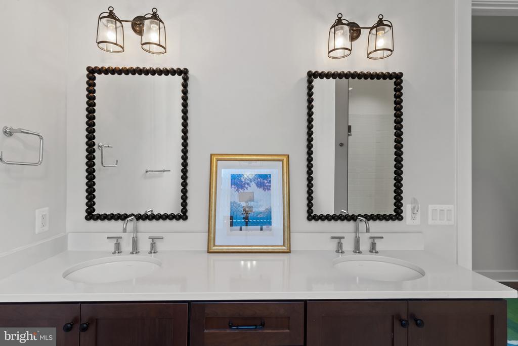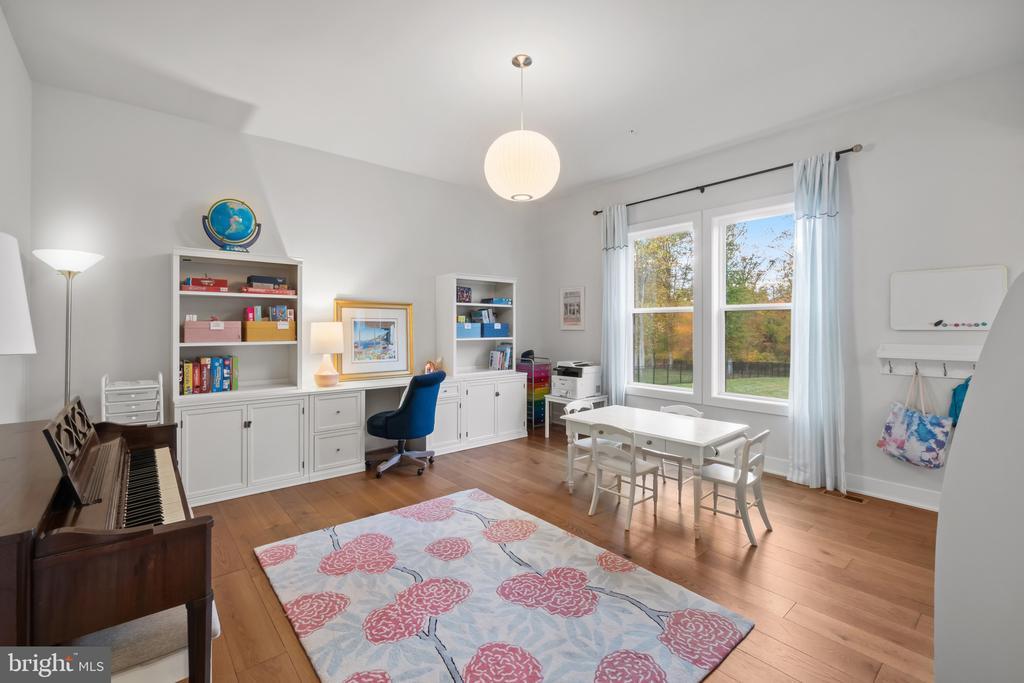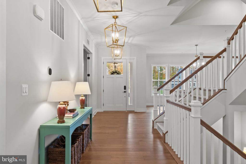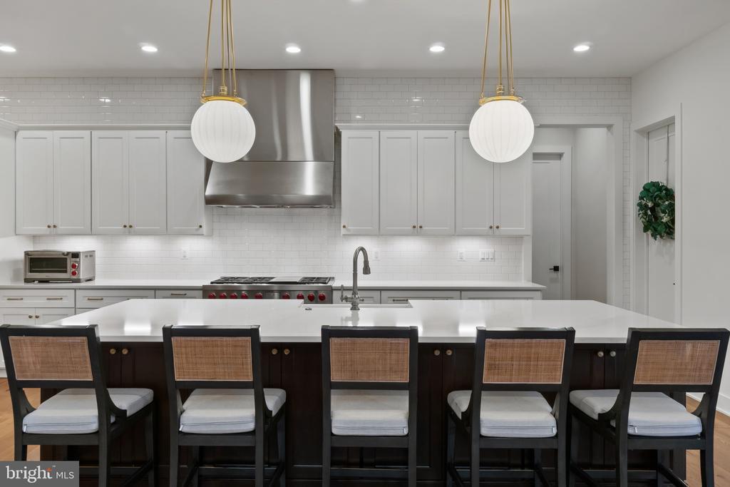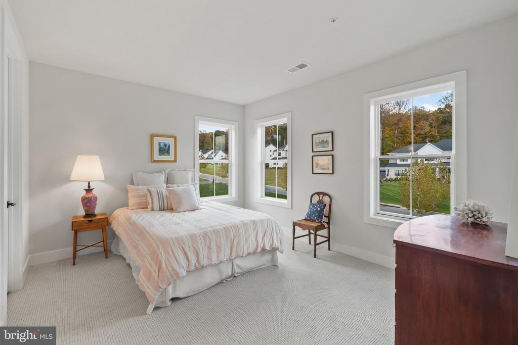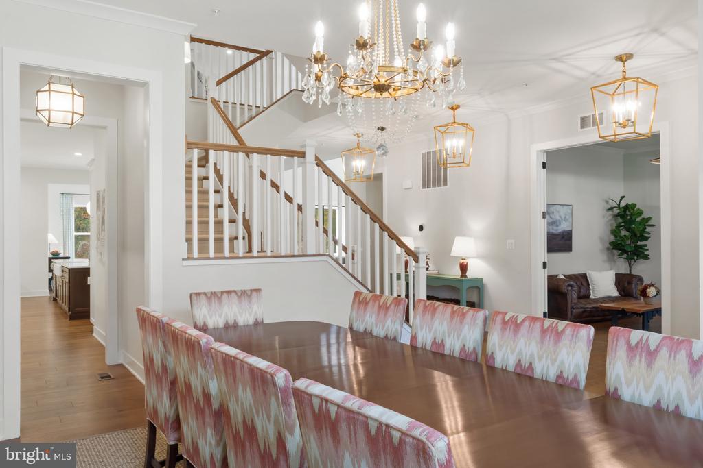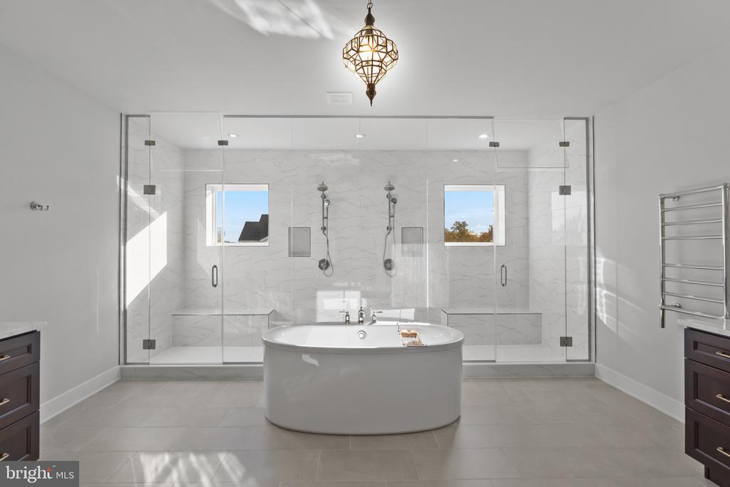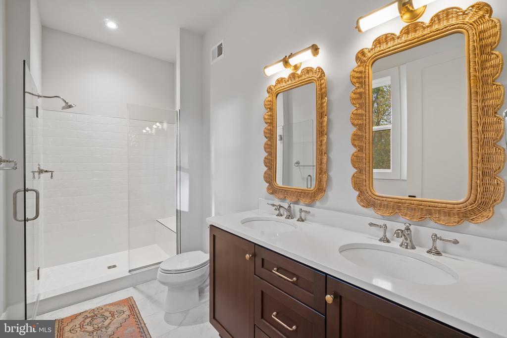 This magnificent residence spans over 8,316 finished square feet, showcasing exceptional craftsmanship, sophisticated design, and luxurious finishes throughout. Every room exudes elegance, with engineered hardwood floors, custom millwork, and expansive windows that fill the home with natural light. The open layout blends function and beauty, creating a seamless flow for both everyday living and grand entertaining. Extensively upgraded for comfort and convenience, the home includes a whole-house water filtration system, acid neutralizer, iron handler softener, and wireless access points throughout. Additional enhancements include designer lighting, premium vanities, custom tile, and high-end plumbing fixtures, elevating the home’s refined aesthetic. The grand foyer opens to a formal dining room with wall sconces and a sparkling chandelier, while French doors across the hall reveal a private study. The great room impresses with two-story ceilings, multi-panel stacking doors, and a gas fireplace with a wood mantel and marble surround, framed by custom built-ins. This space connects effortlessly to the screened porch and deck, ideal for indoor-outdoor entertaining. The gourmet kitchen is a chef’s dream, featuring stainless steel appliances, including a Wolf six-burner cooktop, dual-fuel range with touch-screen controls and an infrared griddle, and a 48” Sub-Zero refrigerator. A walk-in pantry and butler’s pantry provide generous storage, while Silestone quartz countertops, floor-to-ceiling subway tile, and a central oversized island with pendant lighting and breakfast bar seating anchor the space. White perimeter cabinetry with under-cabinet lighting contrasts beautifully with the warm walnut-colored island, and a sunlit breakfast area completes the kitchen. A multi-generational suite with a private front entrance offers a living room, bedroom with a walk-in closet, and a spa-like full bath with dual vanities, a freestanding soaking tub, and a glass shower, plus a laundry room with hookups. A main-level bedroom or bonus room provides additional flexibility, complete with a dual vanity en suite bath and walk-in closet. The level also features a powder room with a Toto bidet. Finally, a spacious with mudroom with adjoining walk-in closet provides access to the Wi-Fi-enabled garage. Upstairs, a loft with built-in bookcases serves as a cozy lounge or library. The primary suite offers plush carpeting, custom blackout shades, and a large walk-in closet. The spa-inspired bathroom includes a glass steam shower with rain and handheld shower heads, herringbone tile floors, dual Calacatta marble vanities, a freestanding soaking tub, a bidet, and dual towel warmer. Each of the three secondary bedrooms on this level has an en suite bathroom and walk-in closet. The uppermost level provides flexible finished space with luxury vinyl plank flooring, a half bath, and a storage room, perfect for an additional bedroom, office, playroom, or recreation area. The finished walk-out lower level offers a large open space with a wet bar, a beverage refrigerator, dishwasher, a full bathroom, and a bedroom with a walk-in closet, ideal for a gym, guest suite, or hobby room. Two utility rooms and a storage area complete this remarkable home, where every detail has been designed with style, comfort, and sophistication in mind. Outdoor living is elevated with a covered deck that seamlessly converts to a screened-in porch using a retractable remote-controlled screen, complete with a stone gas fireplace and ceiling fan for year-round comfort. A custom Trex deck extension expands the entertaining space, and a shed beneath the deck adds practical storage without compromising style.
