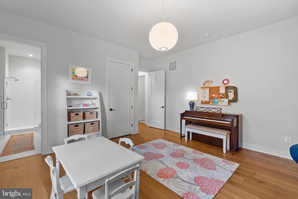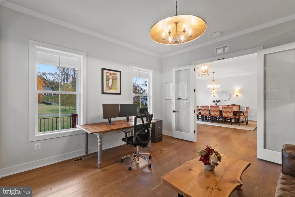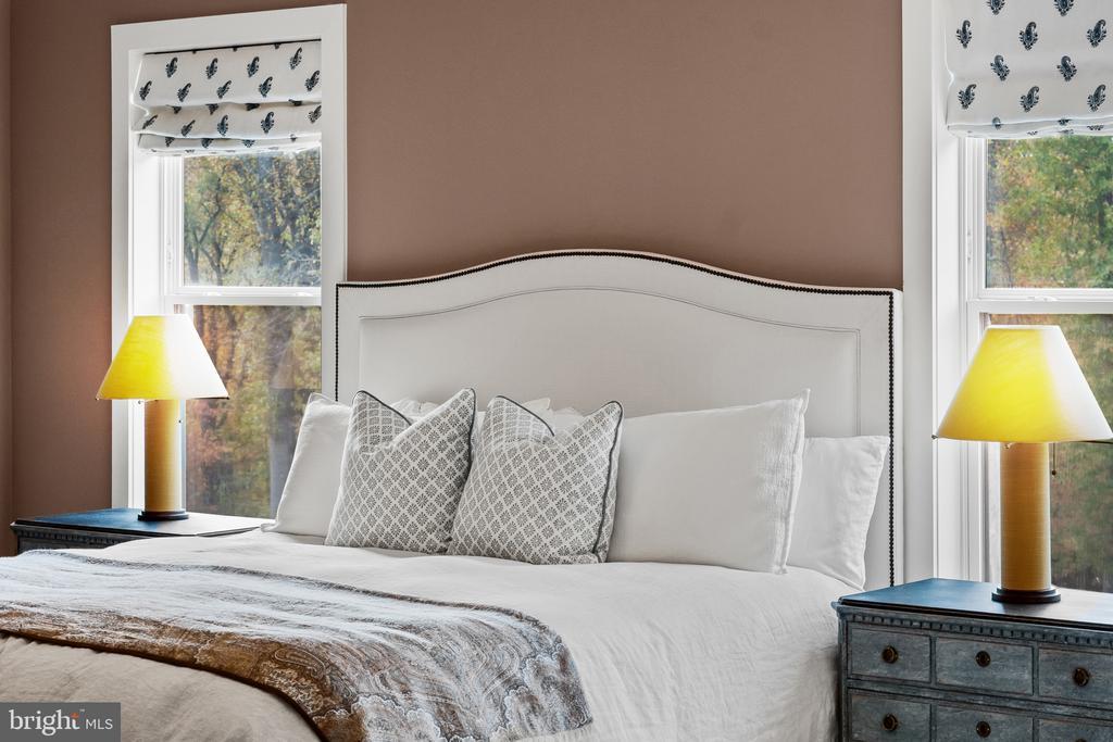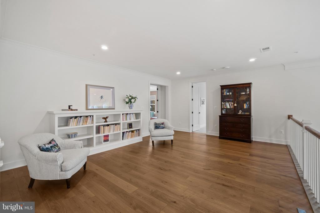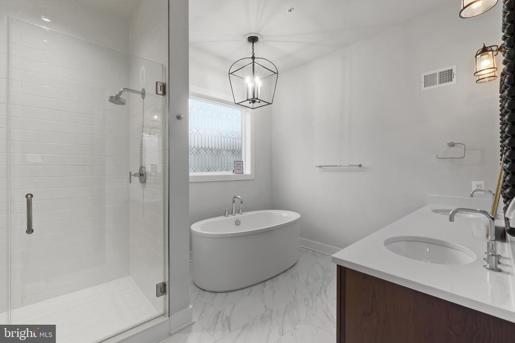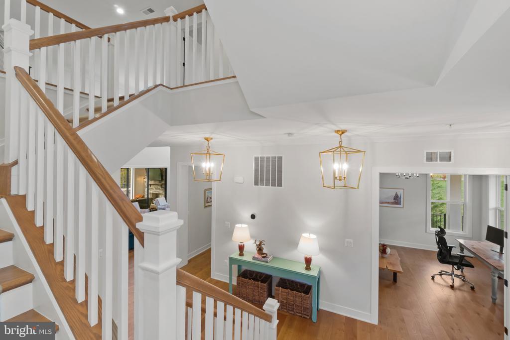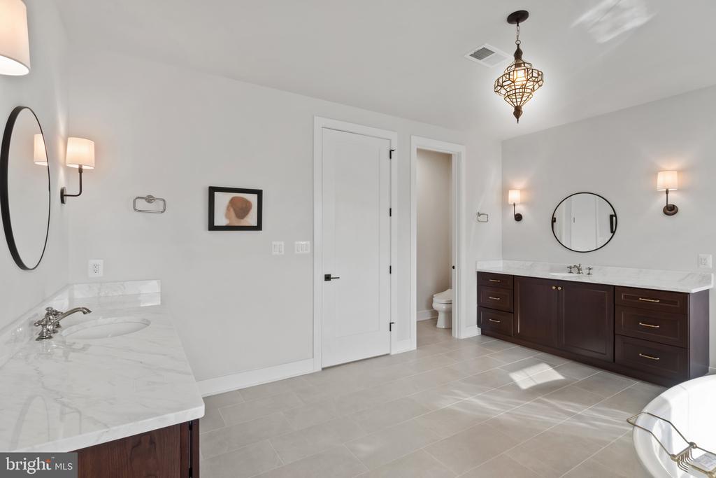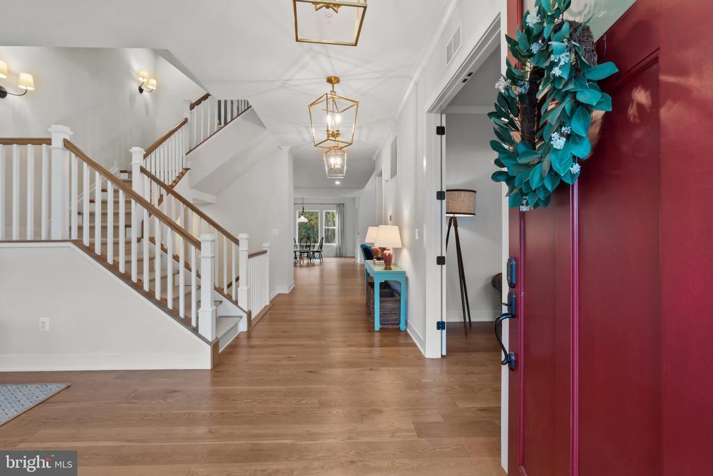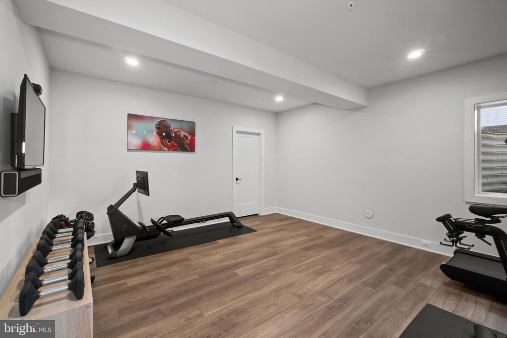 This magnificent residence spans over 8,316 finished square feet, showcasing exceptional craftsmanship, sophisticated design, and luxurious finishes throughout. Every room exudes elegance, with engineered hardwood floors, custom millwork, and expansive windows that fill the home with natural light. The open layout blends function and beauty, creating a seamless flow for both everyday living and grand entertaining. Extensively upgraded for comfort and convenience, the home includes a whole-house water filtration system, acid neutralizer, iron handler softener, and wireless access points throughout. Additional enhancements include designer lighting, premium vanities, custom tile, and high-end plumbing fixtures, elevating the home’s refined aesthetic. The grand foyer opens to a formal dining room with wall sconces and a sparkling chandelier, while French doors across the hall reveal a private study. The great room impresses with two-story ceilings, multi-panel stacking doors, and a gas fireplace with a wood mantel and marble surround, framed by custom built-ins. This space connects effortlessly to the screened porch and deck, ideal for indoor-outdoor entertaining. The gourmet kitchen is a chef’s dream, featuring stainless steel appliances, including a Wolf six-burner cooktop, dual-fuel range with touch-screen controls and an infrared griddle, and a 48” Sub-Zero refrigerator. A walk-in pantry and butler’s pantry provide generous storage, while Silestone quartz countertops, floor-to-ceiling subway tile, and a central oversized island with pendant lighting and breakfast bar seating anchor the space. White perimeter cabinetry with under-cabinet lighting contrasts beautifully with the warm walnut-colored island, and a sunlit breakfast area completes the kitchen. A multi-generational suite with a private front entrance offers a living room, bedroom with a walk-in closet, and a spa-like full bath with dual vanities, a freestanding soaking tub, and a glass shower, plus a laundry room with hookups. A main-level bedroom or bonus room provides additional flexibility, complete with a dual vanity en suite bath and walk-in closet. The level also features a powder room with a Toto bidet. Finally, a spacious with mudroom with adjoining walk-in closet provides access to the Wi-Fi-enabled garage. Upstairs, a loft with built-in bookcases serves as a cozy lounge or library. The primary suite offers plush carpeting, custom blackout shades, and a large walk-in closet. The spa-inspired bathroom includes a glass steam shower with rain and handheld shower heads, herringbone tile floors, dual Calacatta marble vanities, a freestanding soaking tub, a bidet, and dual towel warmer. Each of the three secondary bedrooms on this level has an en suite bathroom and walk-in closet. The uppermost level provides flexible finished space with luxury vinyl plank flooring, a half bath, and a storage room, perfect for an additional bedroom, office, playroom, or recreation area. The finished walk-out lower level offers a large open space with a wet bar, a beverage refrigerator, dishwasher, a full bathroom, and a bedroom with a walk-in closet, ideal for a gym, guest suite, or hobby room. Two utility rooms and a storage area complete this remarkable home, where every detail has been designed with style, comfort, and sophistication in mind. Outdoor living is elevated with a covered deck that seamlessly converts to a screened-in porch using a retractable remote-controlled screen, complete with a stone gas fireplace and ceiling fan for year-round comfort. A custom Trex deck extension expands the entertaining space, and a shed beneath the deck adds practical storage without compromising style.