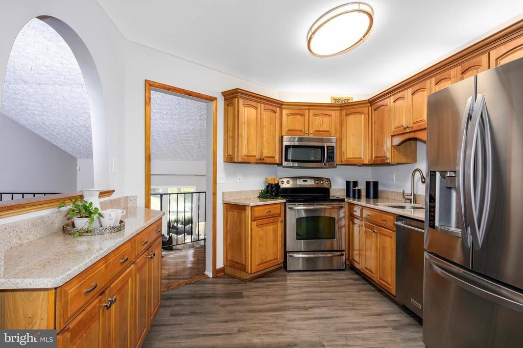Welcome to 8634 Bali Road, a beautifully maintained split-level home nestled in one of Ellicott City’s most desirable and convenient neighborhoods. Thoughtfully updated with fresh paint and new carpet throughout, this spacious home offers a blend of comfort, character, and natural beauty—perfect for modern-day living and entertaining alike. Step inside to a bright and inviting living room featuring soaring two-story ceilings and cozy new carpeting, ideal for relaxing or gathering with family. A few steps up, the kitchen welcomes you with luxury vinyl flooring, stainless appliances, elegant silestone countertops and maple cabinets. The space opens seamlessly to the dining area and a stunning sunroom, complete with vaulted ceilings, a ceiling fan, and its own dedicated A/C unit. Flooded with natural light, the sunroom extends to a spacious deck and beautiful fenced multi-tiered backyard, complete with a patio, storage shed, lush greenery and plants—offering a peaceful retreat for outdoor enjoyment or relaxation. This level features three generously sized bedrooms, all with new carpet, including a serene primary suite with its own private en suite bathroom. Each room provides comfortable living space with ample storage and natural light. There is a conveniently placed hall bath for all to use. The finished lower level expands your living space with a large recreation or family room, anchored by a charming brick fireplace with a pellet stove insert and custom built-in shelving. A flexible additional room offers an ideal 4th bedroom, home office, or hobby area. The lower level also includes a convenient half bath and a dedicated laundry/storage room. Located in a tranquil yet accessible community, this home is just minutes from top-rated Howard County schools (including Centennial High School) , the Long Gate Shopping Center, Centennial Park, and historic Ellicott City. Enjoy proximity to major commuter routes including Route 29, Route 40, and I-70, as well as nearby dining, retail, and recreational options. *** New HVAC and Water Heater in 2025
