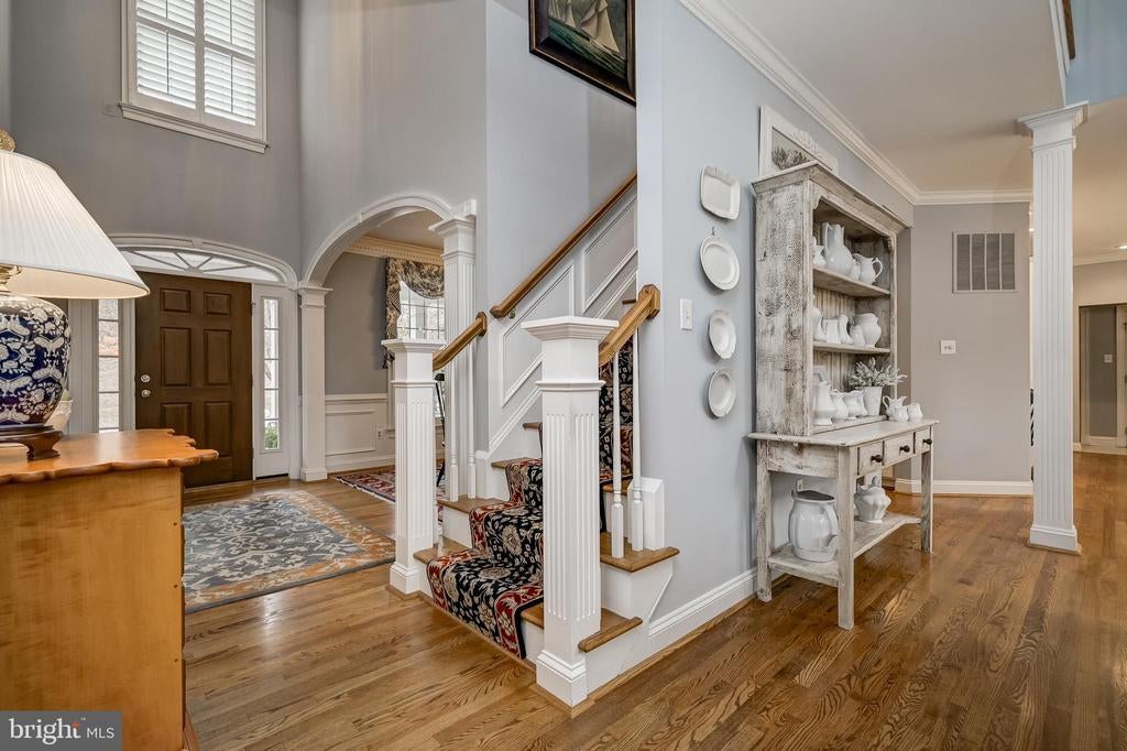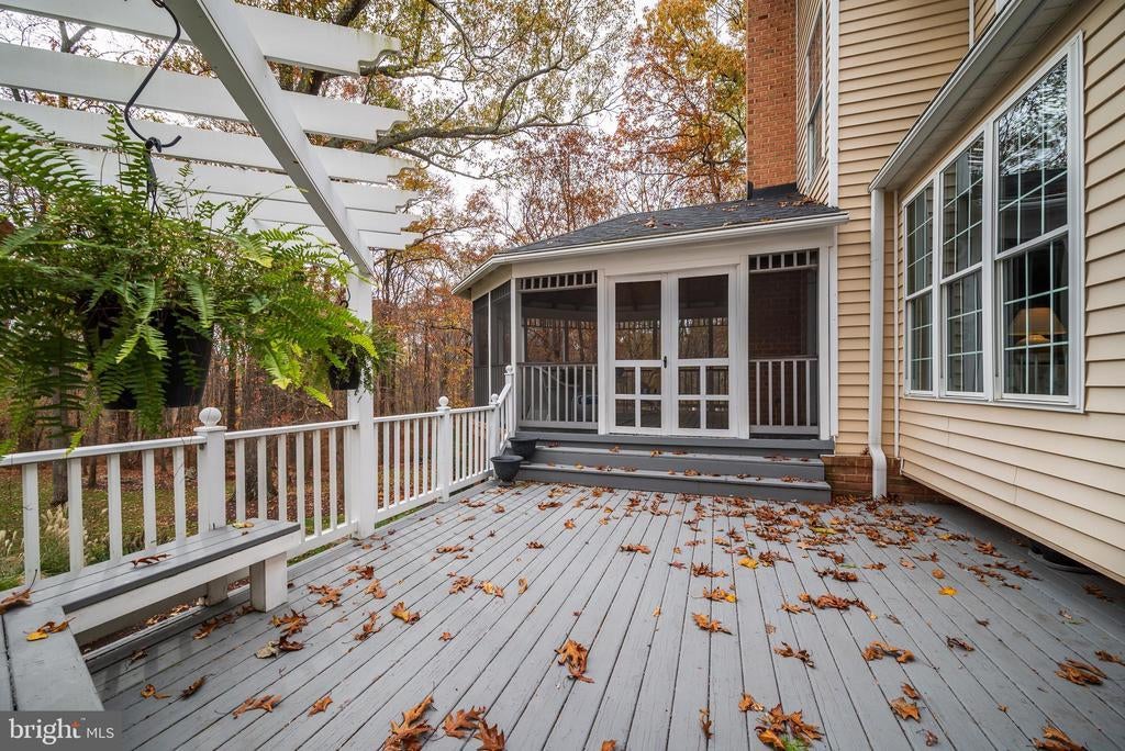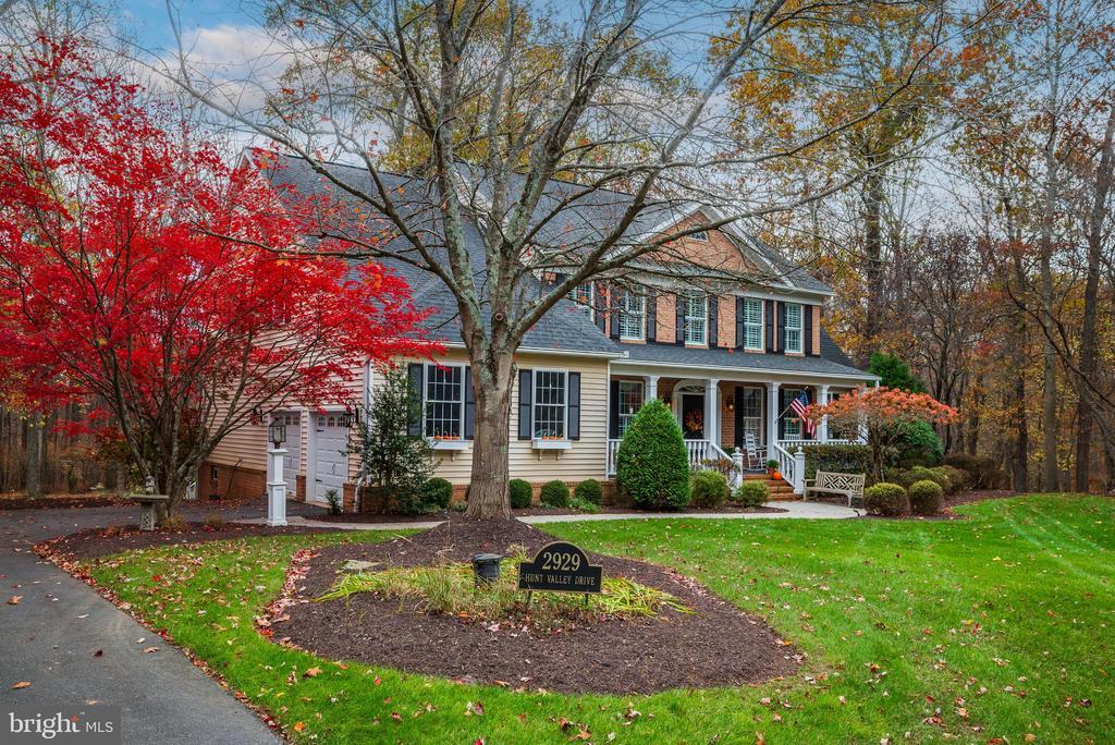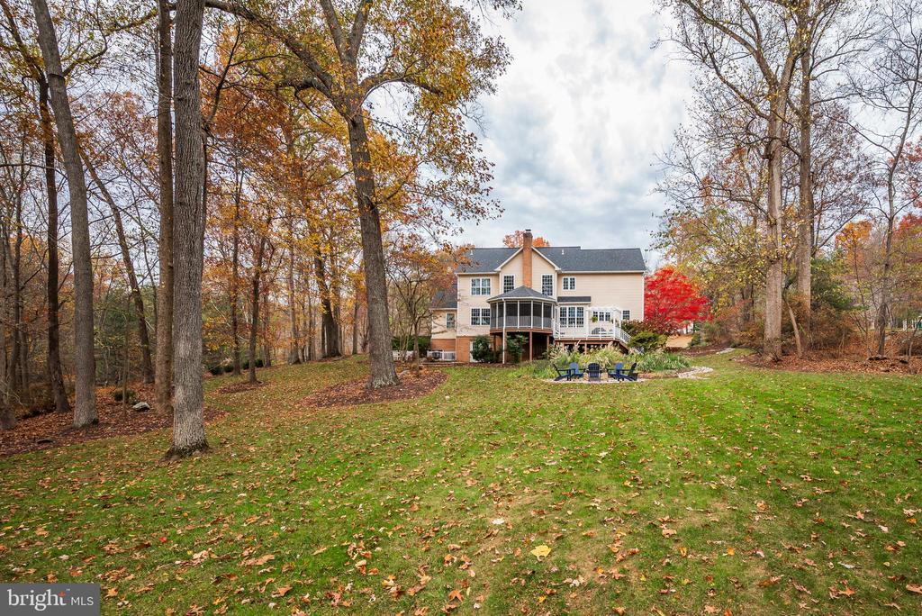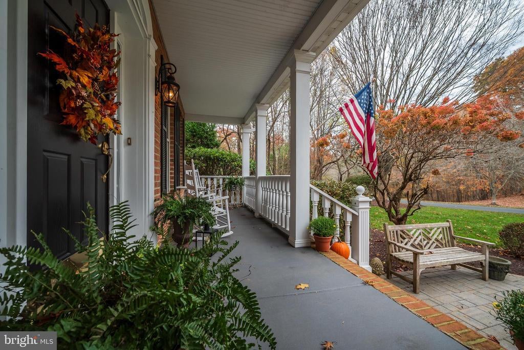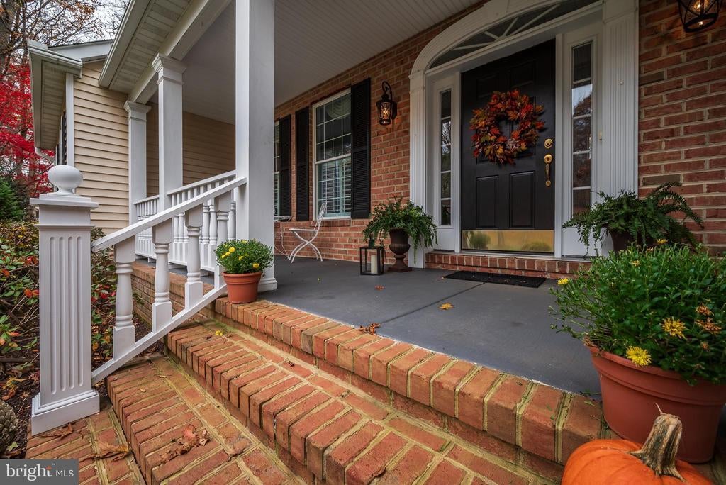 Beautifully sighted on a lovely lot backing to protected woods. Custom built and loved by original owners with artful craftsmanship throughout. Hardwood flooring on the main level, primary bedroom and upper hall. Extensive wood moldings, trim and custom arched entries will impress. Welcomed by the peaceful full front porch, enter the 2-story foyer flanked by formal dining room w/butlers' pantry; formal living room with access to substantial sun room offering seasonal views and separate opportunities for gathering spaces. Onward to the central stair, 2-story family room with centered fireplace and formal mantle, office/library with built-in cabinetry and wall to wall shelving made private by French doors, screened porch open to deck and pergola. Recently renovated kitchen with island, breakfast bar and table space, walk-in bay window, desk, pantry, white cabinetry with Glass display doors, cooktop, built-in microwave/convection wall oven, dishwasher, stainless French door refrigerator with ice/water through the door and freezer drawer; beautiful quartz counters with beveled edge. Embrace the over-sized garage with entry to the mud room and main level laundry room with service sink. Upper level boasts generous primary suite with vaulted ceilings, 2 walk-in closets and recently renovated ensuite bath with soaking tub, shower with rain glass doors, double bowl vanity, cathedral ceilings and wainscoting. Three secondary bedrooms surround the impressive catwalk hall over-looking the family room, open magnificent view of the rear spaces and spectacular view of the rear property. Elegant plantation shutters throughout create that gentle feeling of a Southern living lifestyle. The lower level is finished for additional enjoyment....rec room, dining space, serving bar w/mini-fridge, guest space with ensuite full bath, a secondary finished space for your workout, hobbies or additional office. Additional expansive shelved storage room will house and preserve your treasures. Walkout to a breath-taking rear level yard, plenty of space for yard games, plus 3 separate paver patios, one with fire-pit for your year-round enjoyment or every season beverage and smores!! Roof replaced 2017. HVAC replaced 2018. Kitchen/primary bath remodeled 2017. A perfect opportunity to embrace life in Wellington, one of Western Howard County's first and most prestigious custom neighborhoods, so conveniently located within minutes to Howard County's outstanding schools, Western Regional park and library complex, Cattail Country Club, shopping, restaurants nearby. Welcome Home!