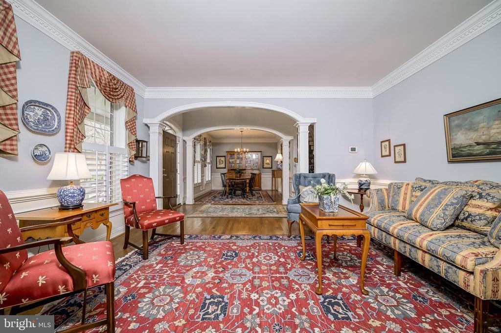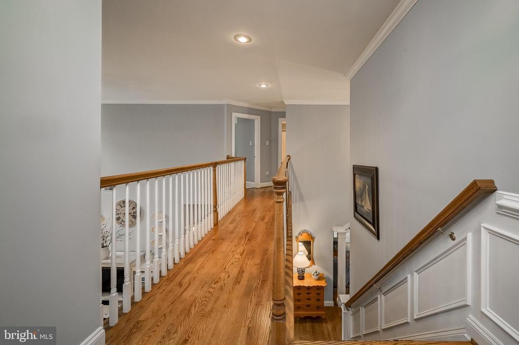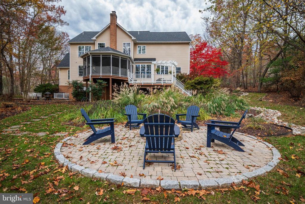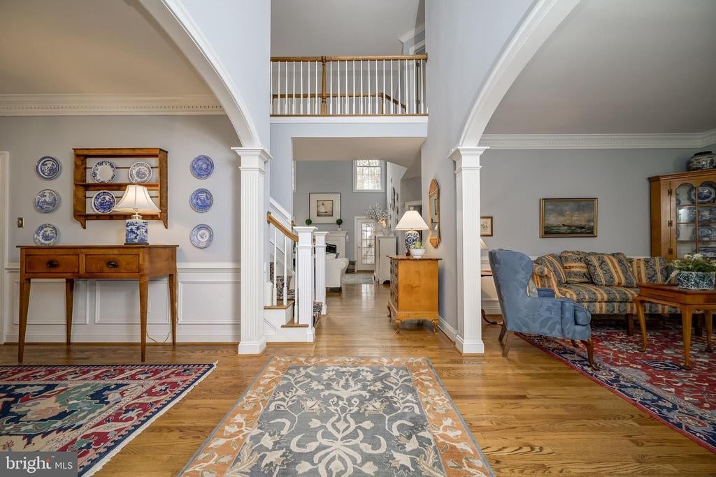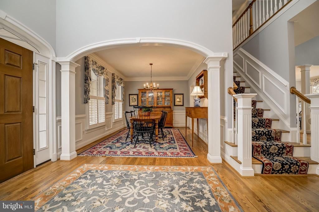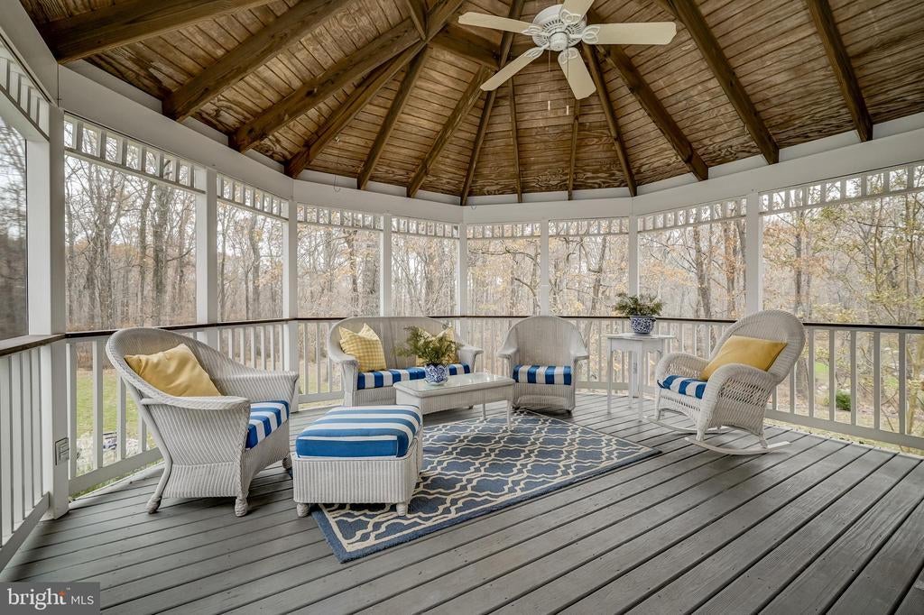Beautifully sighted on a lovely lot backing to protected woods. Custom built and loved by original owners with artful craftsmanship throughout. Hardwood flooring on the main level, primary bedroom and upper hall. Extensive wood moldings, trim and custom arched entries will impress. Welcomed by the peaceful full front porch, enter the 2-story foyer flanked by formal dining room w/butlers' pantry; formal living room with access to substantial sun room offering seasonal views and separate opportunities for gathering spaces. Onward to the central stair, 2-story family room with centered fireplace and formal mantle, office/library with built-in cabinetry and wall to wall shelving made private by French doors, screened porch open to deck and pergola. Recently renovated kitchen with island, breakfast bar and table space, walk-in bay window, desk, pantry, white cabinetry with Glass display doors, cooktop, built-in microwave/convection wall oven, dishwasher, stainless French door refrigerator with ice/water through the door and freezer drawer; beautiful quartz counters with beveled edge. Embrace the over-sized garage with entry to the mud room and main level laundry room with service sink. Upper level boasts generous primary suite with vaulted ceilings, 2 walk-in closets and recently renovated ensuite bath with soaking tub, shower with rain glass doors, double bowl vanity, cathedral ceilings and wainscoting. Three secondary bedrooms surround the impressive catwalk hall over-looking the family room, open magnificent view of the rear spaces and spectacular view of the rear property. Elegant plantation shutters throughout create that gentle feeling of a Southern living lifestyle. The lower level is finished for additional enjoyment....rec room, dining space, serving bar w/mini-fridge, guest space with ensuite full bath, a secondary finished space for your workout, hobbies or additional office. Additional expansive shelved storage room will house and preserve your treasures. Walkout to a breath-taking rear level yard, plenty of space for yard games, plus 3 separate paver patios, one with fire-pit for your year-round enjoyment or every season beverage and smores!! Roof replaced 2017. HVAC replaced 2018. Kitchen/primary bath remodeled 2017. A perfect opportunity to embrace life in Wellington, one of Western Howard County's first and most prestigious custom neighborhoods, so conveniently located within minutes to Howard County's outstanding schools, Western Regional park and library complex, Cattail Country Club, shopping, restaurants nearby. Welcome Home!