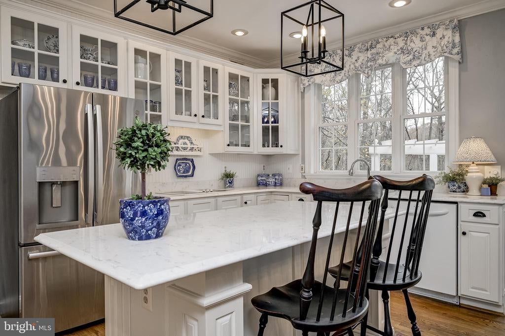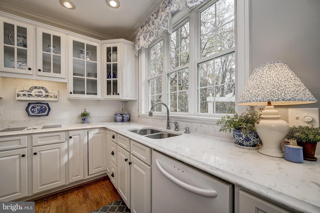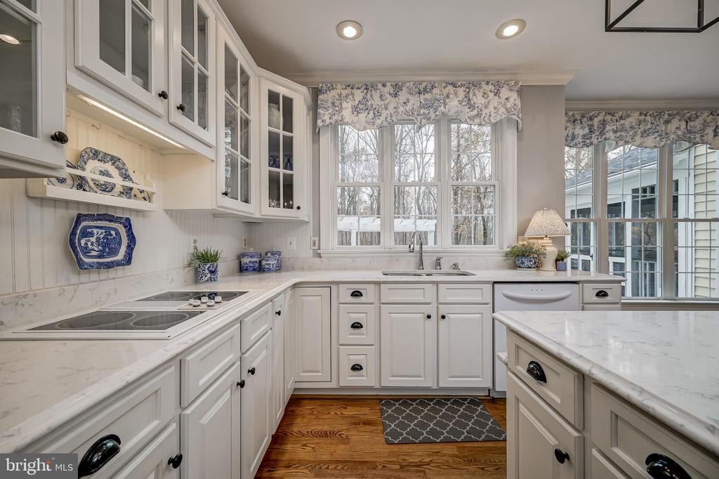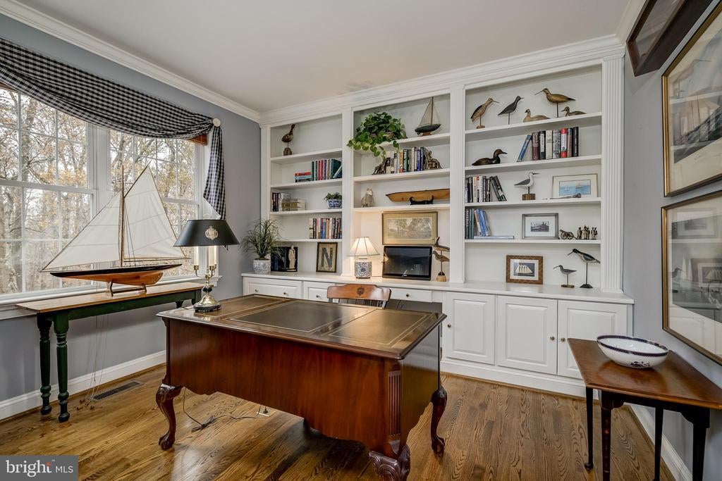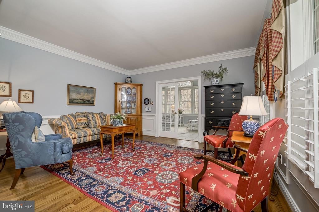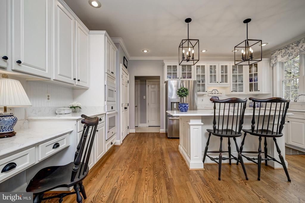 Beautifully sighted on a lovely lot backing to protected woods. Custom built and loved by original owners with artful craftsmanship throughout. Hardwood flooring on the main level, primary bedroom and upper hall. Extensive wood moldings, trim and custom arched entries will impress. Welcomed by the peaceful full front porch, enter the 2-story foyer flanked by formal dining room w/butlers' pantry; formal living room with access to substantial sun room offering seasonal views and separate opportunities for gathering spaces. Onward to the central stair, 2-story family room with centered fireplace and formal mantle, office/library with built-in cabinetry and wall to wall shelving made private by French doors, screened porch open to deck and pergola. Recently renovated kitchen with island, breakfast bar and table space, walk-in bay window, desk, pantry, white cabinetry with Glass display doors, cooktop, built-in microwave/convection wall oven, dishwasher, stainless French door refrigerator with ice/water through the door and freezer drawer; beautiful quartz counters with beveled edge. Embrace the over-sized garage with entry to the mud room and main level laundry room with service sink. Upper level boasts generous primary suite with vaulted ceilings, 2 walk-in closets and recently renovated ensuite bath with soaking tub, shower with rain glass doors, double bowl vanity, cathedral ceilings and wainscoting. Three secondary bedrooms surround the impressive catwalk hall over-looking the family room, open magnificent view of the rear spaces and spectacular view of the rear property. Elegant plantation shutters throughout create that gentle feeling of a Southern living lifestyle. The lower level is finished for additional enjoyment....rec room, dining space, serving bar w/mini-fridge, guest space with ensuite full bath, a secondary finished space for your workout, hobbies or additional office. Additional expansive shelved storage room will house and preserve your treasures. Walkout to a breath-taking rear level yard, plenty of space for yard games, plus 3 separate paver patios, one with fire-pit for your year-round enjoyment or every season beverage and smores!! Roof replaced 2017. HVAC replaced 2018. Kitchen/primary bath remodeled 2017. A perfect opportunity to embrace life in Wellington, one of Western Howard County's first and most prestigious custom neighborhoods, so conveniently located within minutes to Howard County's outstanding schools, Western Regional park and library complex, Cattail Country Club, shopping, restaurants nearby. Welcome Home!