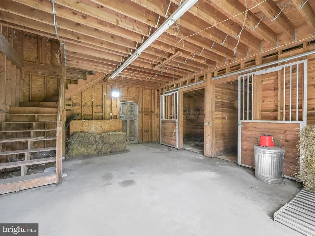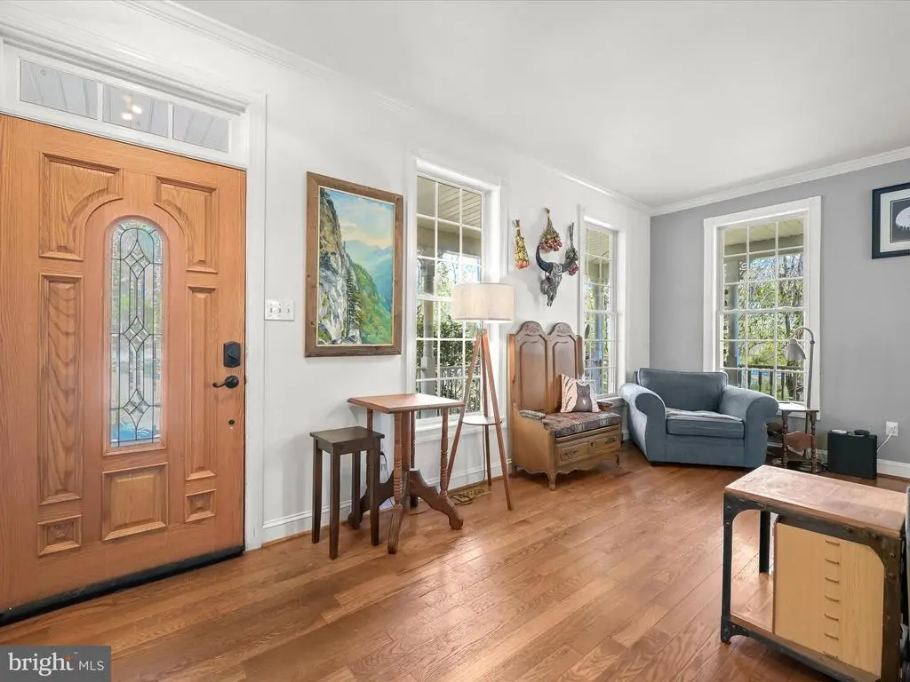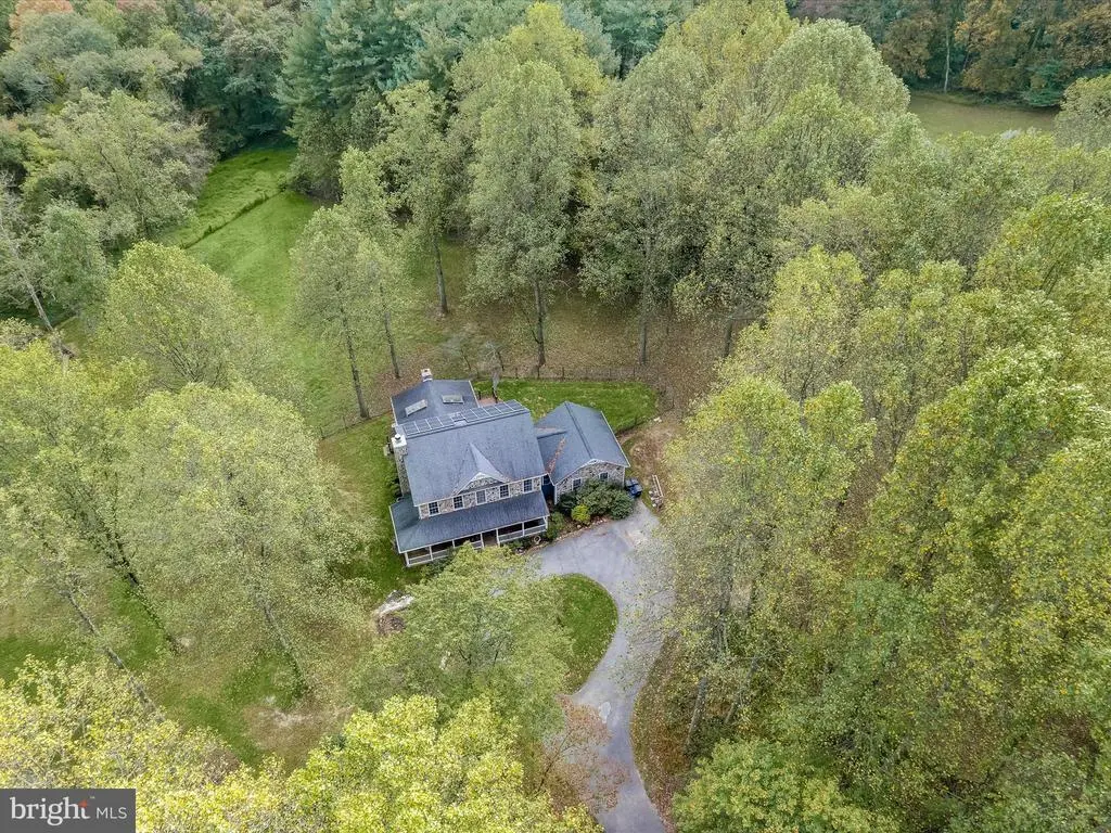 Beautiful colonial on over 7 Acres with an entry level guest suite, and a detached garage with stables! This beautifully updated colonial is nestled on over 7 private acres and offers the perfect blend of classic charm, modern updates, and versatile living space, including a detached garage with stables which have power and water, and a young orchard of apples, pears, peaches, and berries. Step inside to a bright and airy open floor plan featuring hardwood floors, offering spacious living and dining areas highlighting a wood burning fireplace and accent molding, a cozy sitting room, and a stunning sunroom with a soaring cathedral wood ceiling, skylights and a rustic stone fireplace. The updated kitchen boasts dual-tone cabinetry, granite countertops, stainless steel appliances, and a sunny breakfast area. A powder room and laundry area are conveniently located on the main level and lead to a private guest suite with a generous living area, bedroom, full bath, and direct access to the yard, ideal for multigenerational living or long-term guests. Upstairs, the spacious primary suite offers a luxurious en suite bath with dual vanities, soaking tub, and separate shower. Two additional bedrooms and a full bathroom complete the upper level. The finished lower level includes a recreation room and abundant storage space, and additional amenities include leased solar panels, and an electric car charger. Recent updates include most major appliances, water system, tankless water heater, and more. Enjoy serene country living with the convenience of nearby shopping, dining, entertainment, and easy access to major commuter routes.