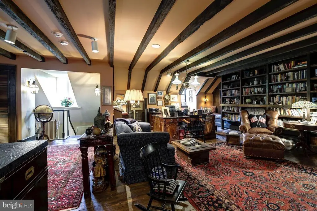 Additional Stairway, Bar, Built-Ins, Chair Railings, Crown Moldings, Exposed Beams, Formal/Separate Dining Room, Primary Bath(s), Wet/Dry Bar, Wine Storage, Wood Floors