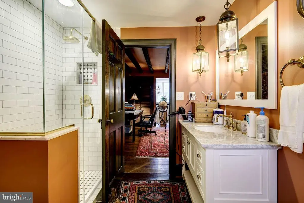 Hickory Ridge – one of the region’s premier historic estates, offering classic period details & exemplary materials and craftsmanship on 19.47 acres in Highland, MD. The estate comprises the exceptional Manor House, a charming 1749 cottage/guest house, Carriage House/office, an English greenhouse, and first-class equestrian facilities. The Manor House boasts high ceilings and spacious rooms, including a stunning reception hall, formal living room, gracious dining room, a large, modern kitchen, original 1789 kitchen now used for family dining, paneled library, sunroom, and a mud room. Large bedrooms and modern baths occupy on the upper two levels, and the lower level features the incredible Jockey Club Pub (see photos) and an adjoining rec room. Working fireplaces grace the formal rooms, bedrooms, and the original kitchen. A large, covered side porch overlooks a lovely, recessed garden, and brick walkways lead to an underground wine cellar and a 50x25 heated pool. The bucolic setting is meticulously landscaped & graced by specimen trees, historic boxwoods, stacked-stone walls, & English-style gardens. Equestrian facilities include a 9-stall barn, a separate tack room & gym, double-fenced paddocks, and run-in sheds. Completing the grounds are a 3-car garage & a large equipment shed. Approached by two tree-lined lanes, this historic estate offers luxury and comfort for family living, elegant space for grand entertaining, first-class equestrian facilities, and a rare close-in sanctuary for those seeking privacy with easy access to area amenities.