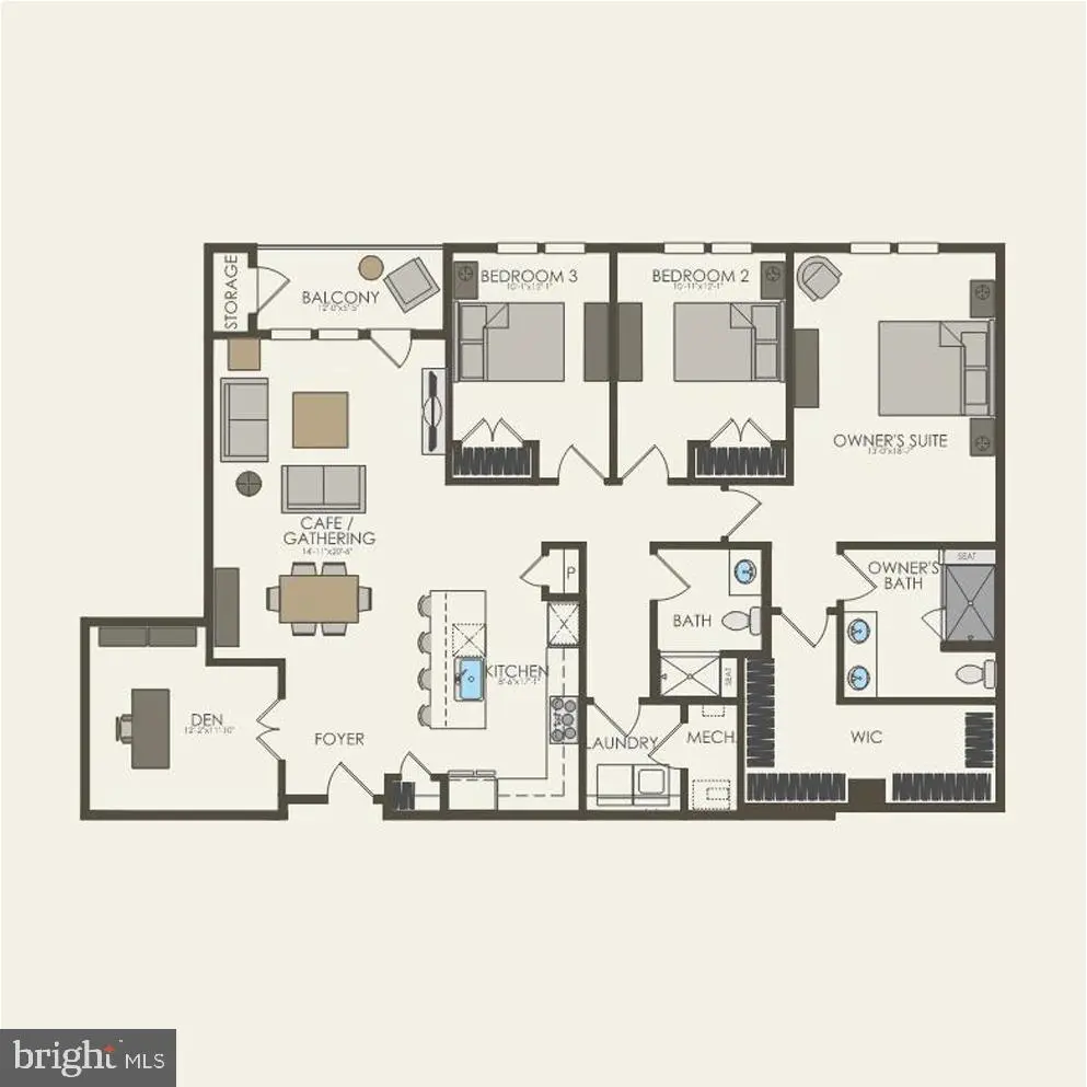 Enter the Matthew condo through the foyer and into the kitchen and café/gathering room area. A balcony offers outdoor living space with a storage unit. This one-level, elevator condo includes Quartz countertops, stainless steel Gourmet Kitchen appliances, ceramic tile backsplash, and luxury vinyl plank flooring throughout! Choose low-maintenance living and enjoy walkability to restaurants and shopping within Park Potomac!