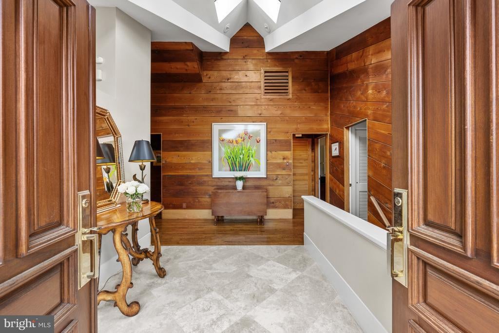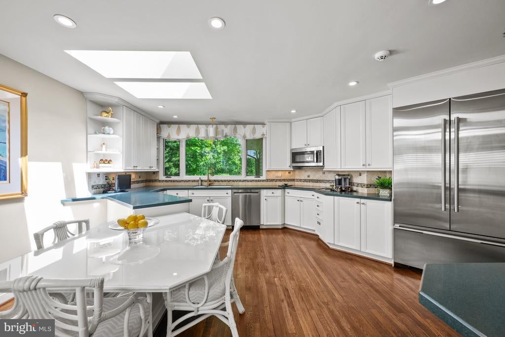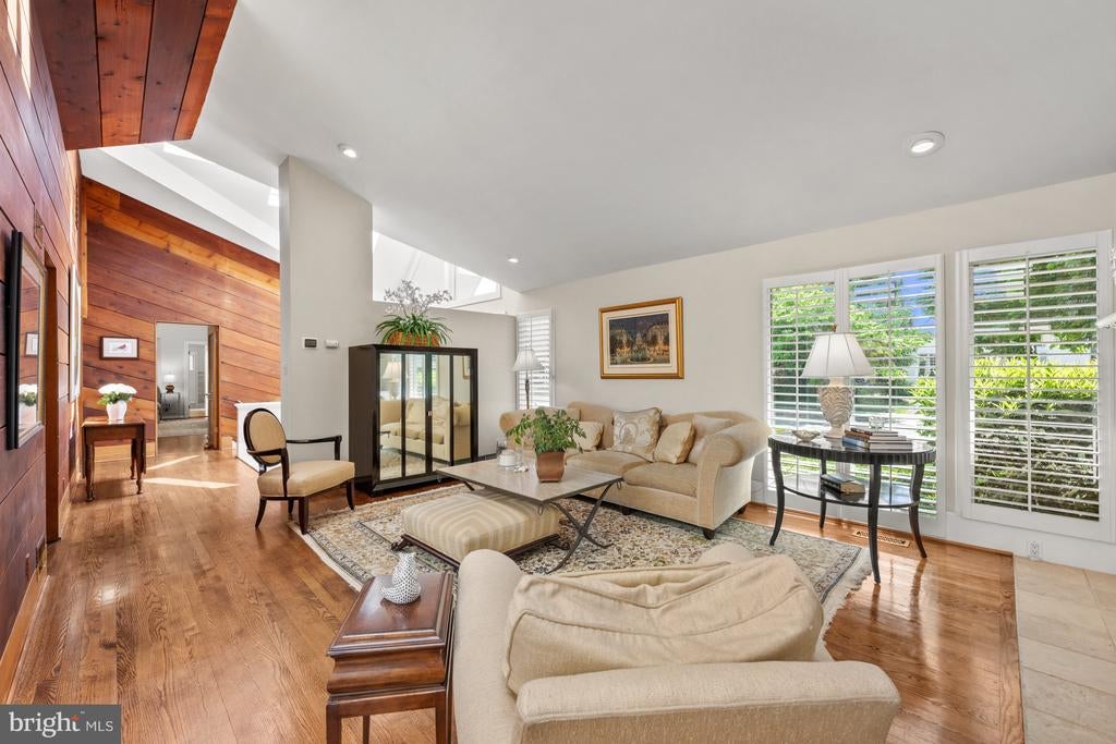Prepare to be dazzled by this beautifully updated Craftsman-style home in Chevy Chase, MD! The beautifully landscaped grounds give you an indication of what awaits you inside. The covered entry 's double doors with glass side windows and triangular clerestory above open to the magnificent foyer with its vaulted ceiling and skylights, setting the tone for the magnificent, light-filled interior, which is ideal for large- or small group entertaining as well as comfortable family living. There are soaring ceilings throughout much of the main level; recessed lights; natural, reclaimed hardwood floors in many rooms; and plentiful windows offering views of the beautiful, landscaped grounds. The main level offers an open floor plan, which is so popular in today's homes. The Living Room has a vaulted ceiling with skylights and a handsome wood-burning fireplace flanked by Open shelving and cabinets. It is adjacent to a large Dining Room with a cathedral ceiling and skylights, which in turn opens to a Solarium with cathedral ceiling, skylights, an extended window seat with windows and skylights above, and a sliding glass door to the extended Patio. The generous-sized Kitchen has plenty of space for the serious cook with plentiful white wood cabinets and a custom tile backsplash, stainless-steel appliances, a pantry closet, wet bar, and a sliding glass door to the solarium. A separate Sunroom also boasts a cathedral ceiling with skylights and opens to the Patio as well as the Garage. The bedroom wing is where you will find the Primary Bedroom Suite. The Bedroom has two closets, attic access, a wall of windows, and sliding glass doors perfect for a future deck. Prepare to luxuriate with two Primary Baths! The larger one features an aerated tub and an oversized tiled steam shower with built-in bench, large vanity, mirror with a hidden TV, a separate water closet, large, organized walk-in closet, and marble flooring. The second Bath, with vaulted ceiling and clerestory windows, has a marble pedestal sink with medicine cabinet above, ceramic tile shower with handheld and fixed showerheads, and a built-in niche, and ceramic tile flooring The second Bedroom, which could also be used as a Study, has picture windows overlooking a Patio and the lovely back yard. The finished walkout lower level features a spacious Family Rom with a wood-burning fireplace and built-in cabinetry on the side. This room has wall-to-wall carpeting. Bedroom #3 has a wall of closets, sliding glass door to the Patio and an adjacent large Storage Room. Bedroom #4 has a trey ceiling, wall-to-wall carpeting and sliding glass door to the Patio as well. A full Bath has a vanity with medicine cabinet and sconces above, a fully tiled oversized shower with Raindance head and a second hand-held shower head, and tile floor. A Laundry Room and Utility Room complete this level. The fully finished Garage has a separate Storage Room accessed from the Garage and Patio. The circular driveway of brick pavers provides lots of extra parking. You will love the well-designed hardscape terrace, which has plenty of room for lounging, dining, and gathering around the firepit throughout the seasons. Add to all this a wonderful location within walking distance to shops and restaurants on Connecticut Avenue, as well as proximity to Chevy Chase Lake, the Capital Crescent Trail, and the future Purple Line for the Metro. There is easy access to downtown DC with all its many attractions, as well as Bethesda and northern Virginia. Hop on 1-495 if you need to travel out of the area from any of the three major area airports. This is truly a home for a lifetime!