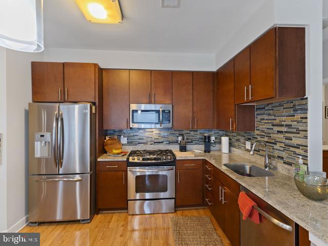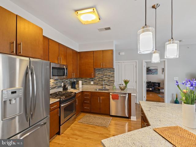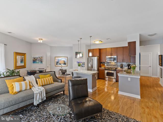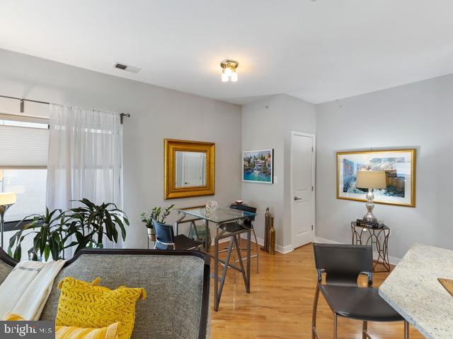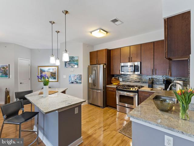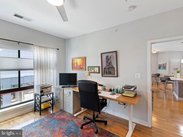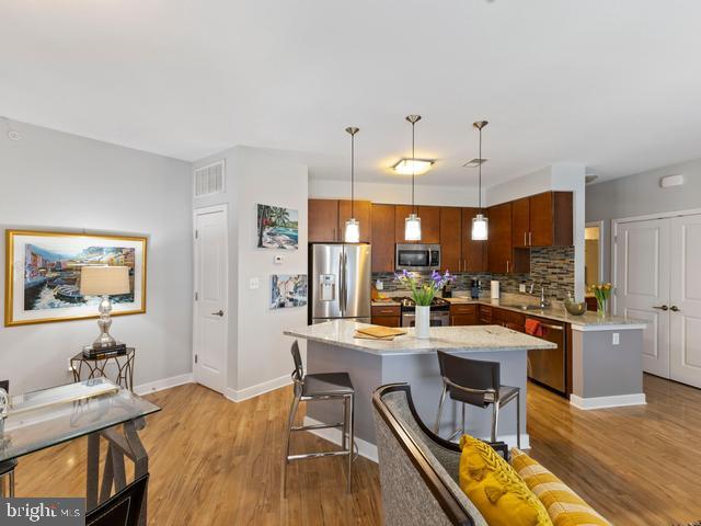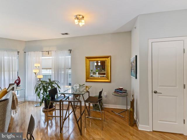 Location: Conveniently located near the Silver Spring Red Line Metro, this home is just a short walk away from coffee shops and retail outlets, including Giant and CVS. Nestled in a quiet corner near the DC line, the neighborhood features a mix of living spaces, including single-family homes and apartments, bordered by the 16th Street NW, Georgia Avenue, and East West Highway corridors. Property Description: This larger more spacious corner condo features a unique foyer large enough for a sitting area, providing a welcoming space after a long day. With 10-foot ceilings, the condo offers an expansive and airy feeling. The foyer leads to one of the two primary master bedrooms, each with its own ensuite bathroom and walk-in closet. Additionally, there is a convenient half bathroom for guests and hidden washer and dryer stacks. Continuing down the gallery hallway, you enter the large open-concept kitchen with modern stainless steel appliances, wood full overlay cabinets, granite countertops with full modern backsplash, dining, and living space with floor-to-ceiling window walls. A center island for casual dining or meal prep, pendant lights, and ample cabinet space. On the other side of the apartment is the second primary master bedroom, which could serve as an office, guest suite, or accommodate two roommates. And do not forget to look at the roof deck, Gym (Fitness Center), and recreational rooms. This condo presents a blank canvas for the new owner(s) to personalize. With its fantastic layout and features, you're sure to love it as much as the current owner does. Features: Fabulous 2-bedroom corner condo Open floor plan with hardwood floors Granite countertops Stainless steel appliances Floor-to-ceiling windows for natural light Amenities: Less than a mile walk to Silver Spring metro stop Monthly parking available via Montgomery County garage (13th Street Garage next store) Small comfortable condo building Come get this one, do not let it get away. Almost 5k off the price.