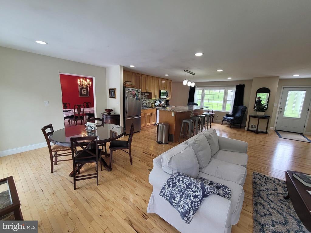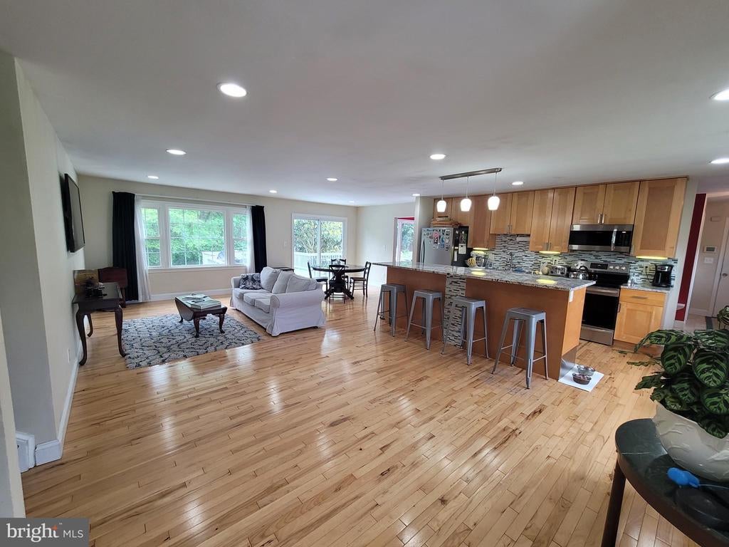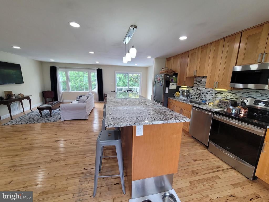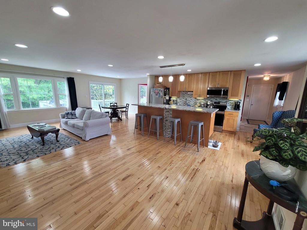 Fabulous open floor plan family home with room for everyone! Sprawling split level home has FOUR finished levels of living space to spread out and enjoy yourself. The main level hosts the open kitchen and living space featuring a large kitchen island with granite counter tops, hardwood floors, and loads of natural light making this the hub of the home. Over-sized formal dining room just a few steps from the kitchen makes entertaining a large group easy. The upper level contains a total of three bedrooms, a hall bath, and primary bedroom with an en suite bathroom. The lower two levels lead you through a family room with fireplace, and two additional bedrooms and full bathroom, and a walk out mud room and laundry room. The over-sized 2 car garage features a built in work bench with 20 amp service and a floored and lighted attic storage area above. The gentle sloping yard allows for privacy backing to woodlands with small trail and campfire area for telling stories and roasting marshmallows. Conveniently located between routes 70 and 270 and a short trip to Damascus area schools. This property has so much to offer and is the perfect space for a new family to call home.