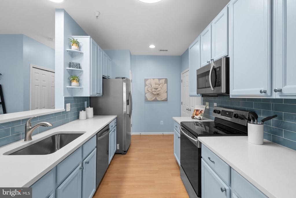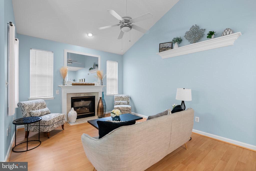 This light-filled 2-bedroom, 2-bathroom condo is located on the top floor, offering vaulted ceilings and great natural light throughout. The living and dining areas feature an open layout with a gas fireplace and access to a large covered balcony—perfect for relaxing or enjoying a quiet moment outdoors. The kitchen includes quartz countertops, stainless steel appliances, and plenty of cabinet space. The primary bedroom offers an en-suite bath and generous closet space, while the second bedroom and full hall bathroom provide flexibility for guests or a home office. Additional highlights include in-unit laundry and convenient access to nearby shops, including Wegmans, Milestone & Neelsville shopping centers, restaurants, and major commuter routes. A comfortable, move-in-ready space in a great location.
