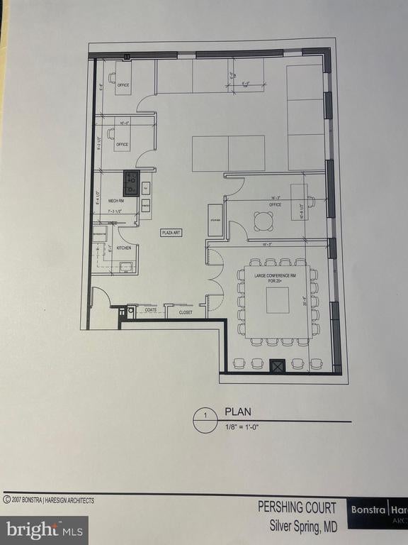 804 Pershing Drive, Unit 104 - 2,155 s.f. IMPROVEMENTS: This is a street level, first floor, walk in medical/office condo in Downtown Silver Spring. This modern sprinklered unit contains 3 enclosed offices, a large conference room, kitchenette, HVAC / IT room, foyer, closets and plenty of open work space or one could add several additional windowed offices. The unit includes two contiguous storage units measuring 108 s.f. The main building entrance provides direct access to this unit with no steps. This corner unit has carpet flooring throughout has drop ceilings with florescent lighting. There are 2 separately controlled HVAC units and occupants have 24/7 access to the building.
