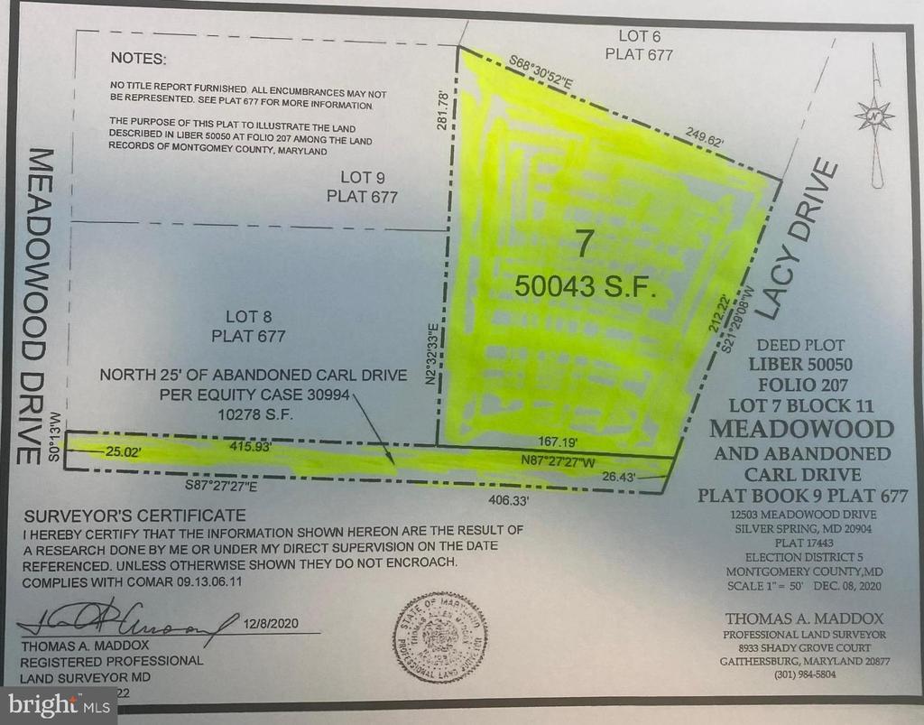 Come build your dream home on this 1+ acre wooded lot in Wolf Acres with water and sewer available at the street, not well or septic. Agent can provide builder referrals. This Lot allows for a private setting with a pan handle entrance over 25 feet wide from Meadowood Drive ready for a future driveway to access your peace and quiet oasis. Lot is located behind 12501 Meadowood and the access pan handle area is between 12501 and 12435 Meadowood. Close to major local roads and commute to DC. Prior contract failed to close on time so property available for any offers.