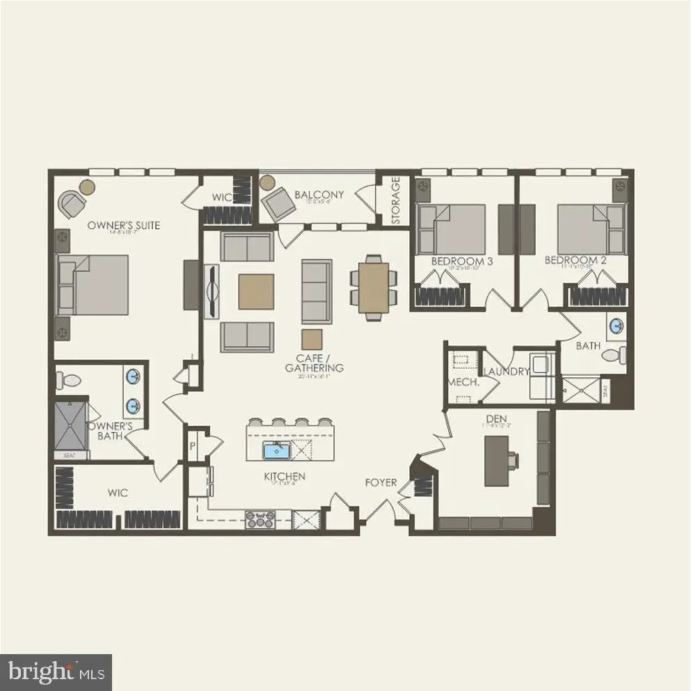 The Haley condo residence centers around the kitchen and large gathering room/café space. A balcony is located off the gathering room. This one-level, elevator condo includes Quartz countertops, stainless steel Gourmet Kitchen appliances, ceramic tile backsplash, and luxury vinyl plank flooring throughout! Choose low-maintenance living and enjoy walkability to restaurants and shopping within Park Potomac!