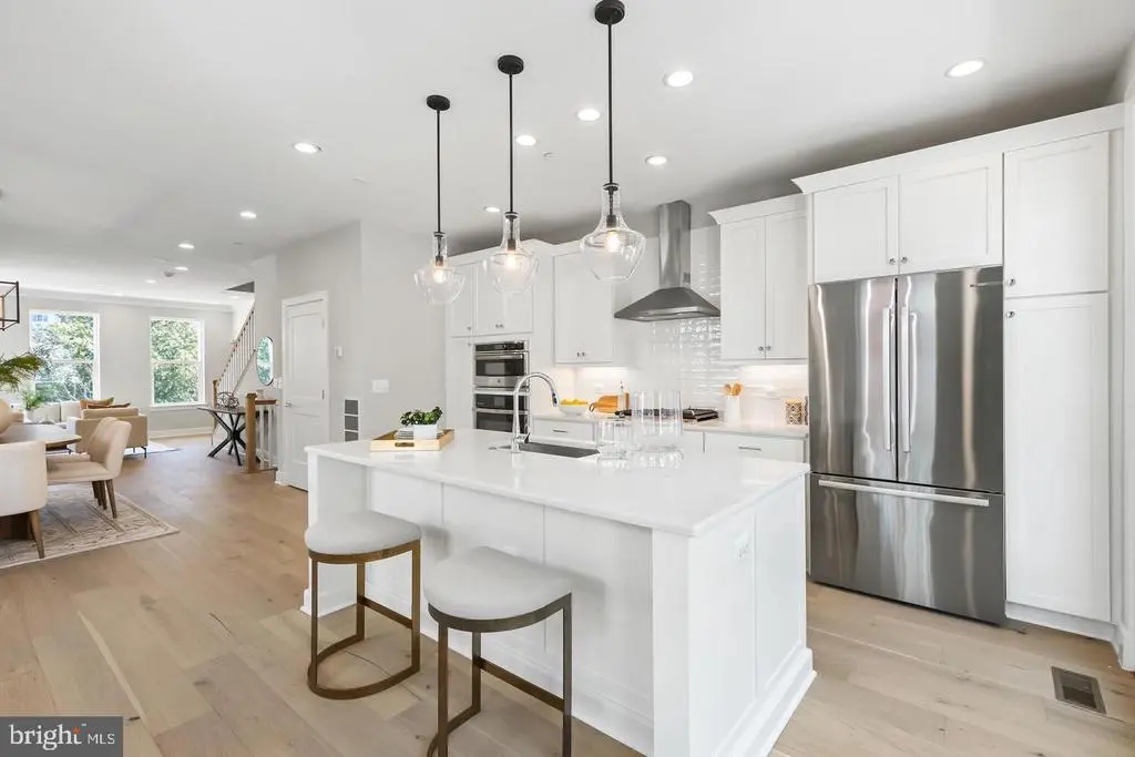 Step into elegance and sophistication in this stunning 4-level townhome, where an immediate sense of spaciousness greets you. As you traverse the exquisite wide-plank flooring, you'll be captivated by the soaring 9-foot ceilings that grace each of the four levels. The main level boasts a chef-inspired kitchen that will delight culinary enthusiasts, featuring luxurious 42" cabinets with soft-close drawers and doors, under-cabinet lighting, and microbe-resistant quartz countertops. The eye-catching ceramic tile backsplash and sleek stainless steel appliances elevate the space, while the expansive island with an eat-in bar invites casual dining and gatherings. Natural light floods the open-concept living area through floor-to-ceiling windows, which seamlessly connect to your private rear deck—perfect for entertaining or enjoying quiet moments outdoors. Each bedroom is a private sanctuary, complete with an en-suite bath adorned with elegant 12 x 24 Carrara Porcelain floor tiles, quartz countertops, and generous closet space. The loft level is a true highlight, featuring a private bedroom and full bath, complemented by an open loft complete with a wet bar that effortlessly extends to the outdoor terrace—creating an ideal setting for relaxation and entertaining while soaking up the fresh air and sunshine. This home is equipped with energy-efficient and smart home features, including a tankless water heater, dual-zone heating and cooling system, Honeywell Smart thermostat, and a state-of-the-art security system—offering both comfort and peace of mind. Ideally located, you’re just minutes from the Grosvenor-Strathmore Metro Center, Strathmore Music Center, and scenic trails like the Rock Creek and Bethesda Trolley Trails. Enjoy the vibrant atmosphere of Bethesda Row, Pike & Rose, and easy access to major highways I-495 and I-270. Please note: Photos are of the model home, not actual home being sold.