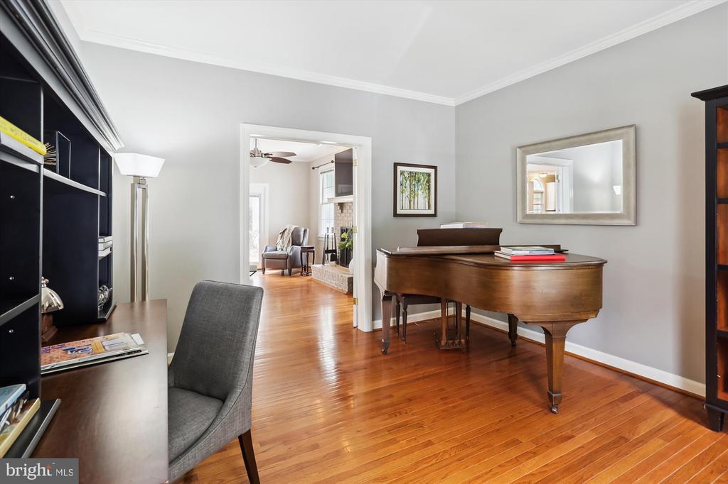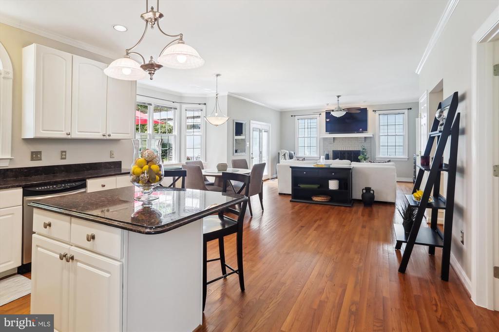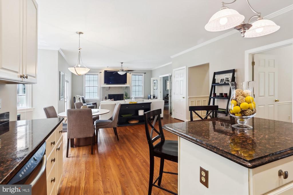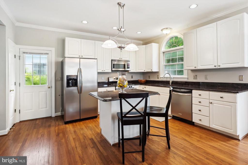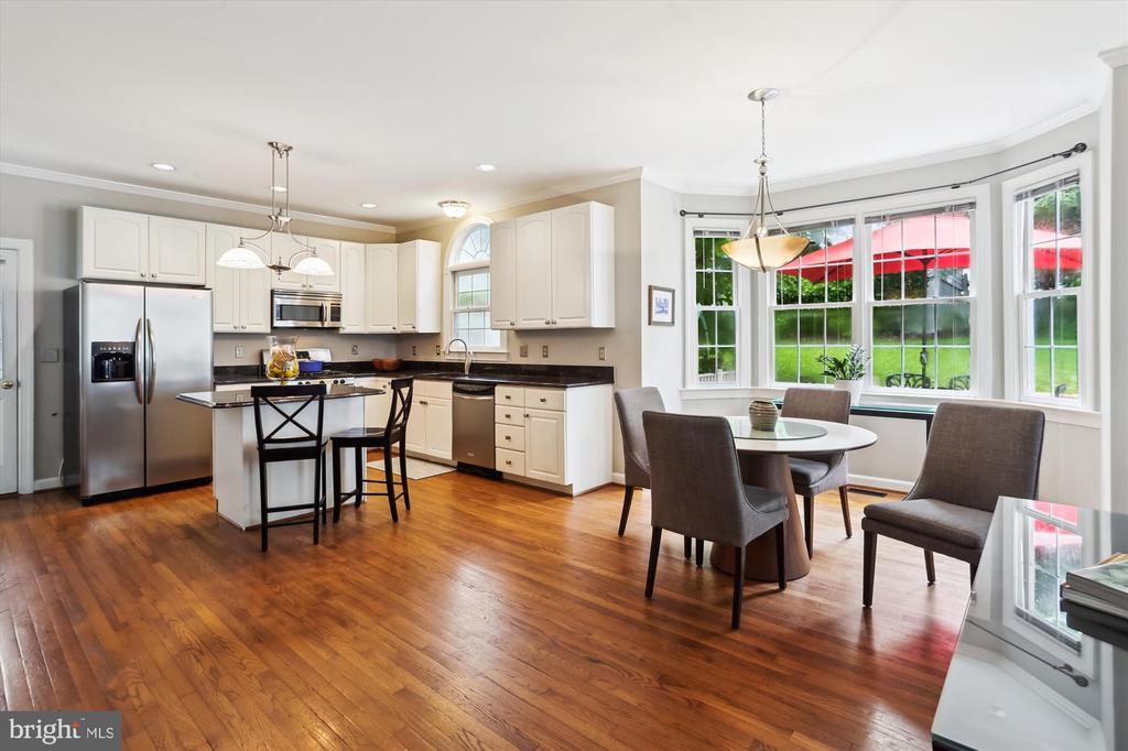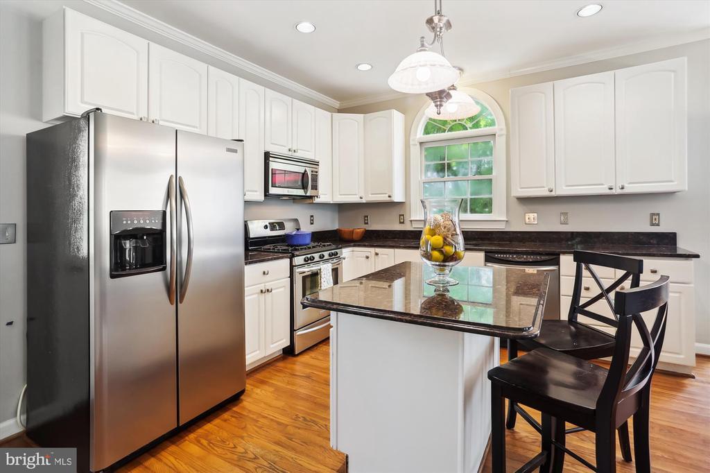 Stately single-family home with a lovely backyard and an unbeatable location in the Kentlands! The welcoming foyer opens to a spacious formal living room with hardwood floors and a large dining room with decorator lighting. The kitchen is a chef’s dream, featuring stainless steel appliances, a large center island, granite countertops, and white cabinetry, and it opens to a sunny breakfast area with a bay window. The family room is filled with natural light and offers a wood burning fireplace and new French doors leading to an expansive deck with a picturesque trellis, overlooking the big backyard. A beautifully remodeled powder room completes the main level. Upstairs, the light-filled primary suite features hardwood floors, two walk-in closets, and a luxurious en-suite full bath. The second bedroom is bright and spacious with hardwood floors and a double-door closet. The third bedroom is large and includes a double window, lighted ceiling fan, and hardwood flooring, while the fourth bedroom offers generous space, two closets, and hardwood floors. The finished lower level includes a game room, a media room, and a storage area with a full bath rough-in. The backyard is a serene retreat with a lovely terraced area and a wooded area, leading to a two-car garage and driveway. Major updates include the HVAC system and furnace (2021) and the roof (2018). Ideally located near Rachel Carson Elementary and all the shopping, dining, and entertainment the Kentlands has to offer—this home has it all!